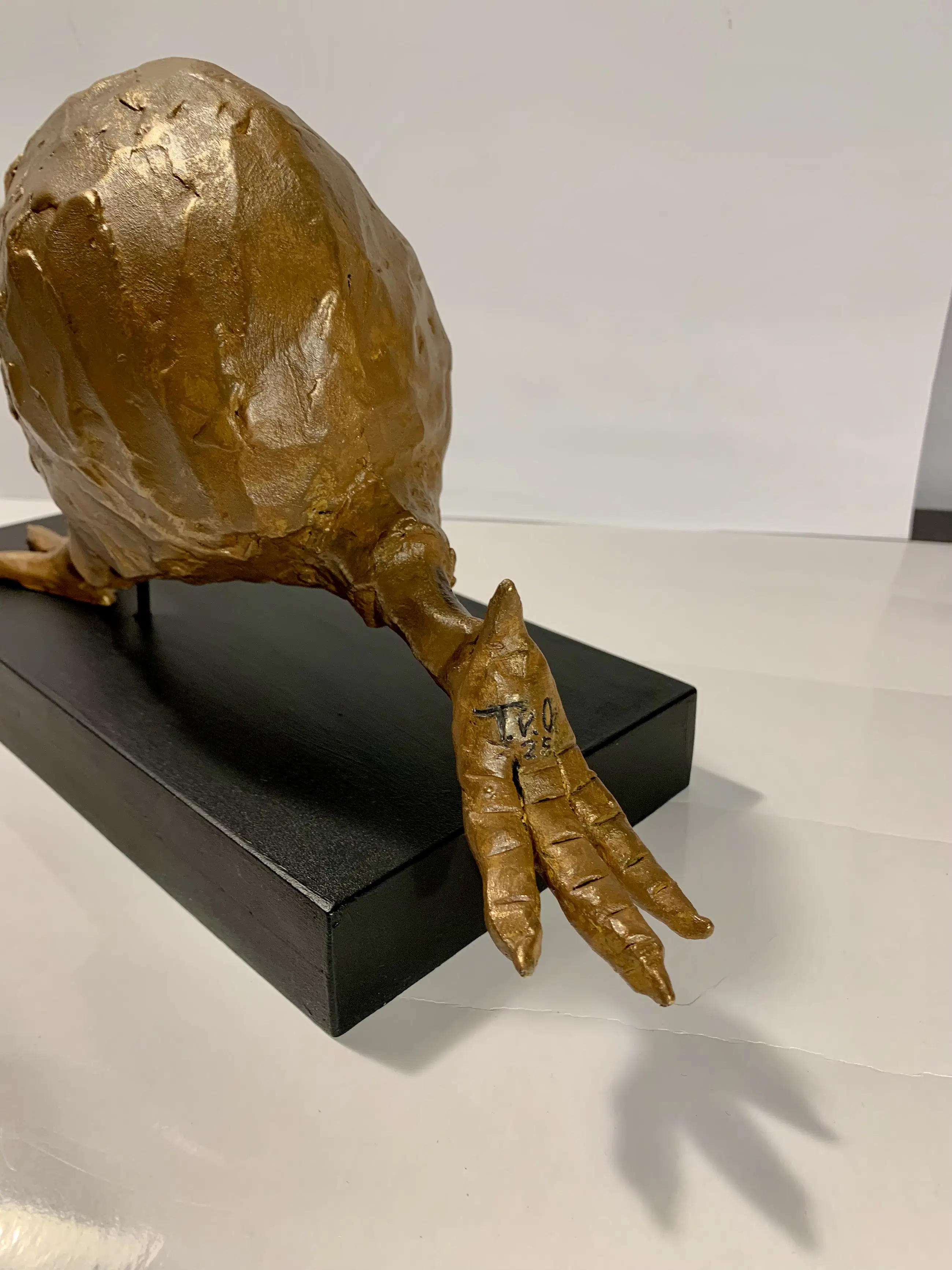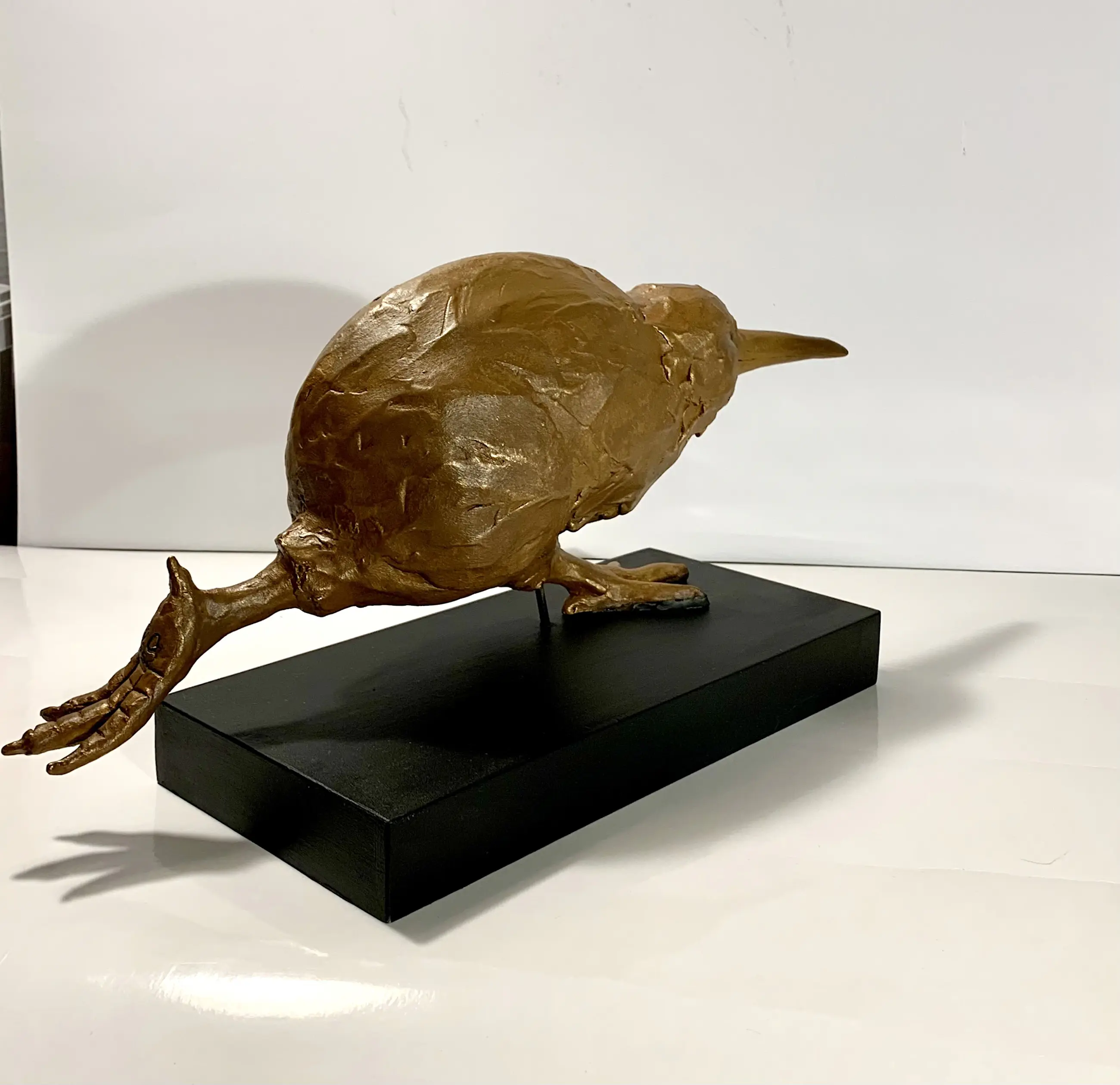 Dit beeld is gemaakt door Tosca van Oorschot (1965, Amsterdam) woont en werkt in Leerdam. Het van keramiek op een houten sokkel. De schoonheid en humor van het dierenrijk intrigeren haar. Het werk van hedendaagse animaliers inspireert haar. Haar bedoeling is de toeschouwer plezier te laten beleven aan haar creaties. Voor haarzelf is werken aan haar diersculpturen een bron van vreugde. Zij heeft opleidingen gevolgd aan de Wackers Academie en de Hoge School voor de Kunsten in Amsterdam. Haar werk wordt verkocht in zowel binnen- als buitenland en is geëxposeerd in verschillende galeries in Nederland.