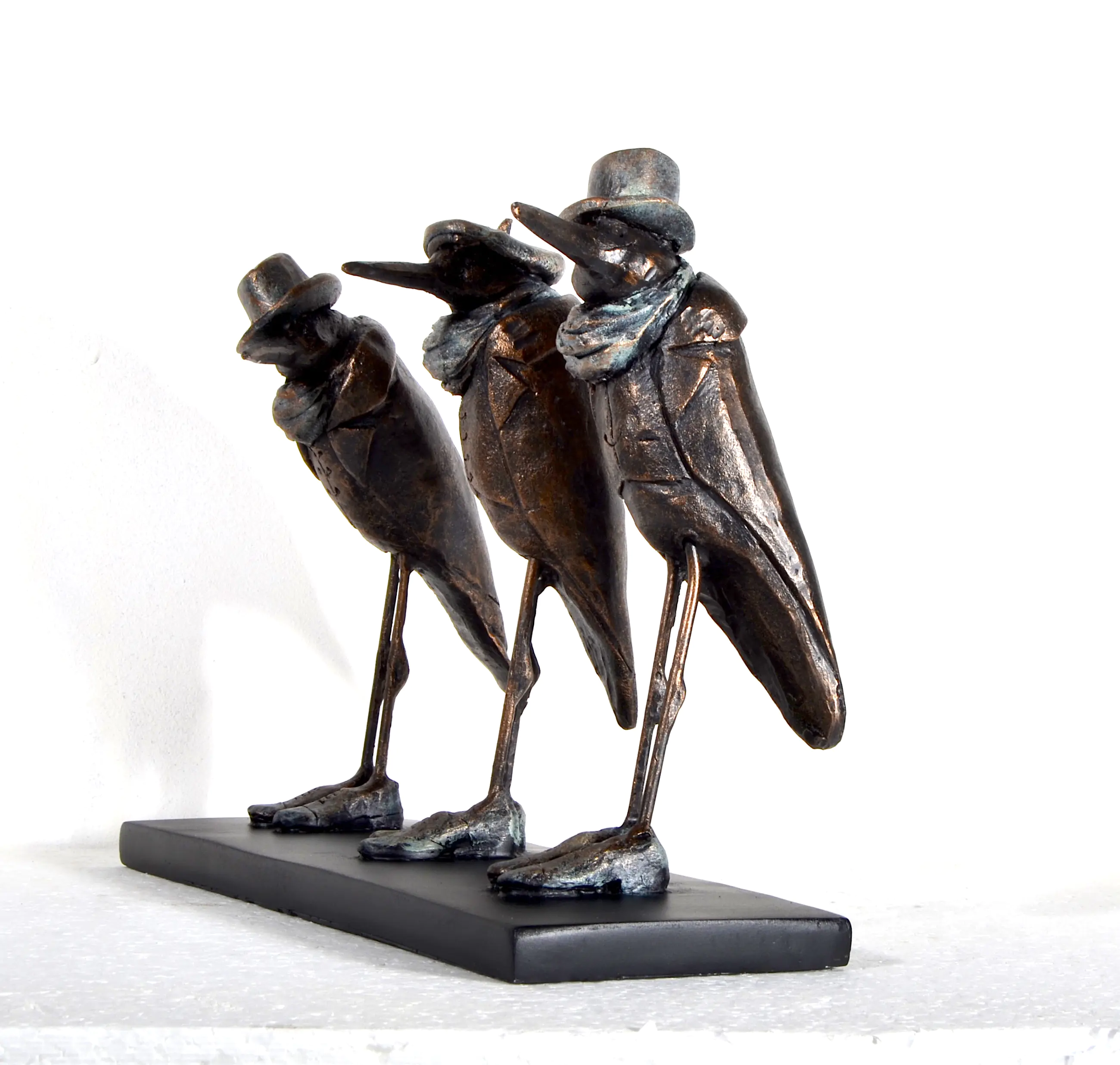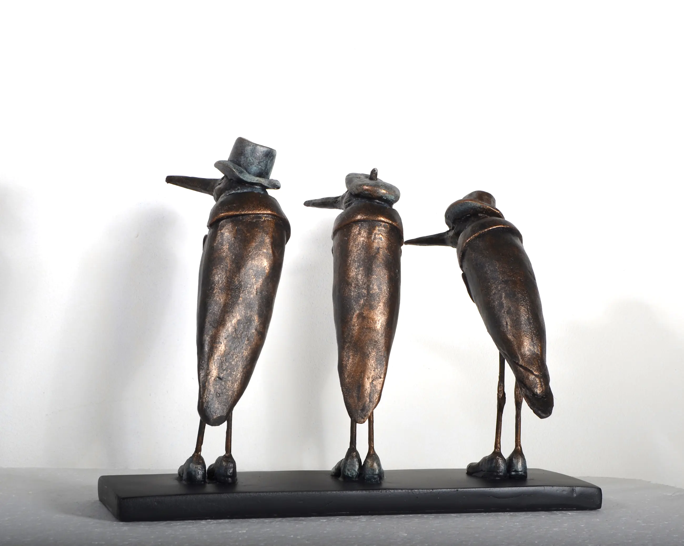 Dit beeld is gemaakt door Tosca van Oorschot (1965, Amsterdam) woont en werkt in Diemen. Het is het vierde exemplaar in een serie van acht. De afmetingen zijn 25 cm×20 cm×15 cm. Het materiaal is neolith (soort kunsthars met marmerpoeder) en het is handgesigneerd. De schoonheid en humor van het dierenrijk intrigeren haar. De lachwekkende gedragingen van dieren waarin soms menselijke trekjes te herkennen zijn, vindt zij amusant. Schoonheid en humor ontmoeten elkaar in haar diersculpturen. Het werk van hedendaagse animaliers inspireert haar. Haar bedoeling is de toeschouwer plezier te laten beleven aan haar creaties. Voor haarzelf is werken aan haar diersculpturen een bron van vreugde. Het materiaal dat zij gebruikt is brons of neolith. (Een soort giethars met marmerpoeder gevuld.) Zij heeft opleidingen gevolgd aan de Wackers Academie en de Hoge School voor de Kunsten in Amsterdam. Haar werk wordt verkocht in zowel binnen- als buitenland en is geëxposeerd in verschillende galeries in Nederland.