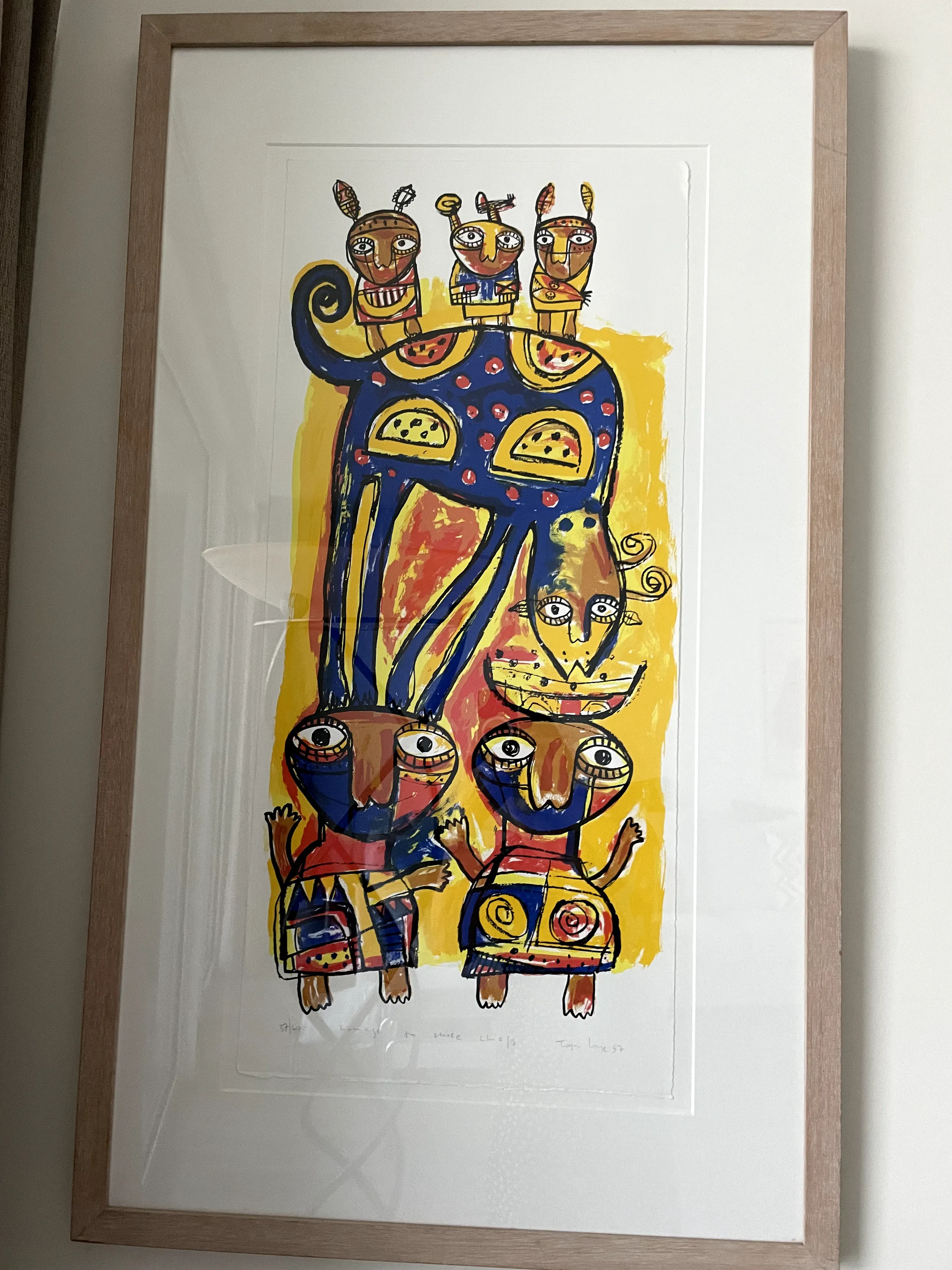 Houten lijst Handgesigneerd en genummerd. Formaat 82x38 cm. Met houten lijst 110cm x 64cm (h x b) Oplage 37/60