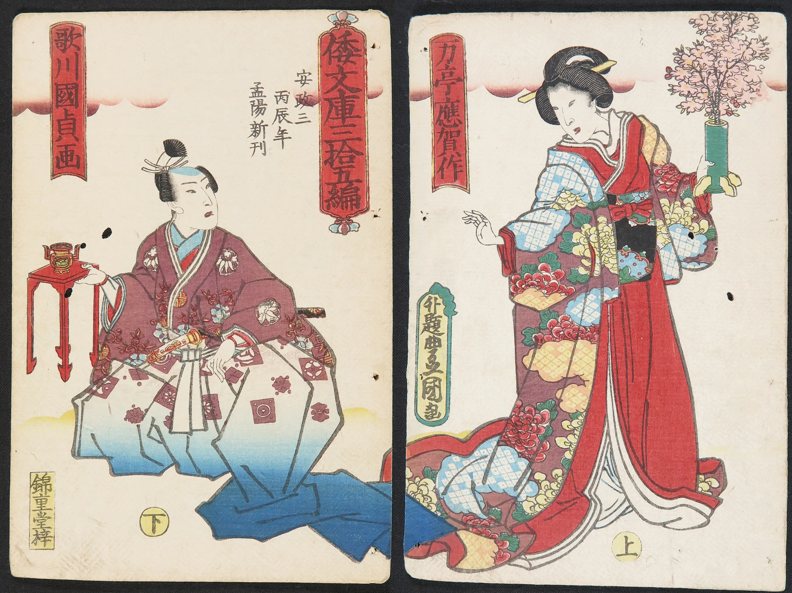 Redelijk tot goede staat.Wat verkleuring en smoezelige randen/hoekjes. Paar kleine gaatjes op de rand (links of rechts), omdat deze prenten in een boek gebonden zijn geweest. Enkele gaatjes verspreid, verschillende in grootte. Dit is graasschade door papiervisjes. | |||||||||||