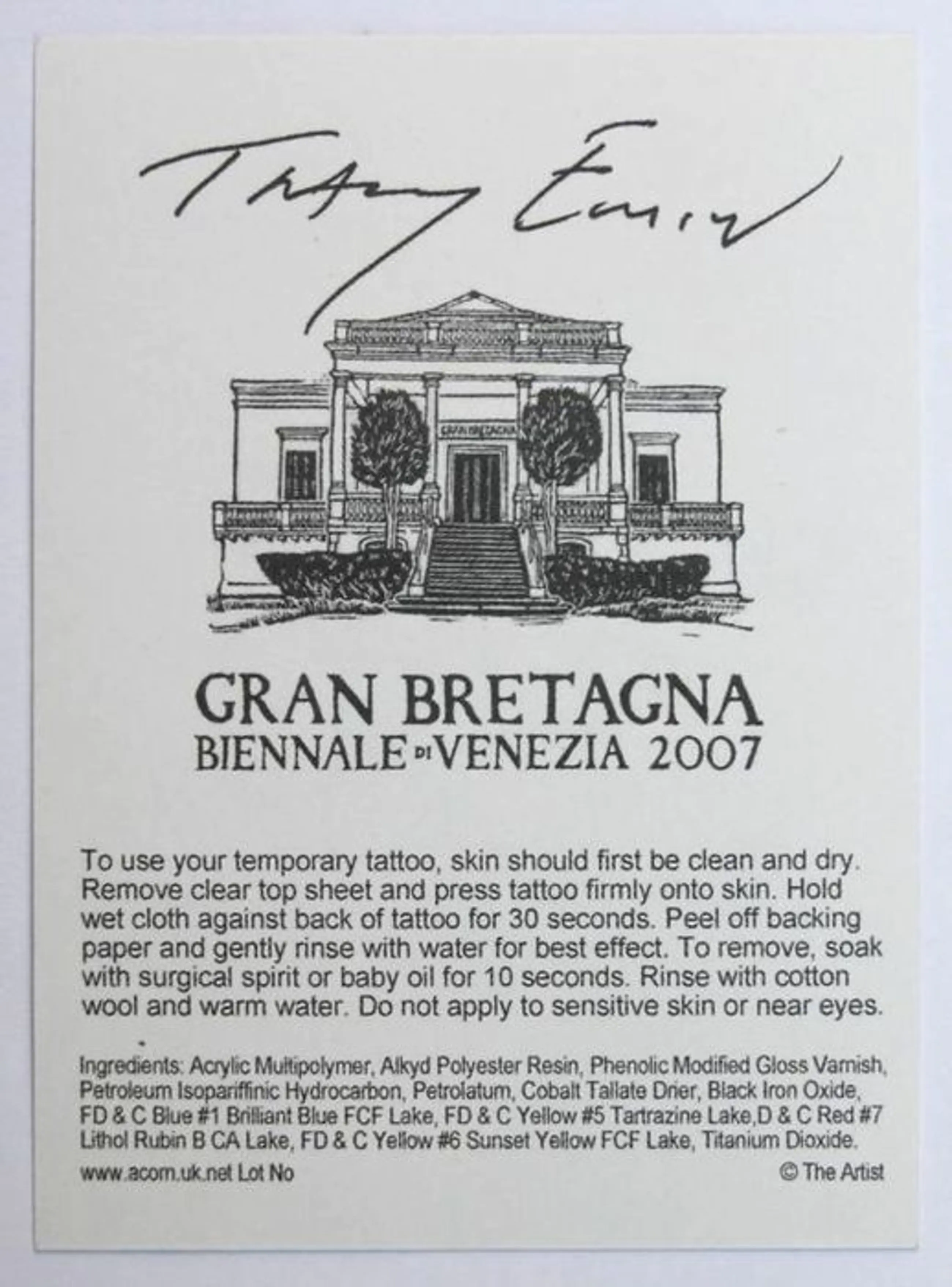 Uitgegeven door The British Council voor de British Pavillion in Venetie ter gelegenheid van de Biennale 2007 in a limited edition (1500). Toentertijd alleen verkrijgbaar op de tentoonstelling van Tracy Emin in dit paviljoen op de Biennale.