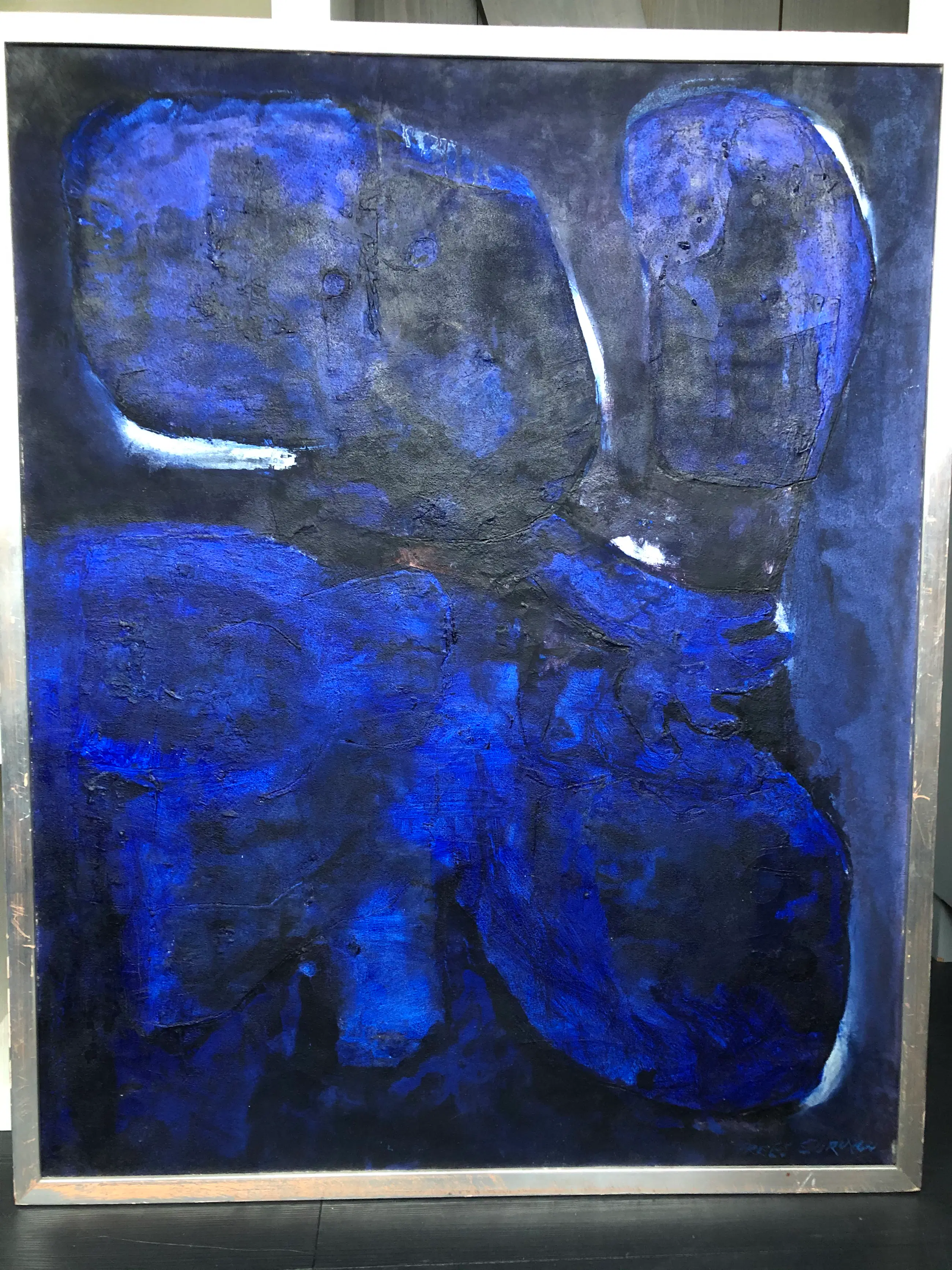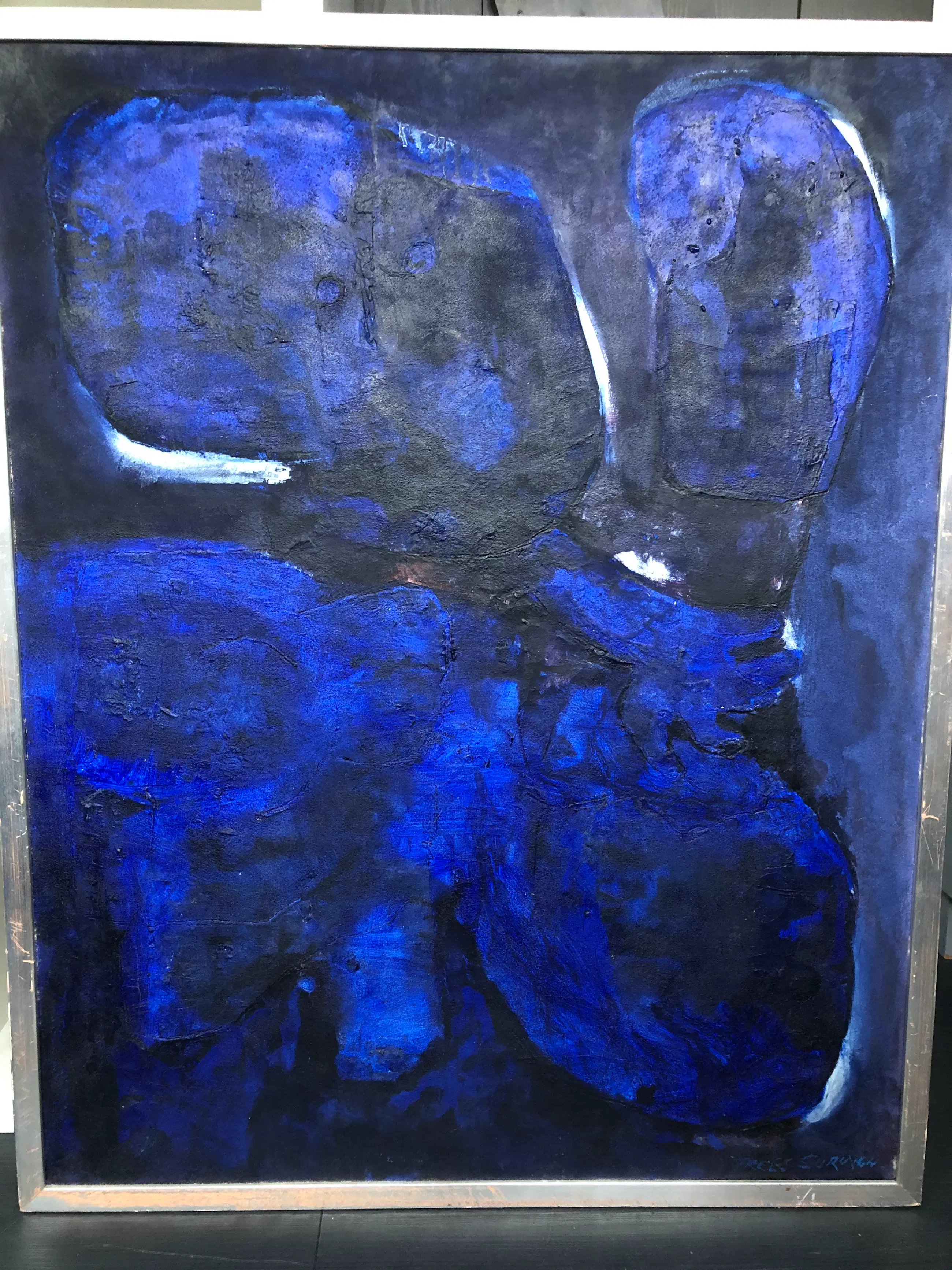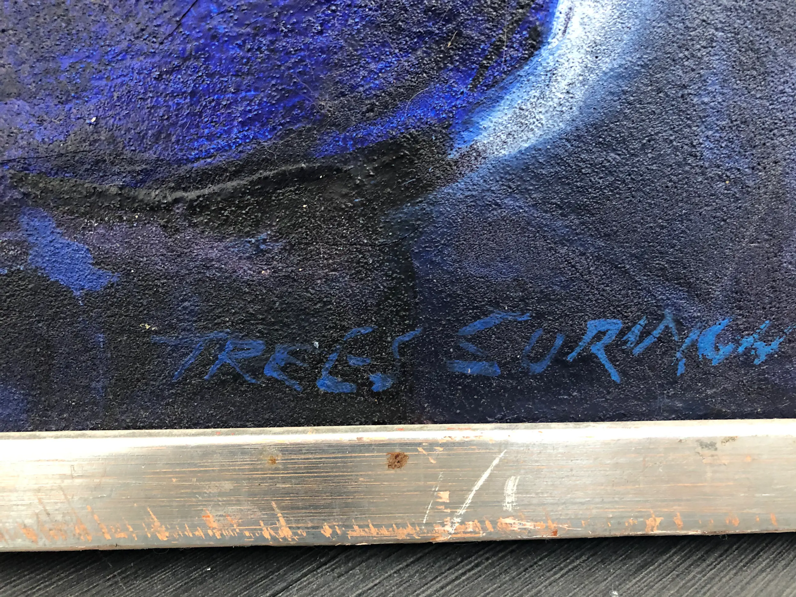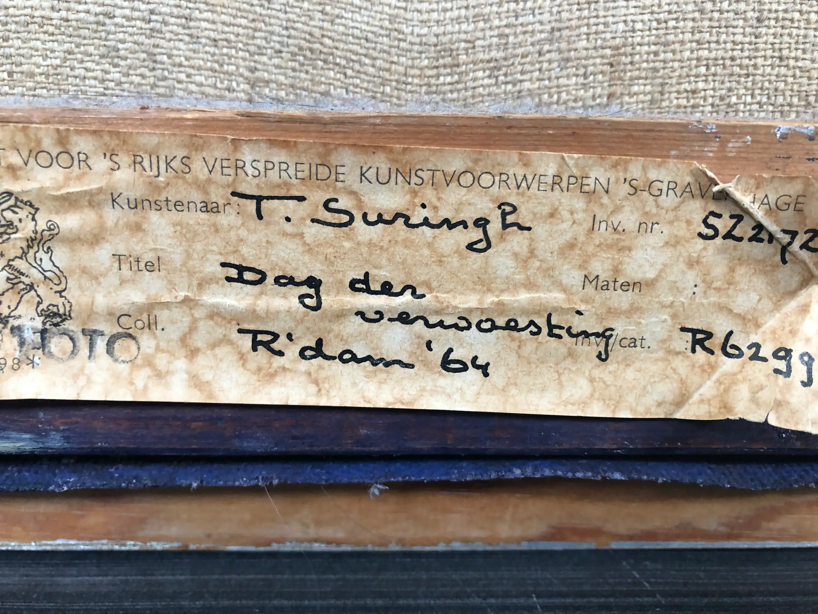 Schilderij van Trees Surinh in redelijke staat. Vlek op achterkant en stukje verf gebarsten (zie foto's)