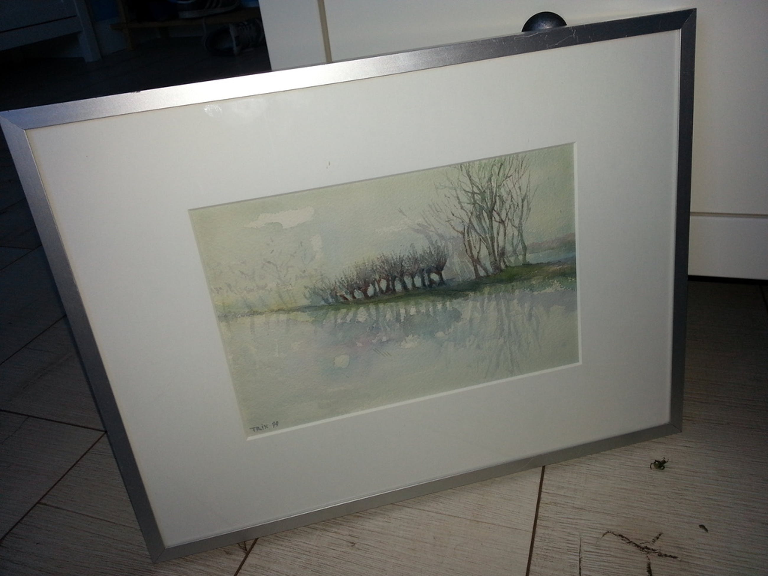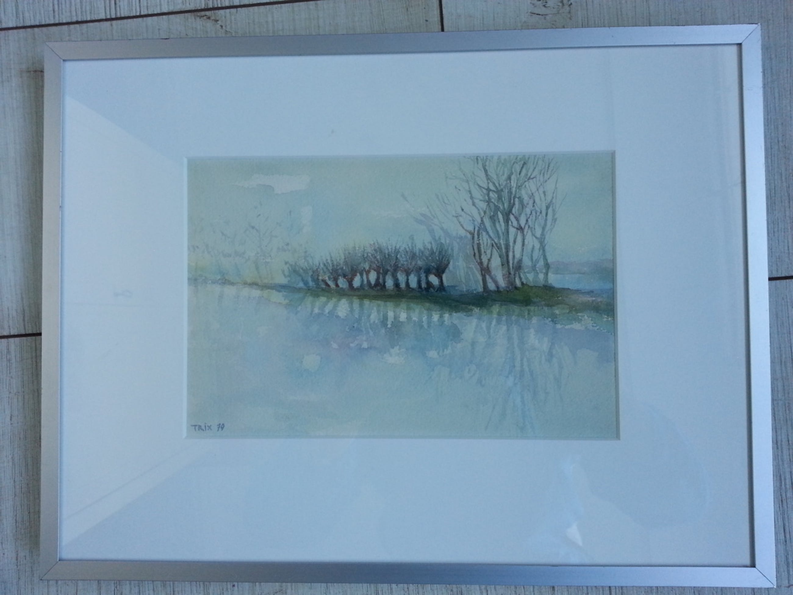 Inclusief alluminium lijst, ontspiegeld glas en ophangwerk.
