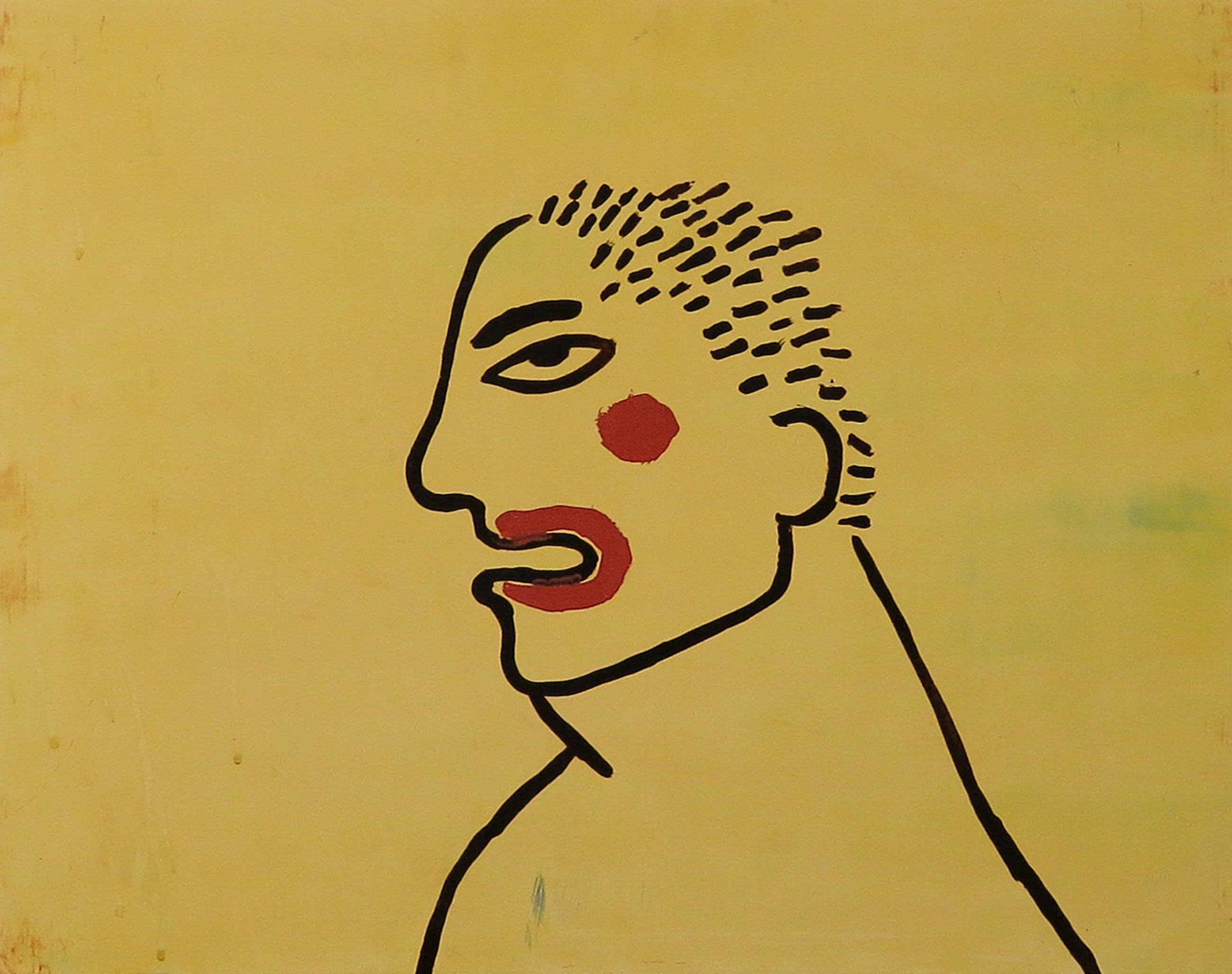 Het paneel is licht kromgetrokken. Langs de randen wat verfvegen, mogelijk van een ander kunstwerk wat er nat tegenaan heeft gestaan. Paar plekjes met verfverlies langs de randen van het paneel. | |