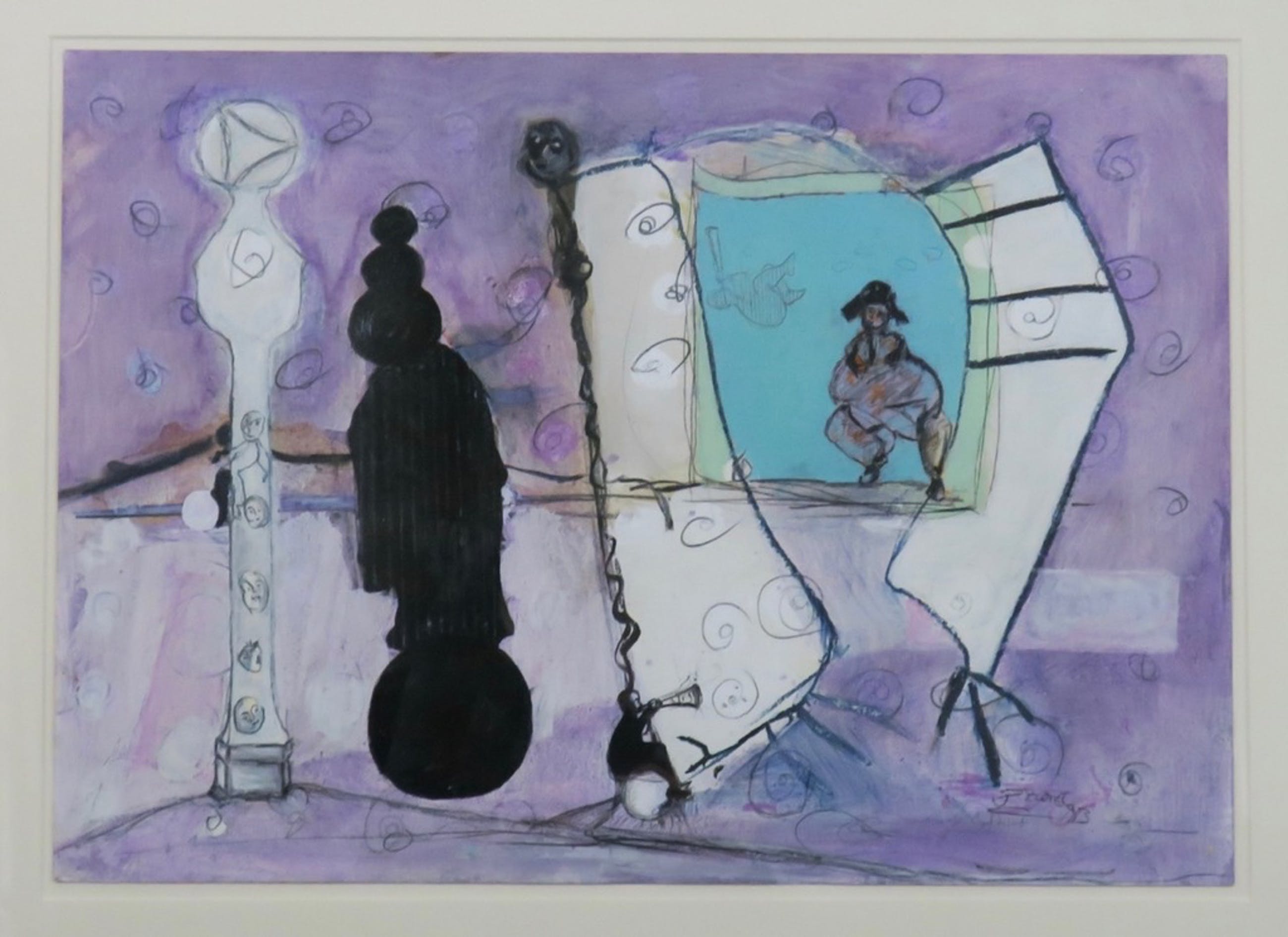 Materiaal: Gemengde techniek op papier, o.a. Gouache en krijt