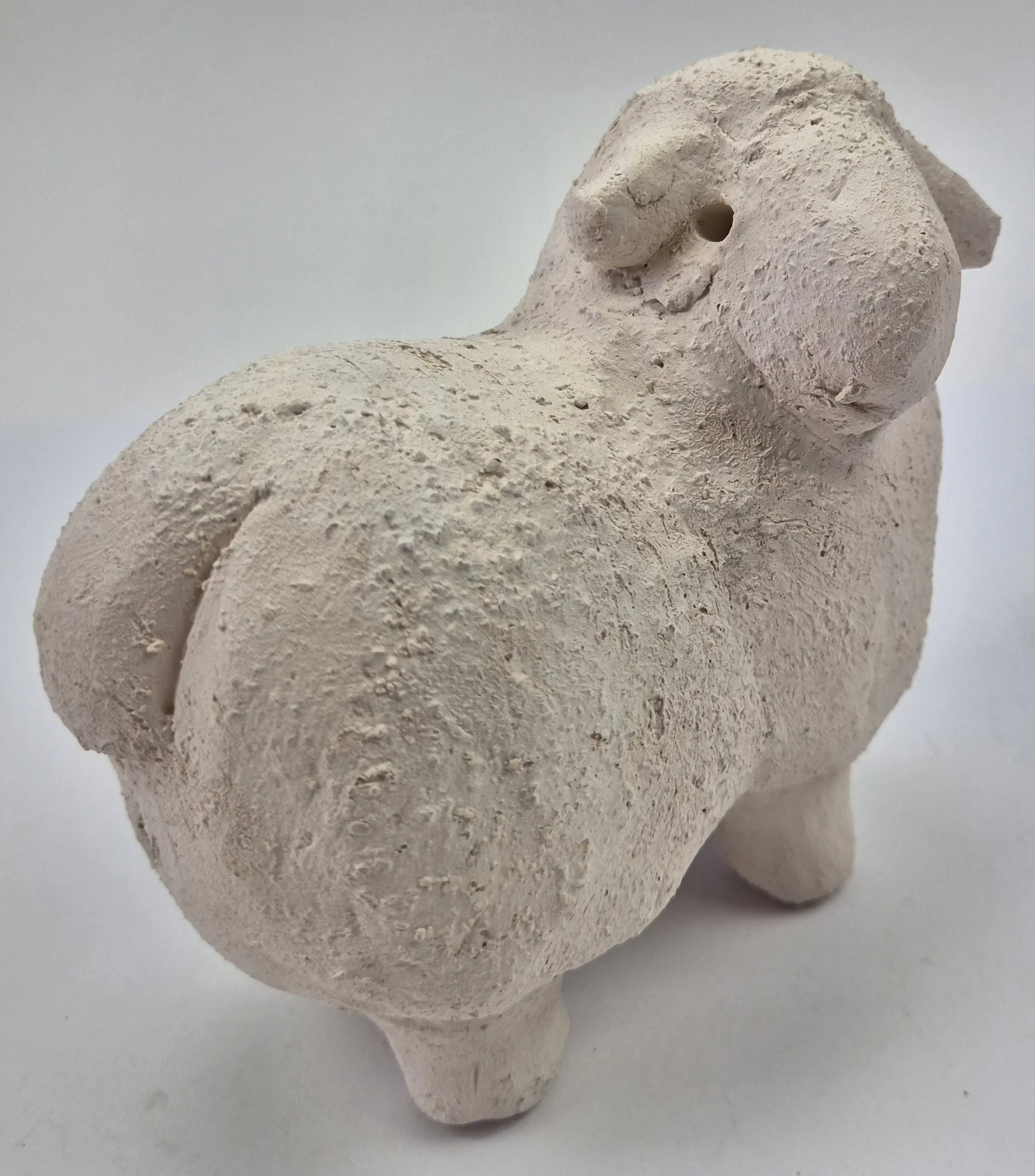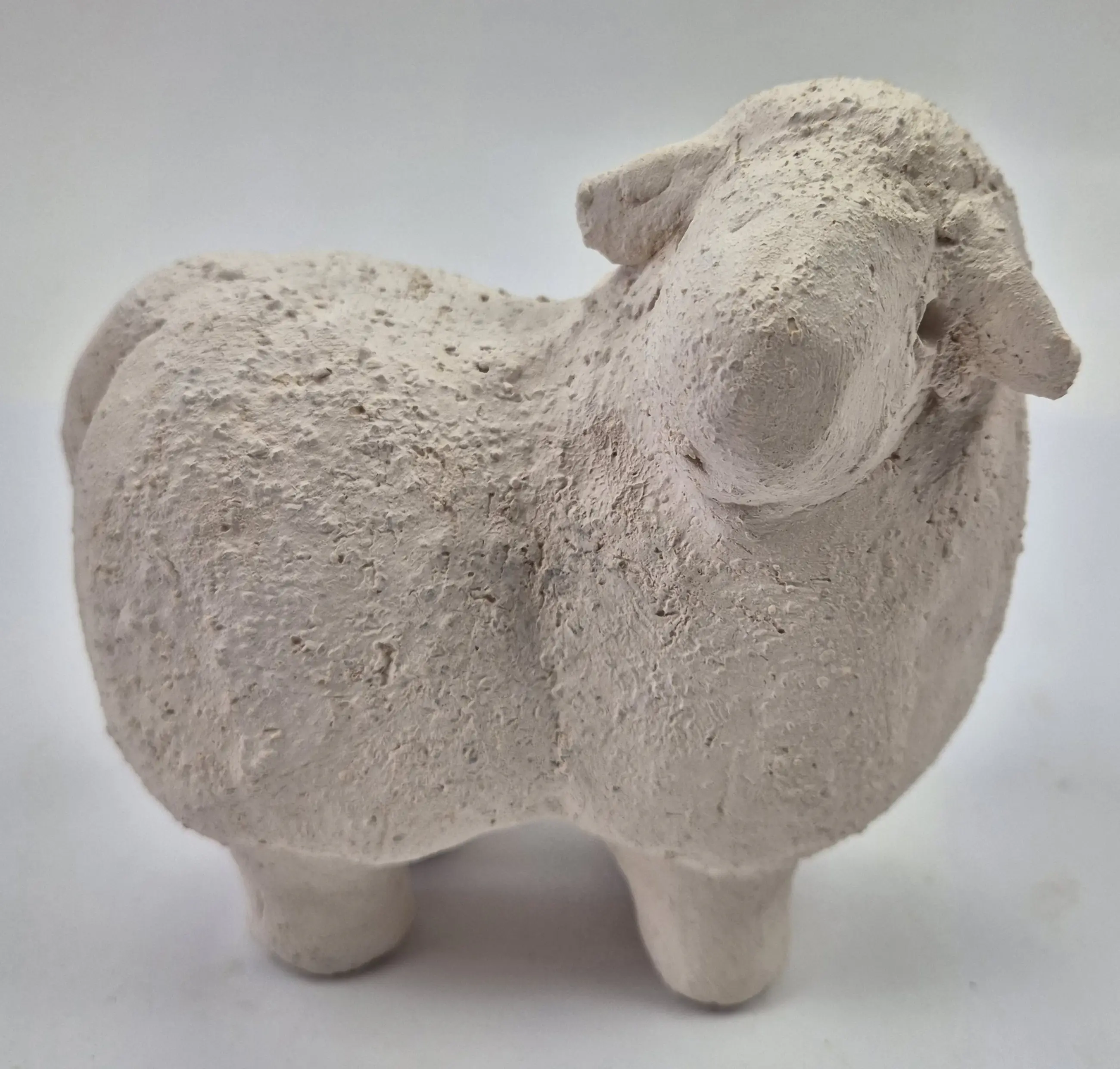 Het kleine schaapje (geglazuurd) heeft een afmeting van 7x3,5x6 cm en weegt 114 gram.