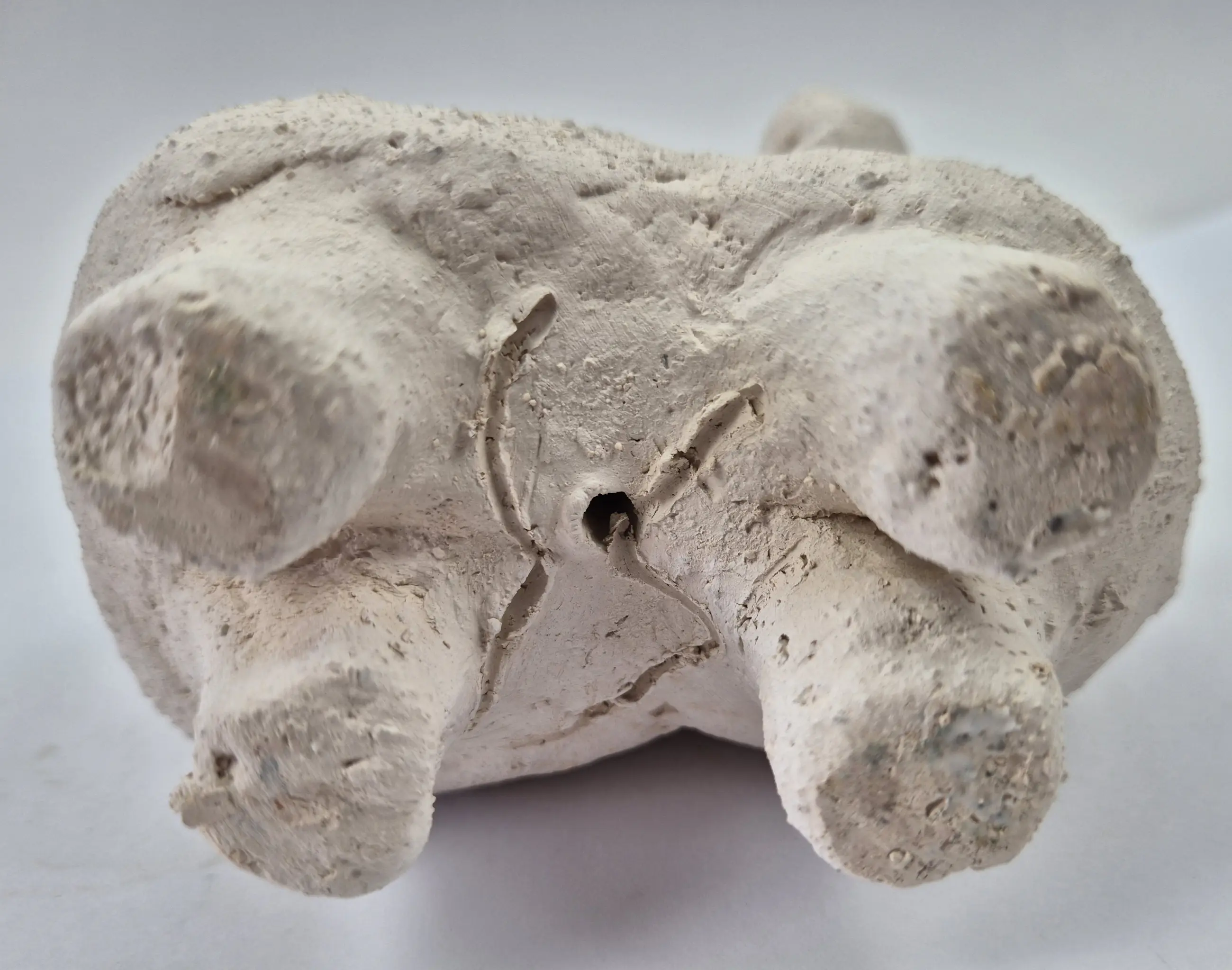 De grootste (wit, afgebakken en ongeglazuurd) heeft een afmeting van