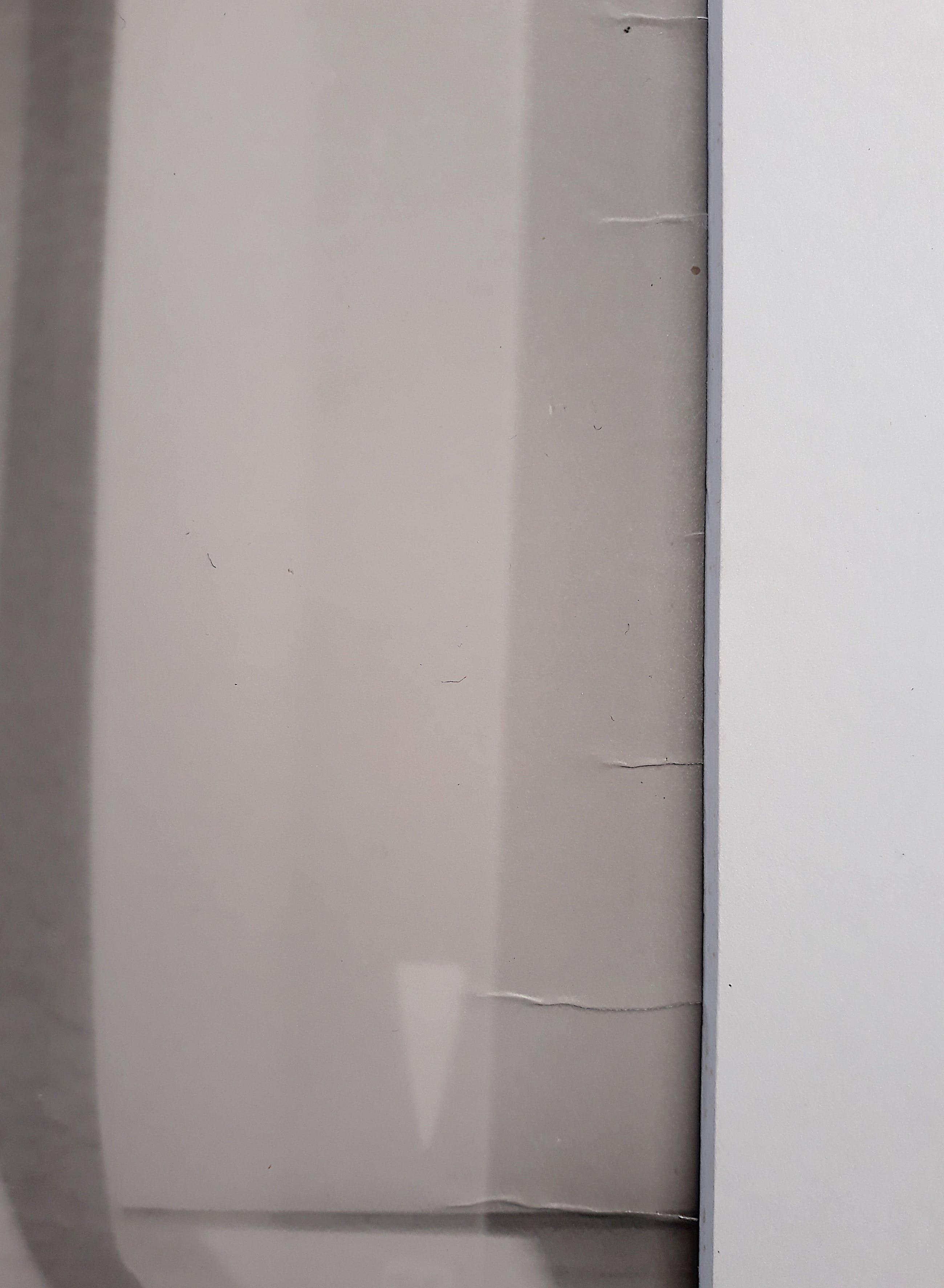 | Aan de rechter kant van de foto zitten over de hele lengte ongeveer 10 kreukjes (zie foto) en het passe-partout is niet smetteloos. | |