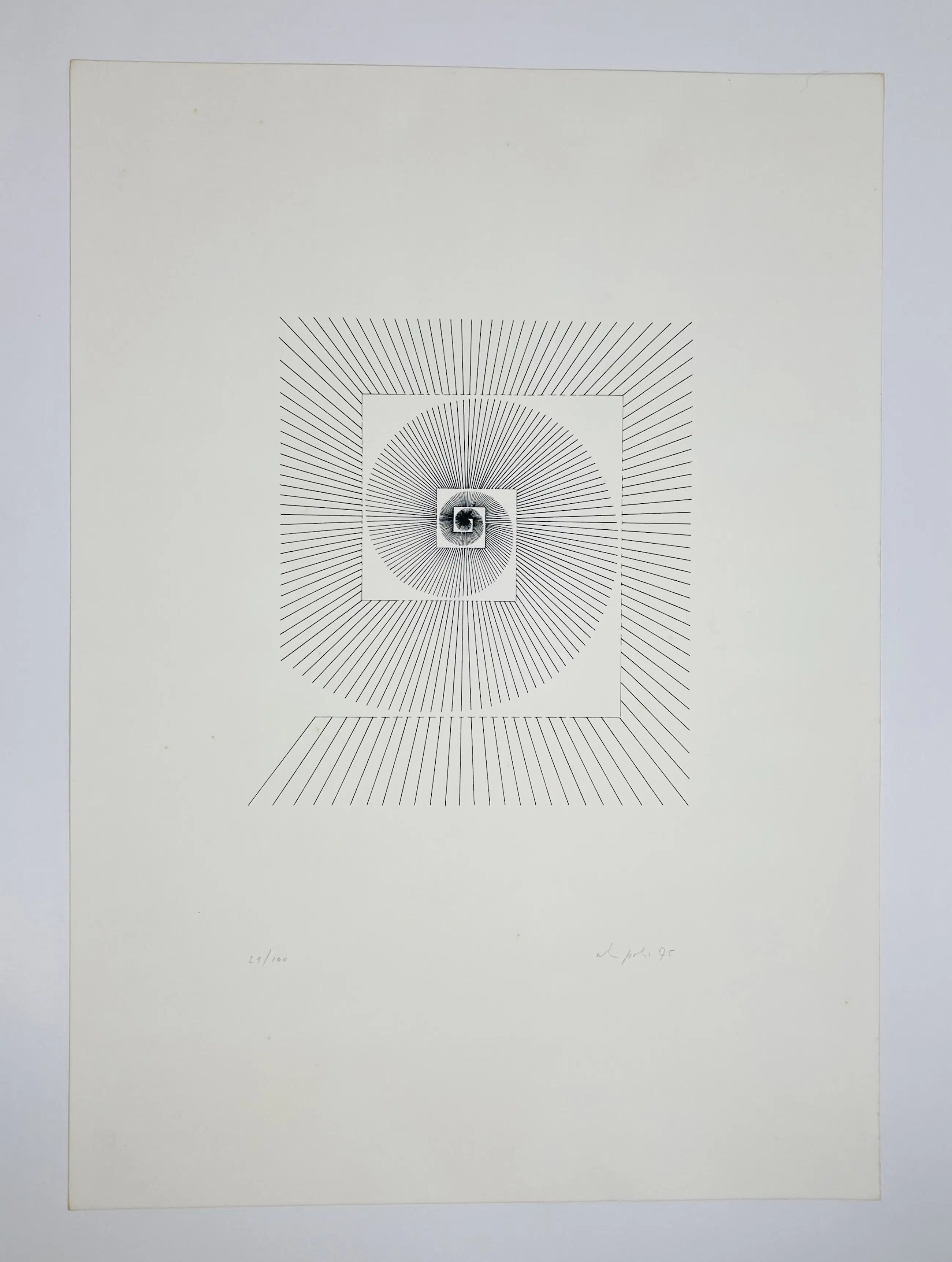 Een prachtige zeefdruk van de Duitse kunstenaar Uli Pohl (1935). Het werk verkeert in uitstekende conditie en is handgesigneerd door de kunstenaar. Afkomstig uit het eenmalig uitgebrachte portfolio met grafiek van de deelnemers aan het allereerste Symposion in Gorinchem in 1974.