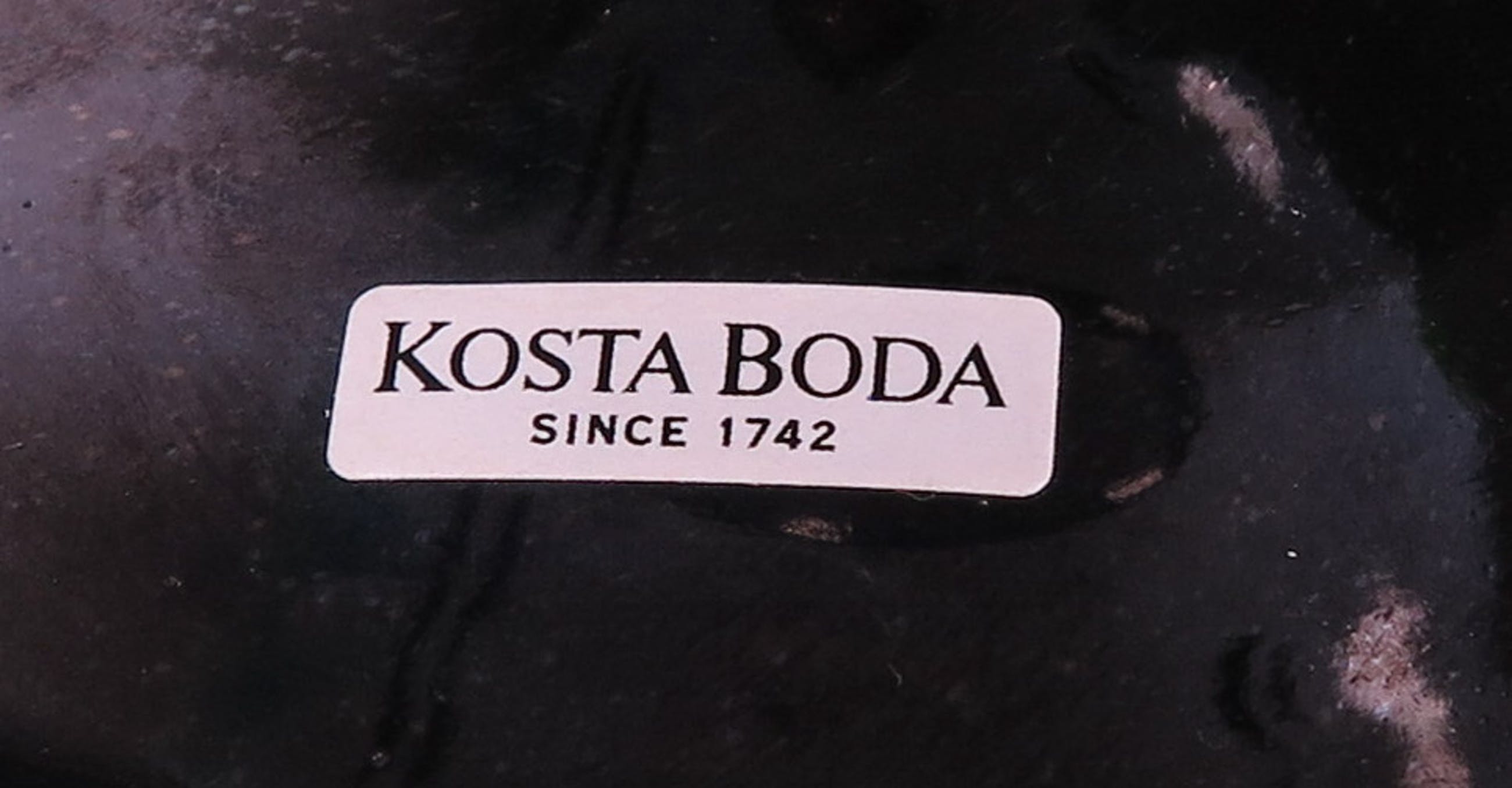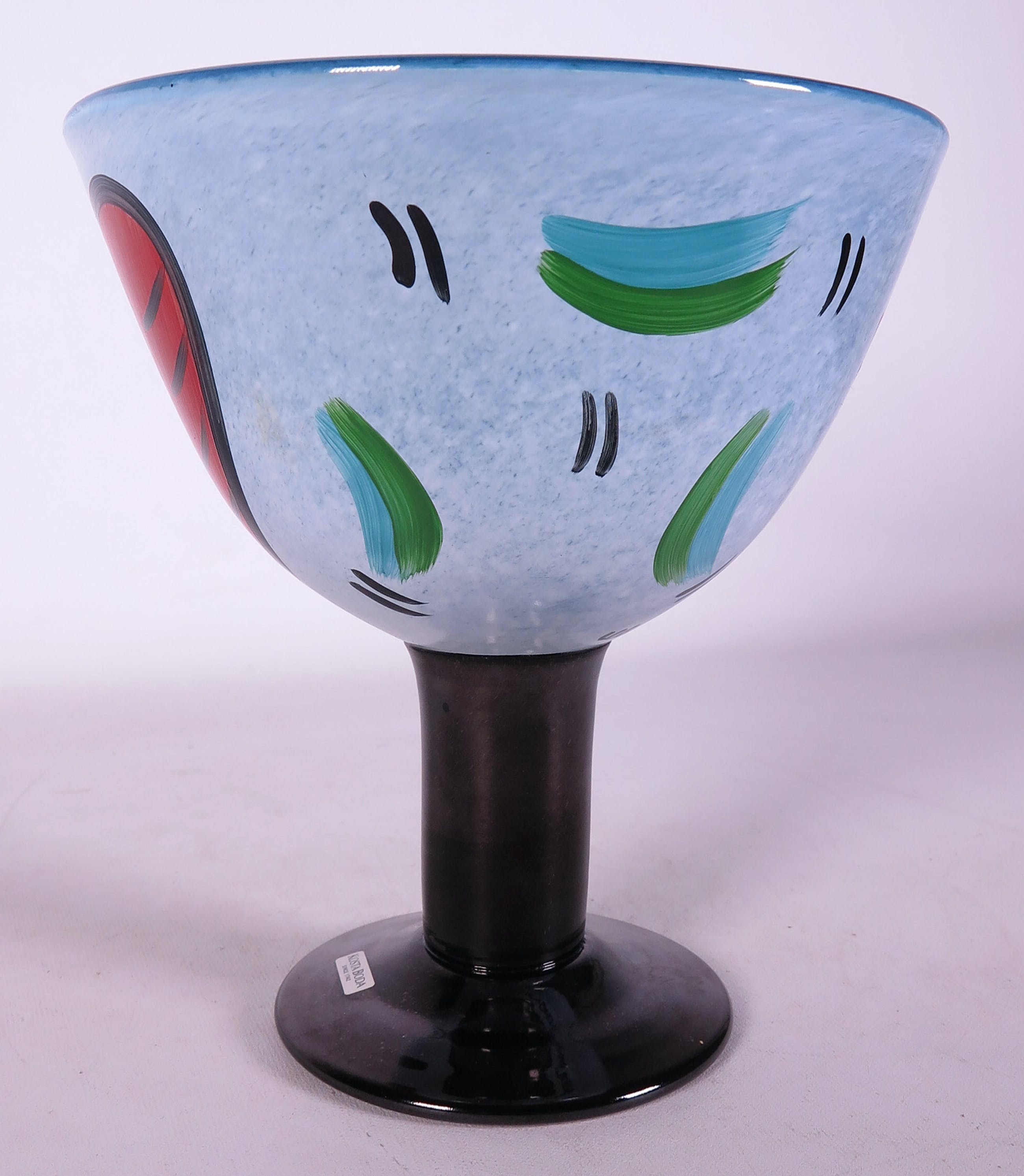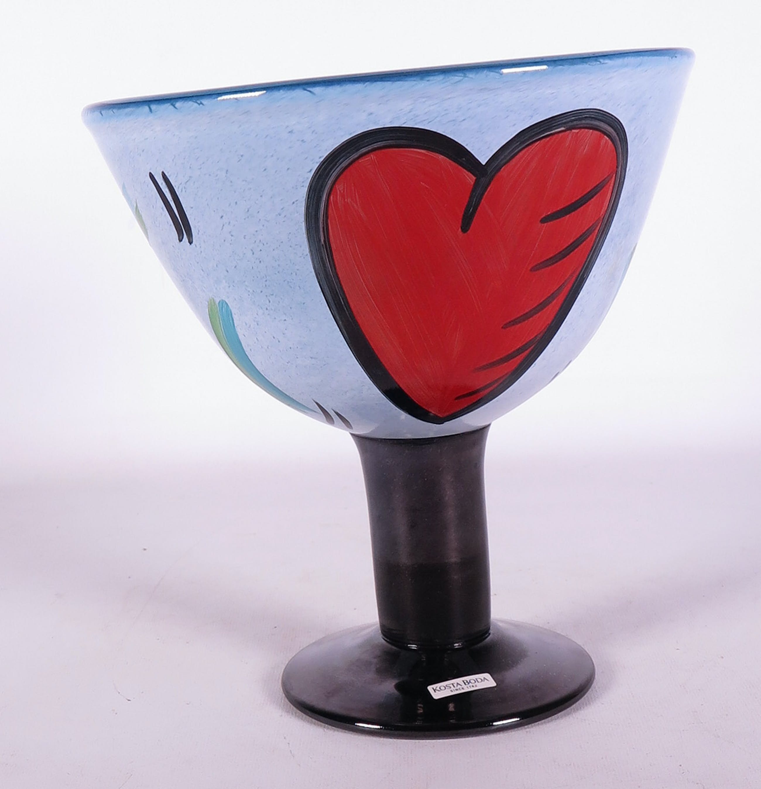 Blauwe bokaalvaas handbeschilderd door Ulrica Vallien voor Kosta Boda.