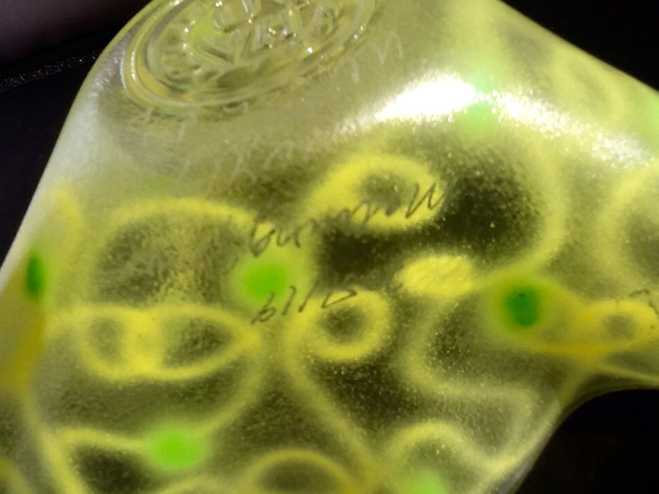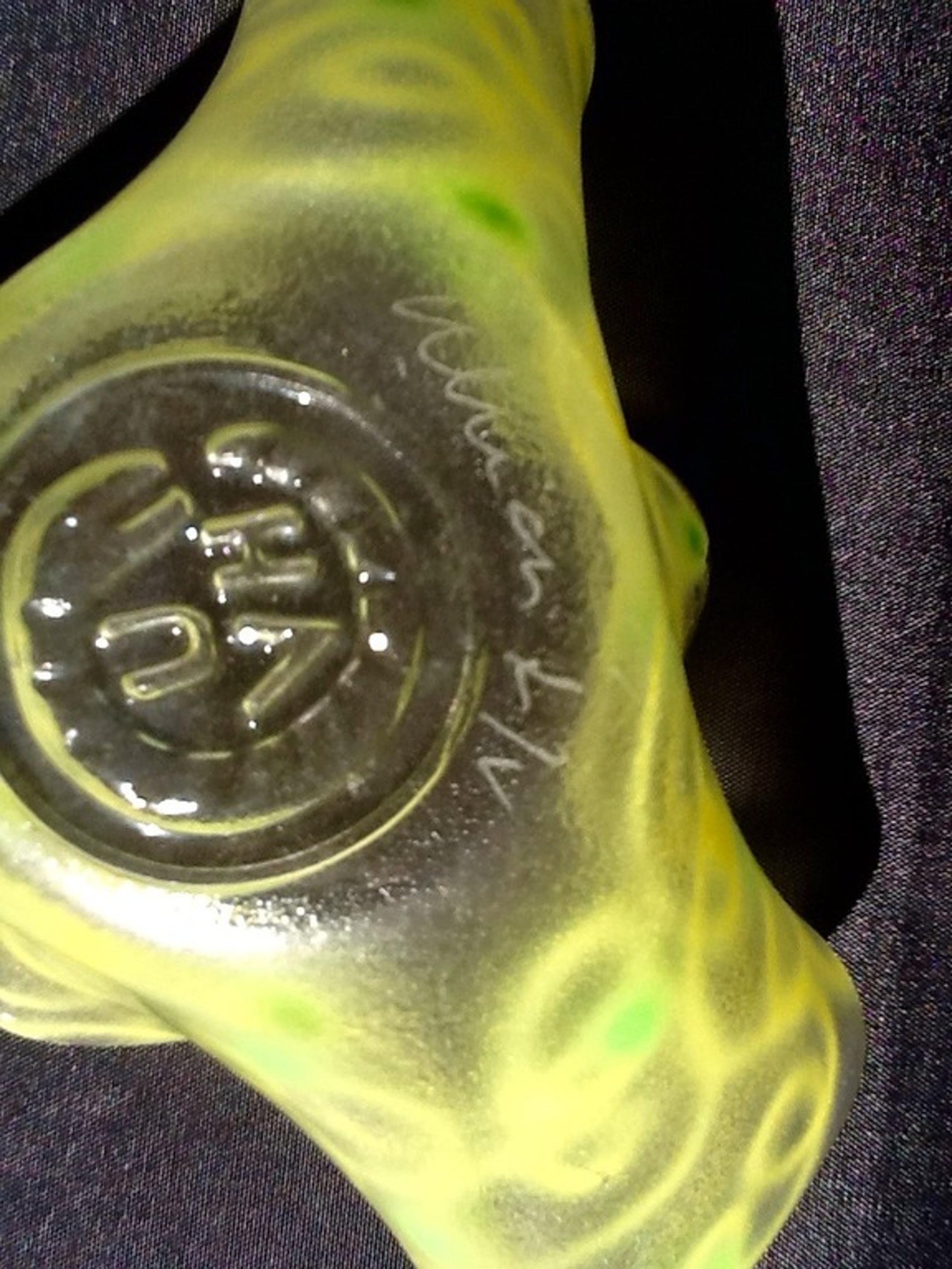 uitgebreid gesigneerd: UVH geperst op de bodem,handgesigneerd Ulrica HV. Op de zijkant staat gegraveerd 7051119,daarna iets onleesbaars voor mij(malingsprung of zo ) en vervolgens weer 110419. een paar plekjes met krassen,zie foto in een goede conditie.
