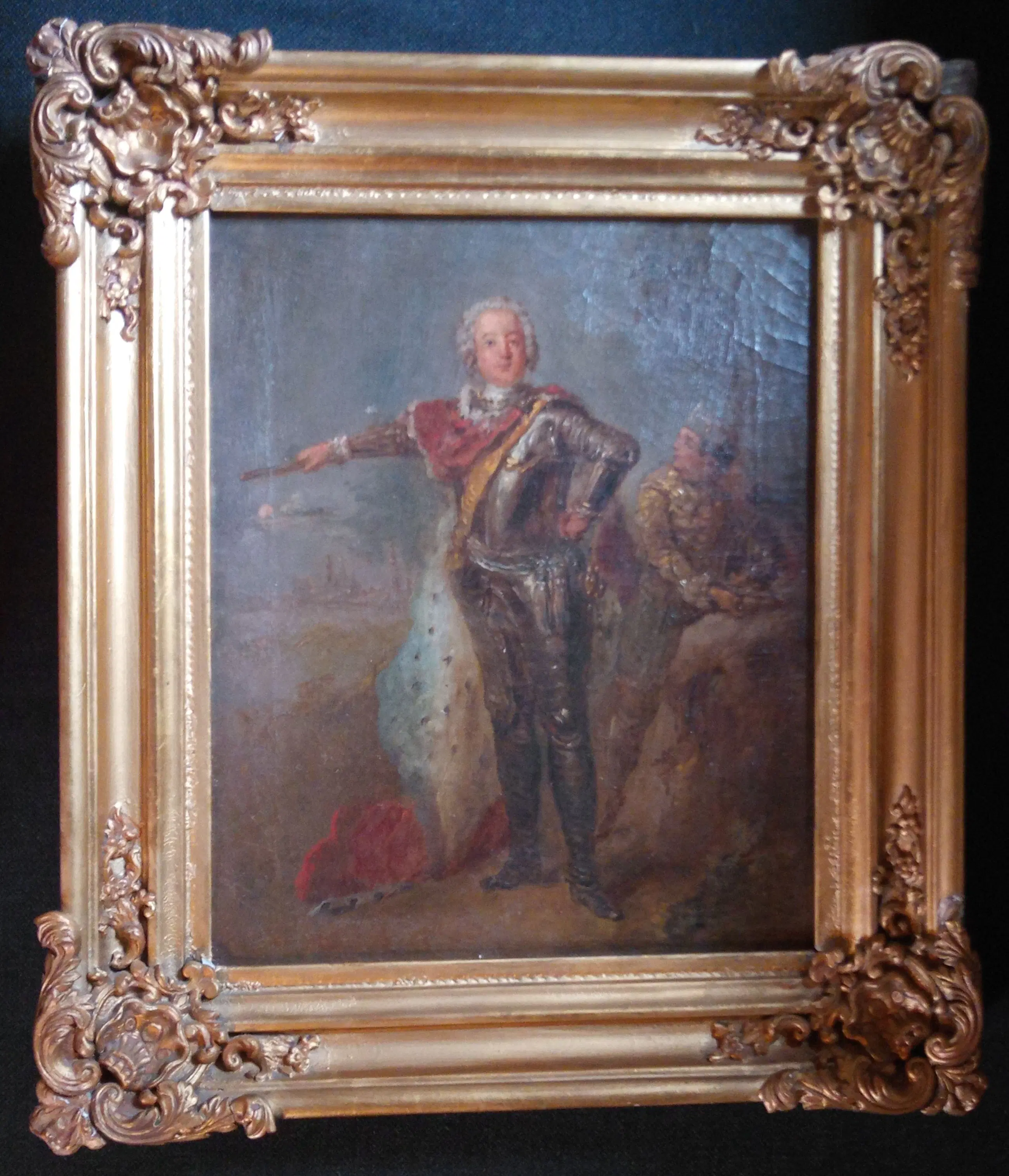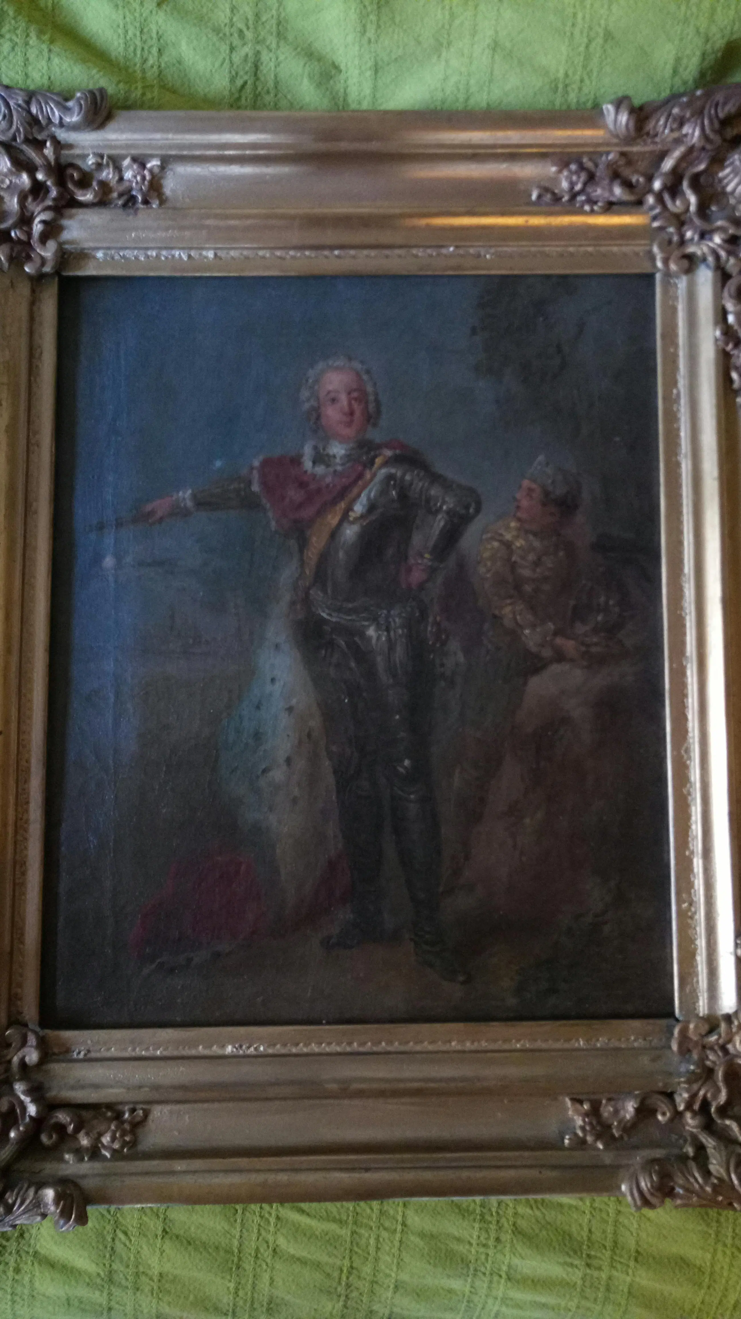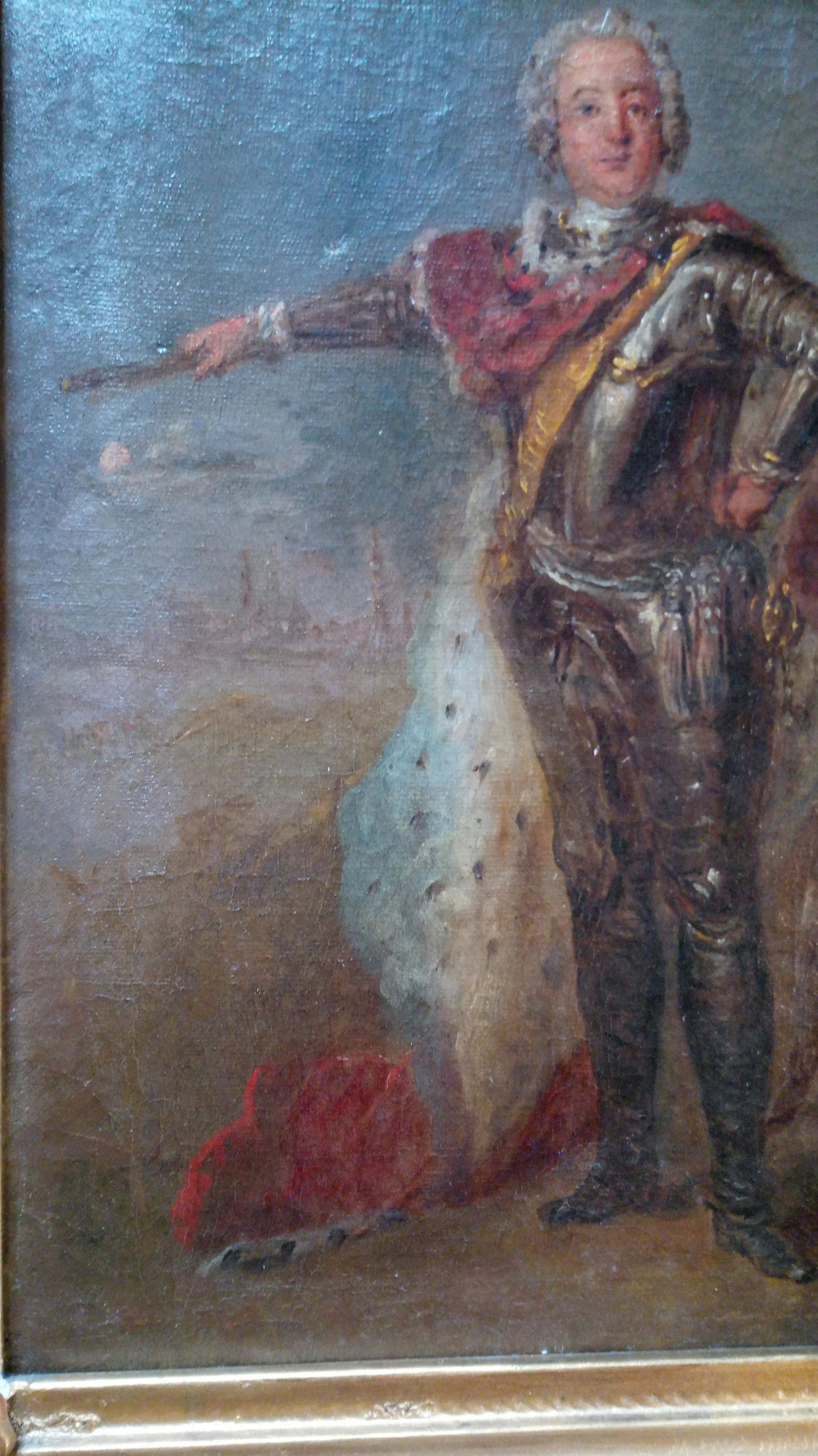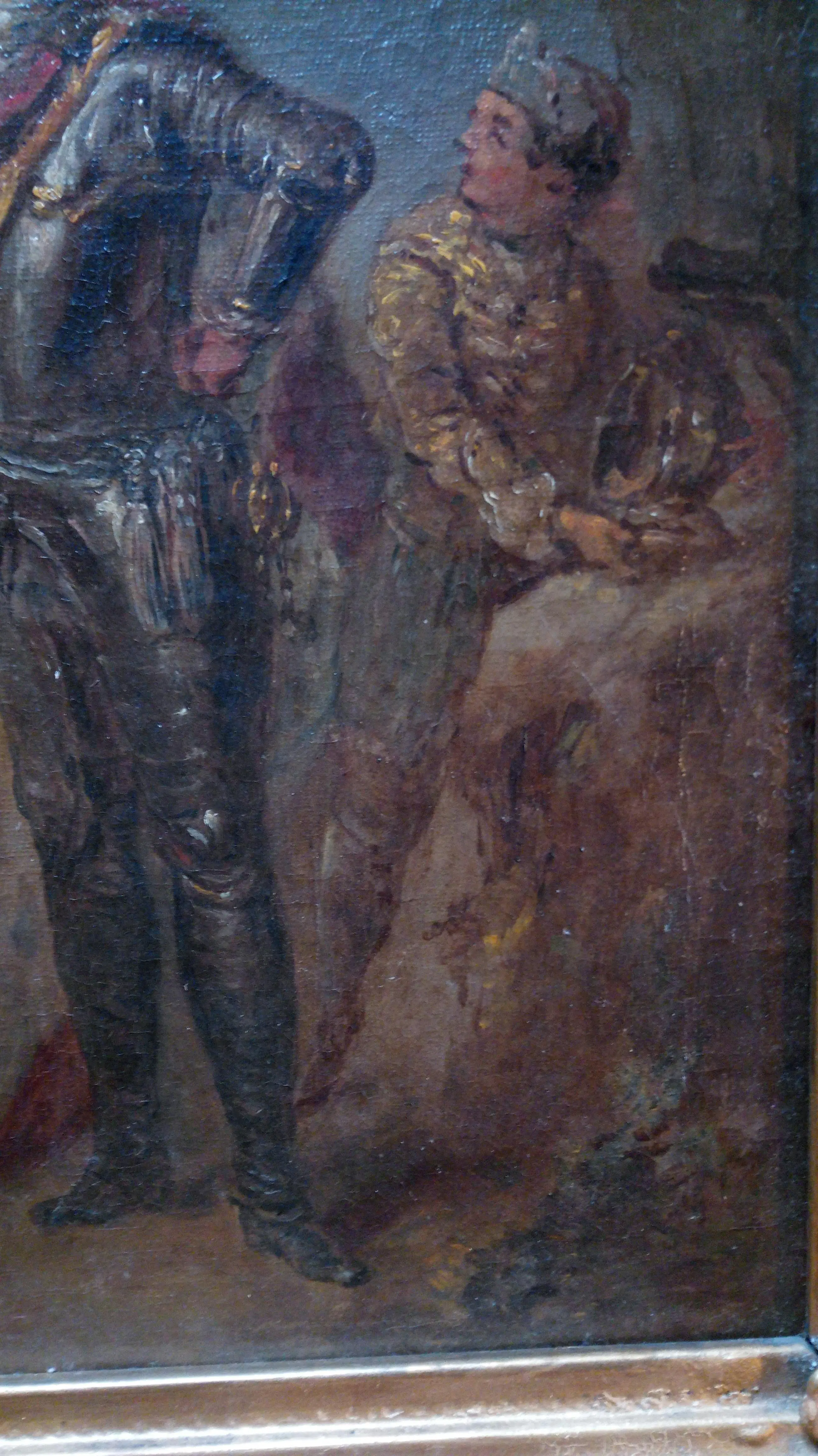 Het schilderij/doek is oud, maar vertoont geen grote schade. Een klein plekje op het doek (boven de uitgestrekte arm, zie bijbehorende afbeelding) is licht beschadigd. De lijst, met zijn uitgebreide versieringen, vertoont diverse tekenen van schade, zoals verlijmde onderdelen op de hoeken en ontbrekende kleine stukjes (zie ook detailfoto's).