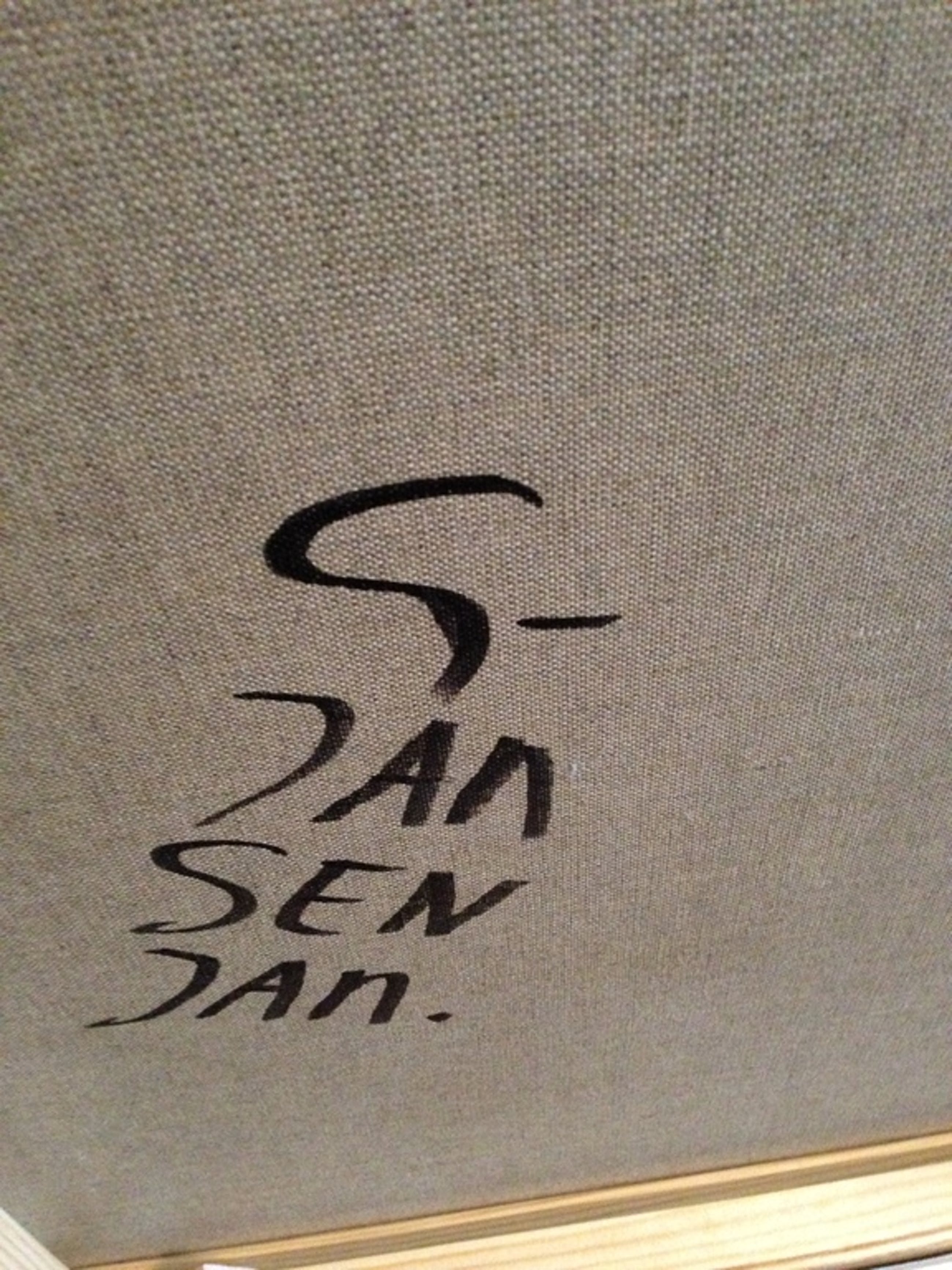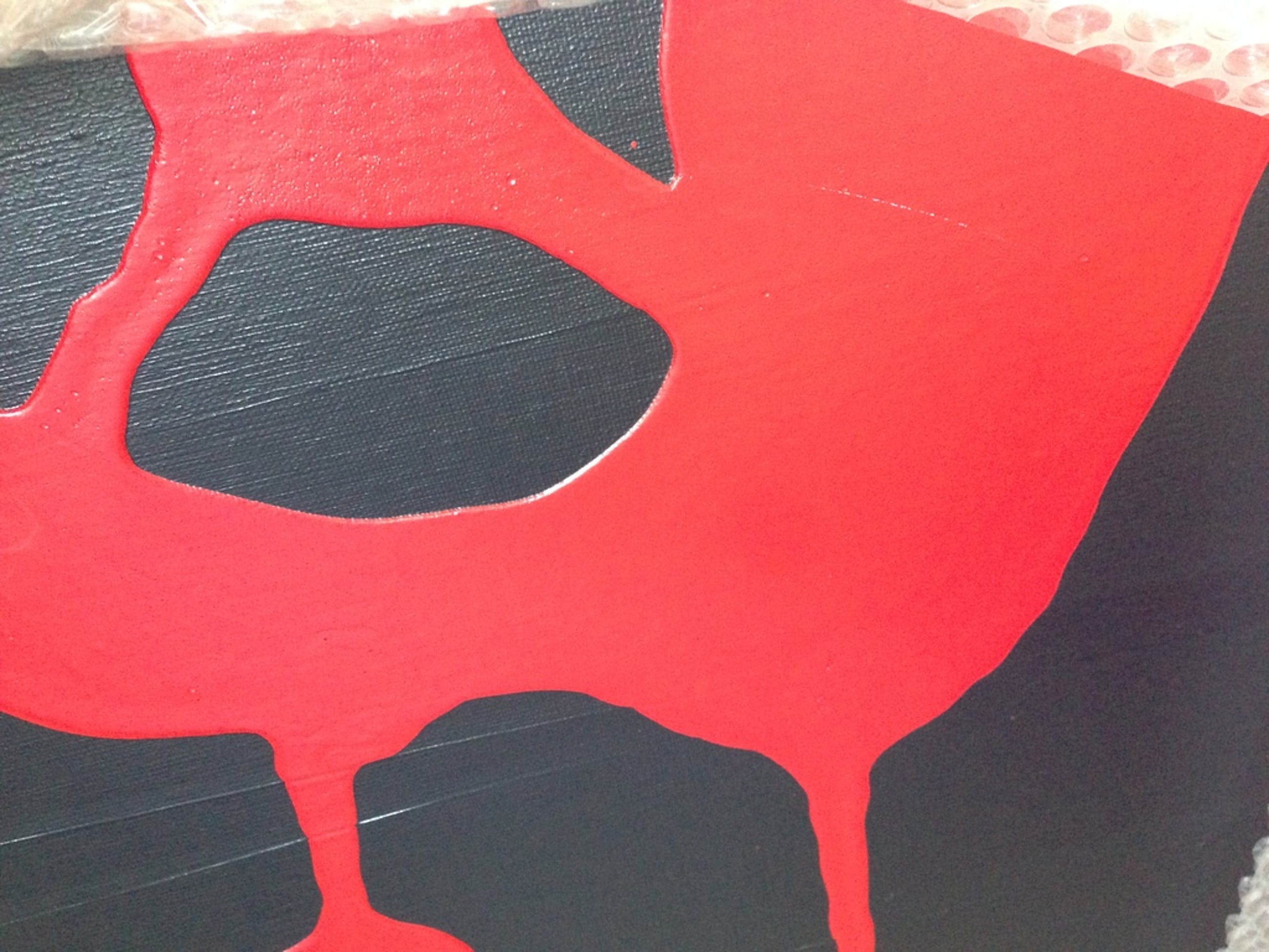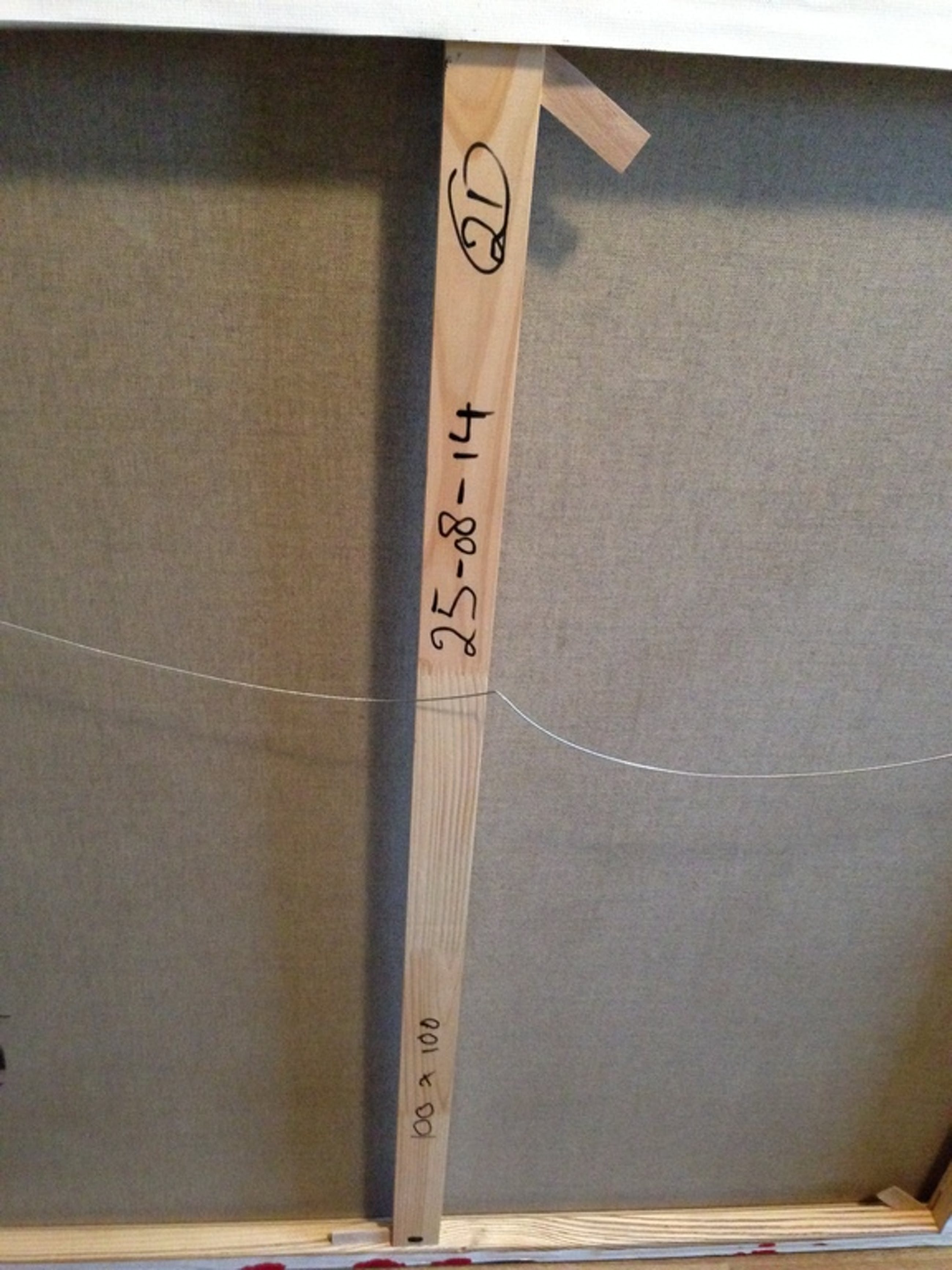 Techniek: zijn nieuwe 'schenk techniek'= verf vanuit een theepot op het doek glooien