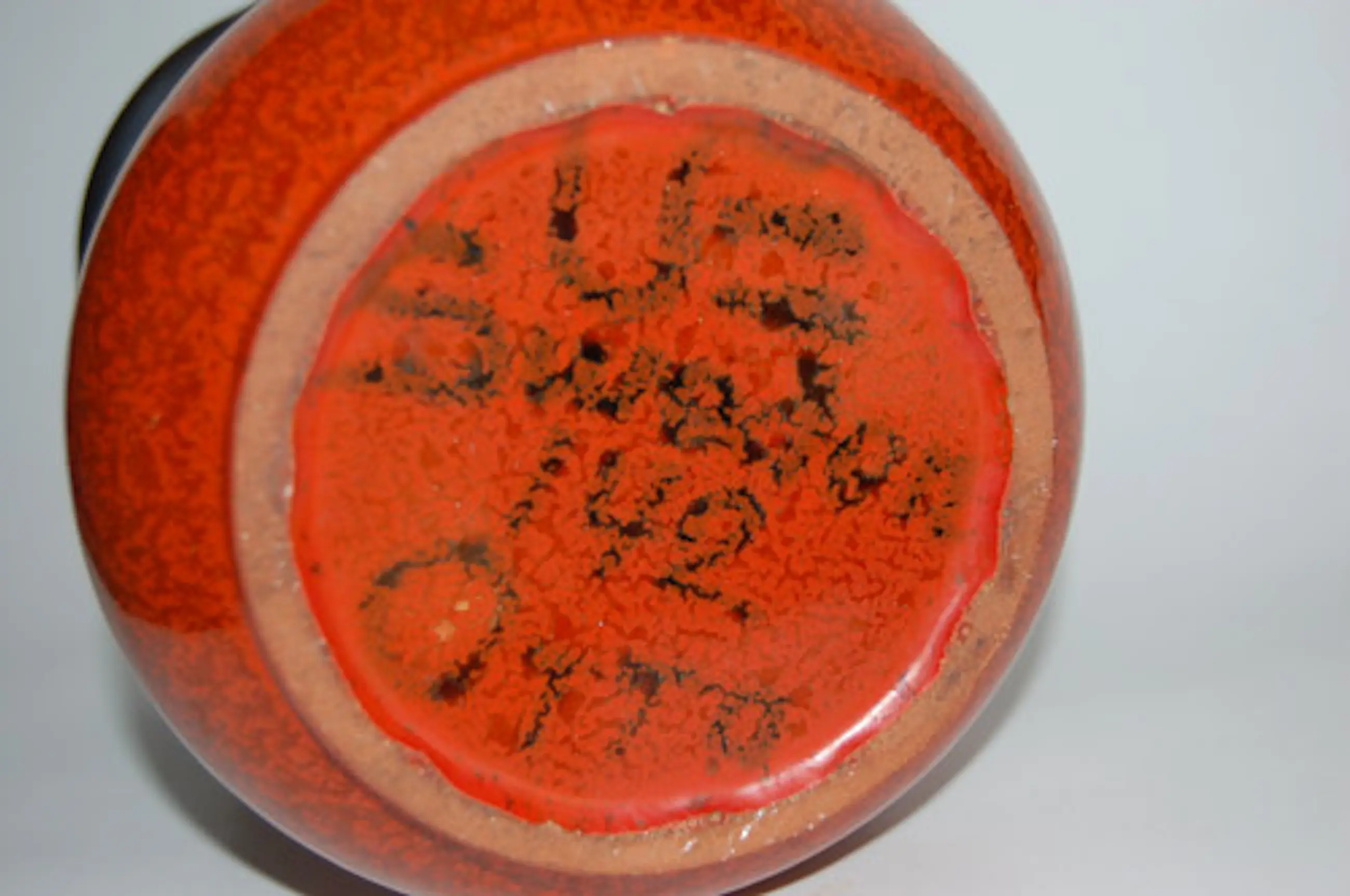 Zeldzame mooi geglazuurde vaas Gemerkt met: Sweden- U- 142 OTTO. Uitvoering: Upsala Ekeby Pottery Sweden. Ontwerp: Harald Östergren Jaar: 1930-'40 Serie: Otto Hoogte: 16 cm Binnenzijde mat zwart geglazuurd met golvende rand. Buitenzijde rood geglazuurd glanzend, naar boven uitlopend in mat zwart. Rood aardewerk. Land: Zweden Conditie: gaaf