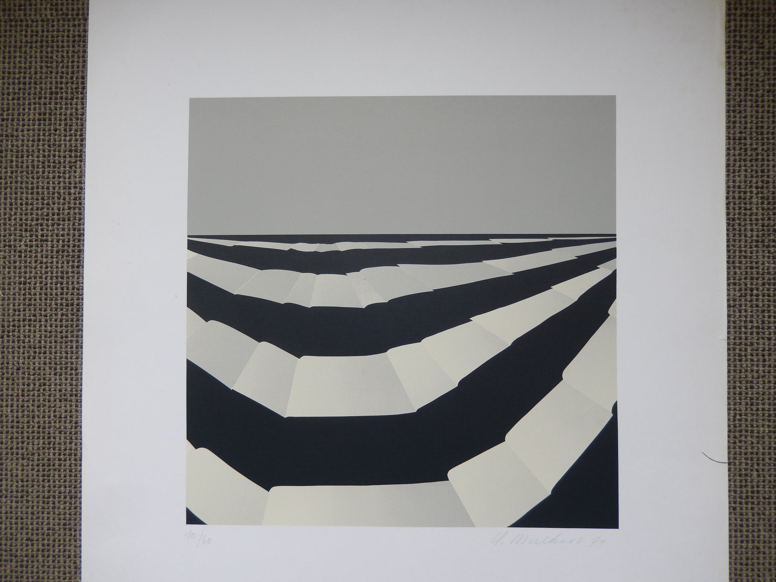 Zeefdruk van Urbain Mulkers, titel "Landscape". 1974. Oplage 10 van de 60. Gesigneerd.