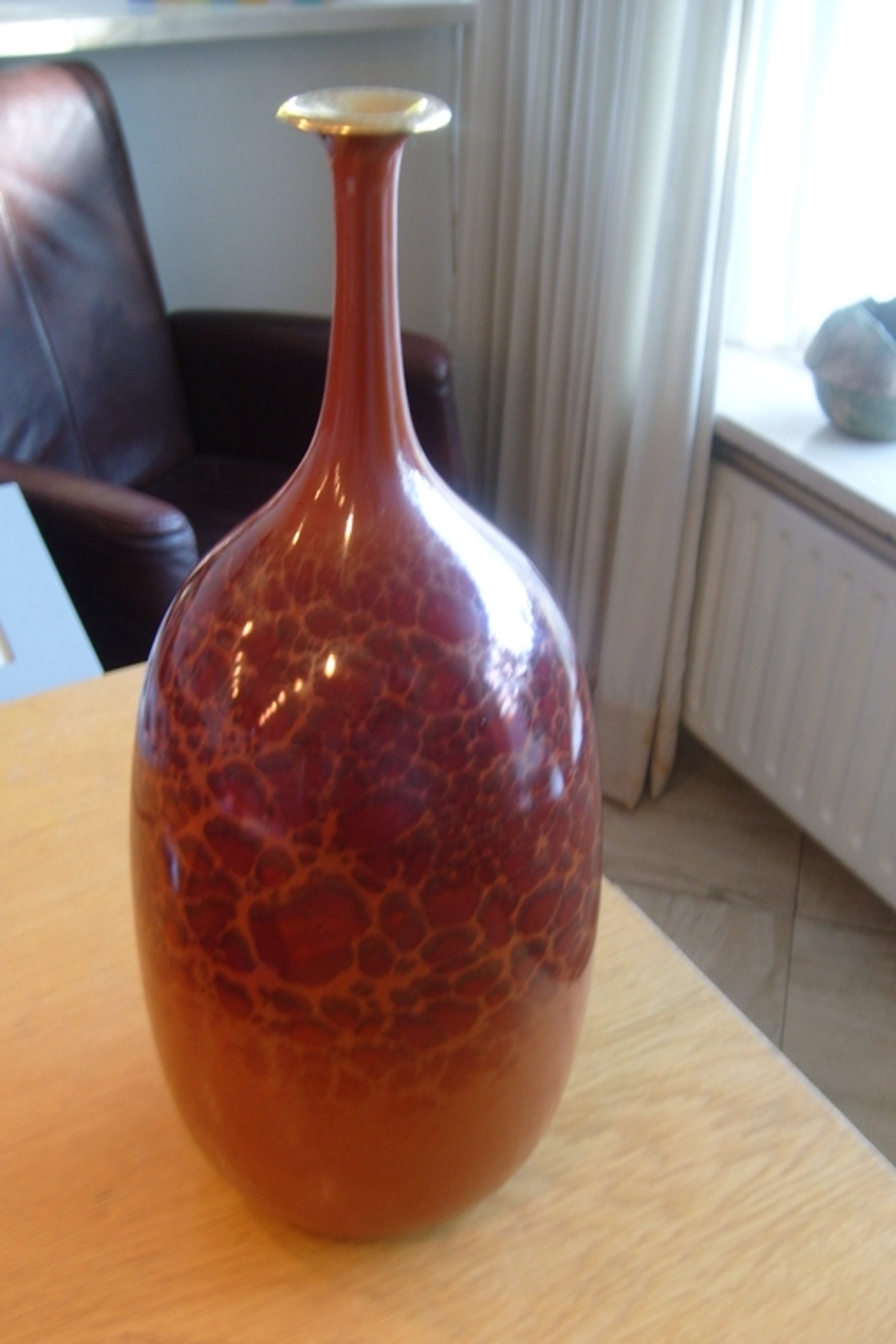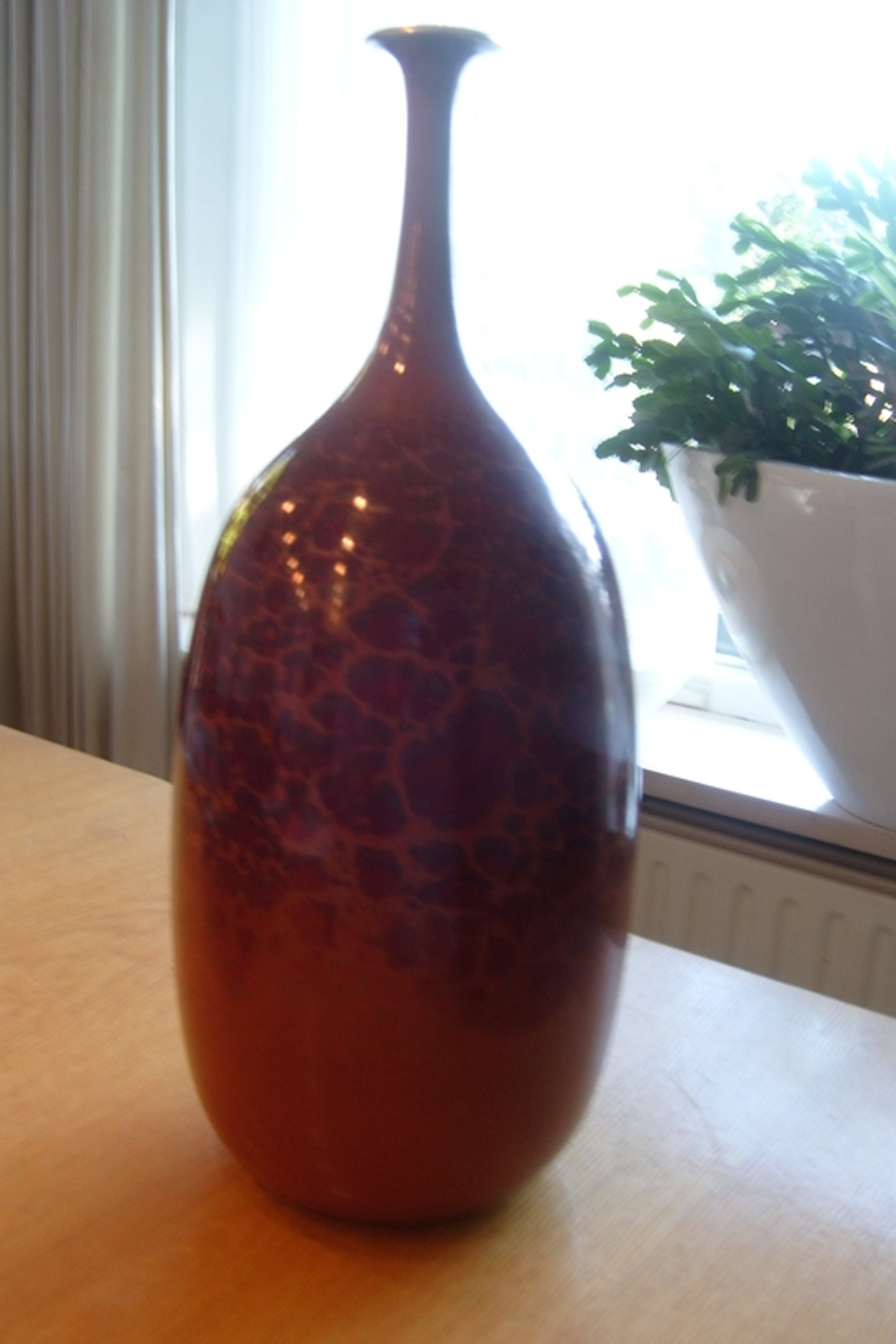 Vaas, /Object, bruin gemeleerd geglazuurd decor,