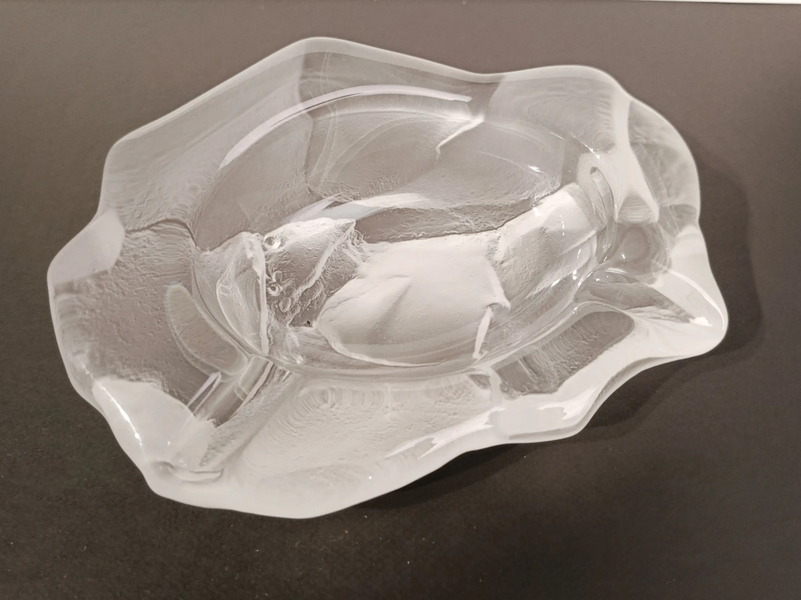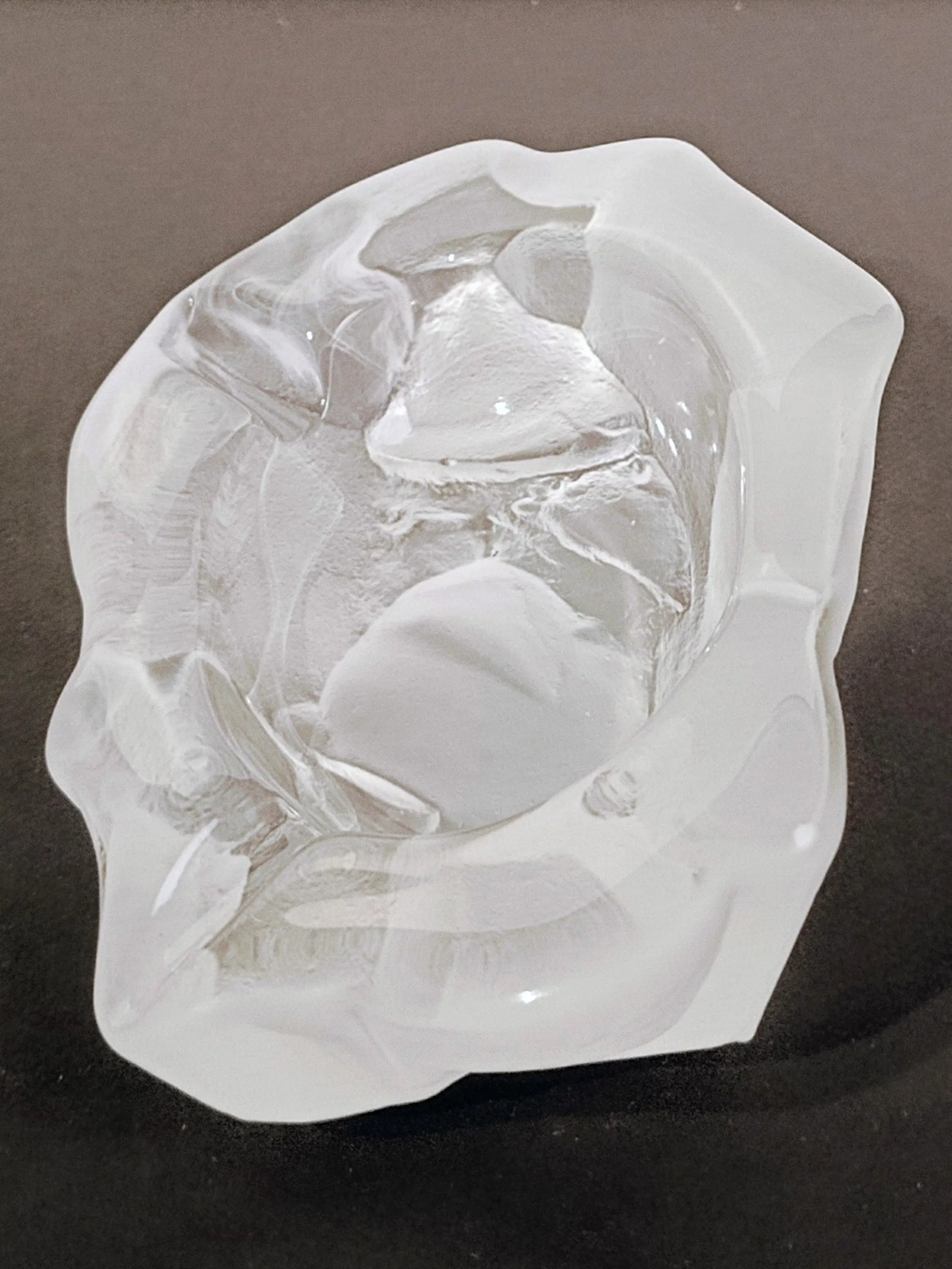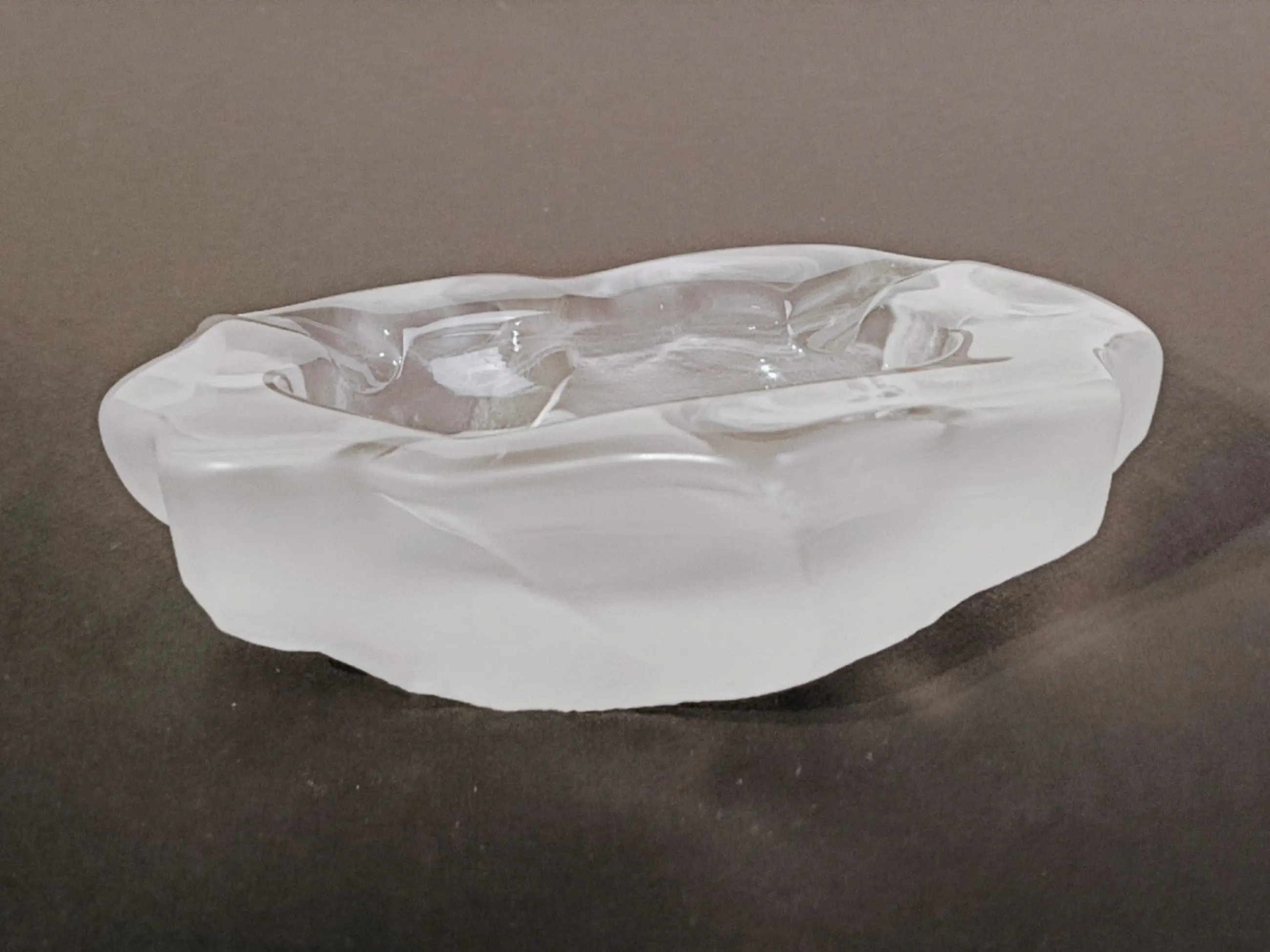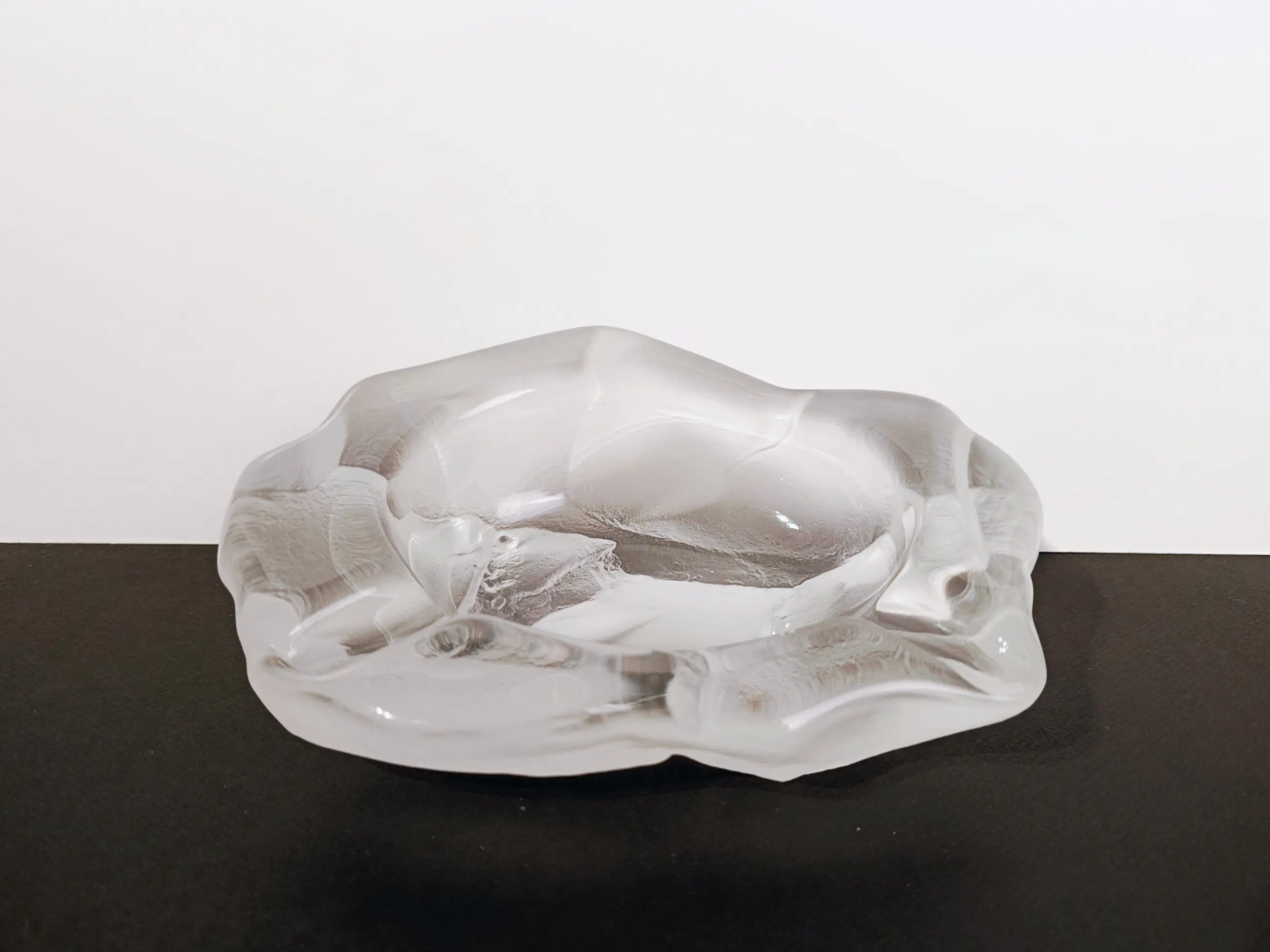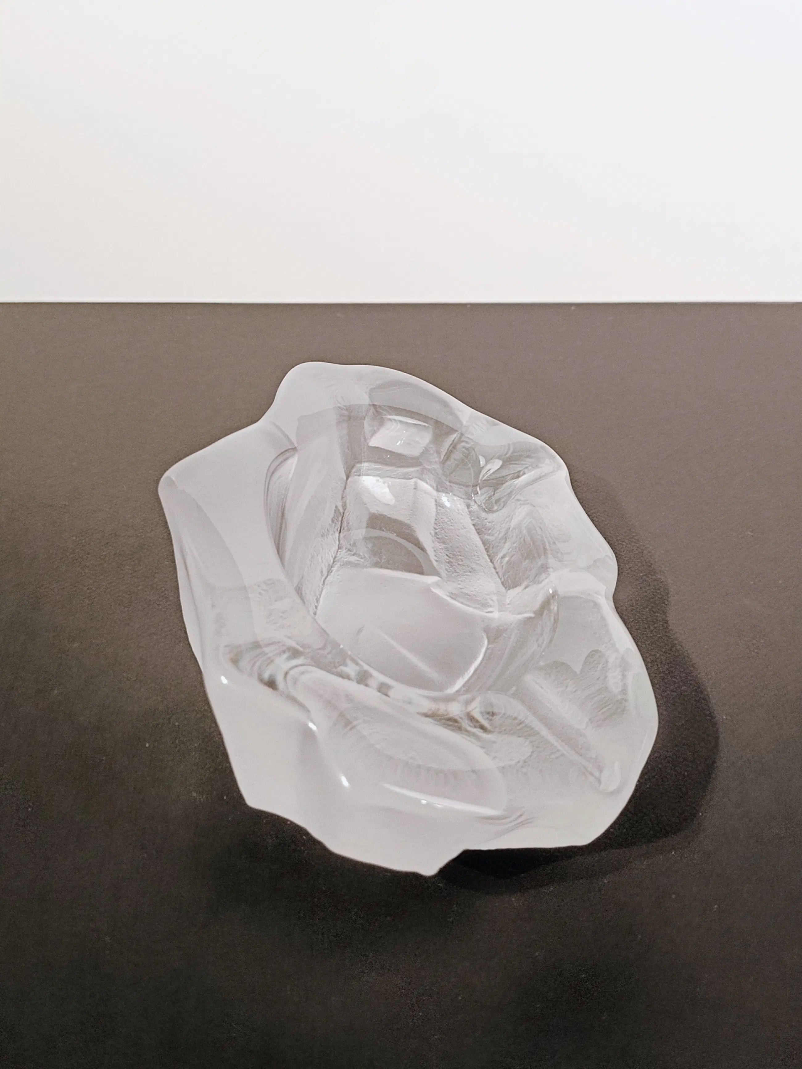 Kristalfabriek Val Saint Lambert: Brutalistische asbak/sieradenbakje van mat kristal. Jaren 1950-1960. In uitstekende staat. Afmetingen: 17 x 22 cm Gewicht 2238 gram.