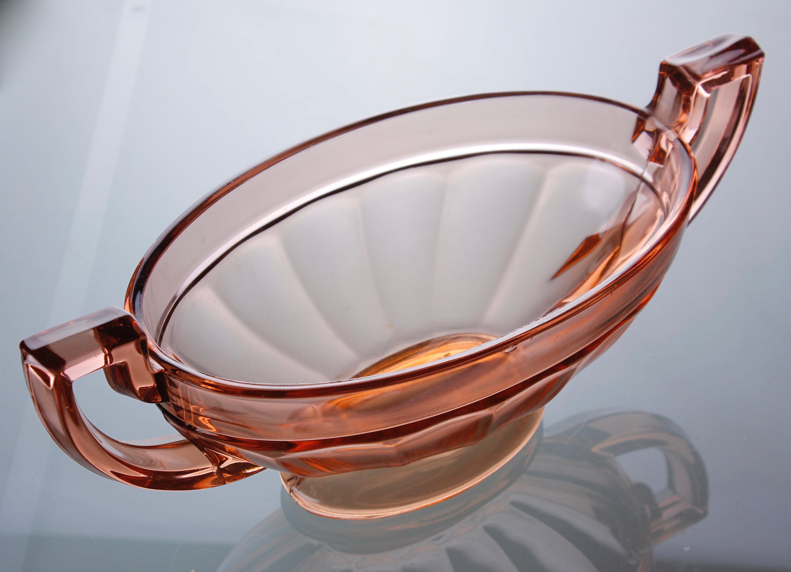 Uitstekende Val St. Lambert schaal uit de art deco periode met stilistische oren. Vervaardigd in 1935Model: Coupe Noémie Ontworpen door Charles Graffart en René Delvenne Dit model is in diverse kleuren uitgebracht, waarvan, blauw, groen, rosé en paars het meest gewild zijn. Pakket wordt internationaal met Track & Trace verzonden