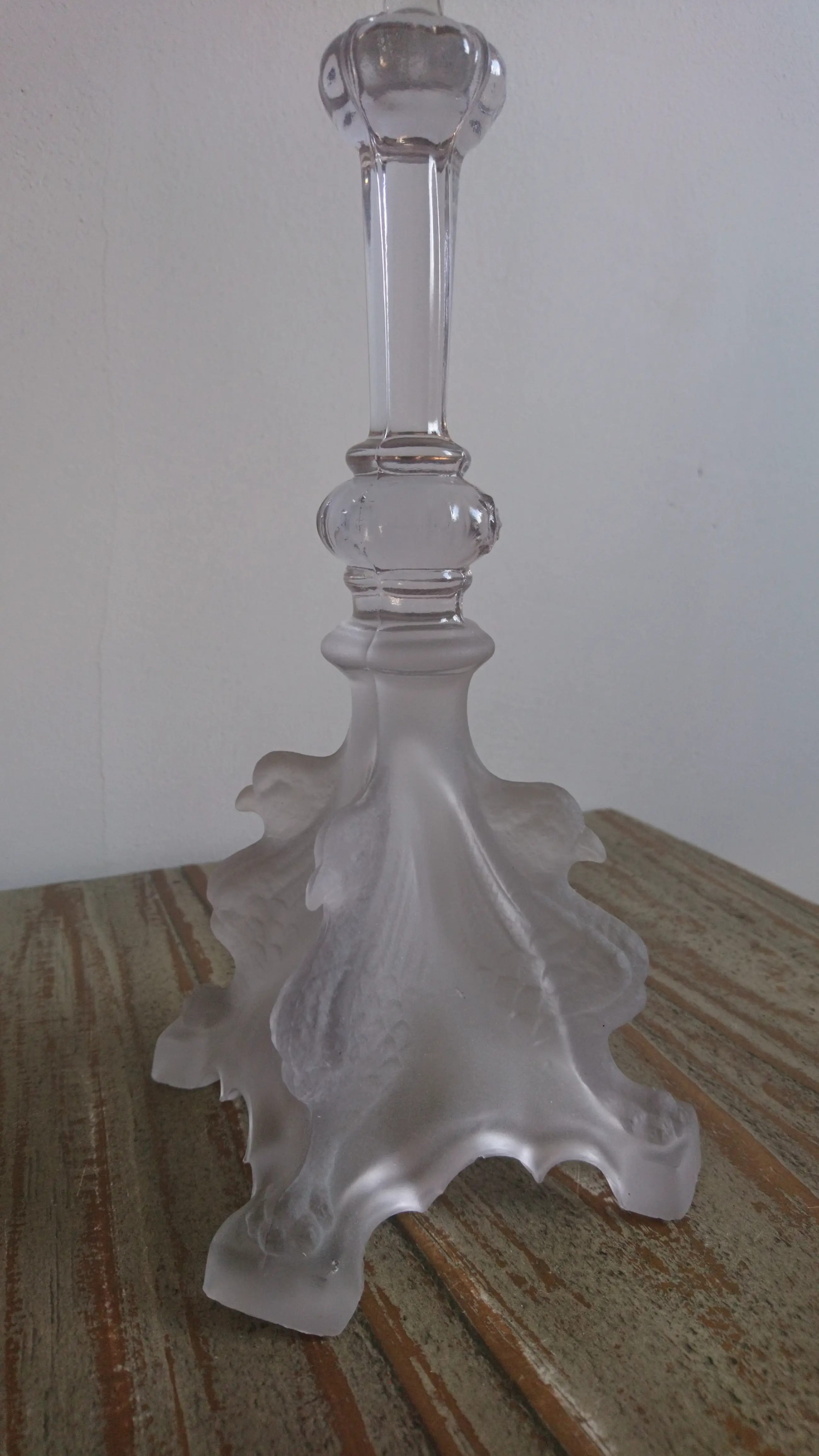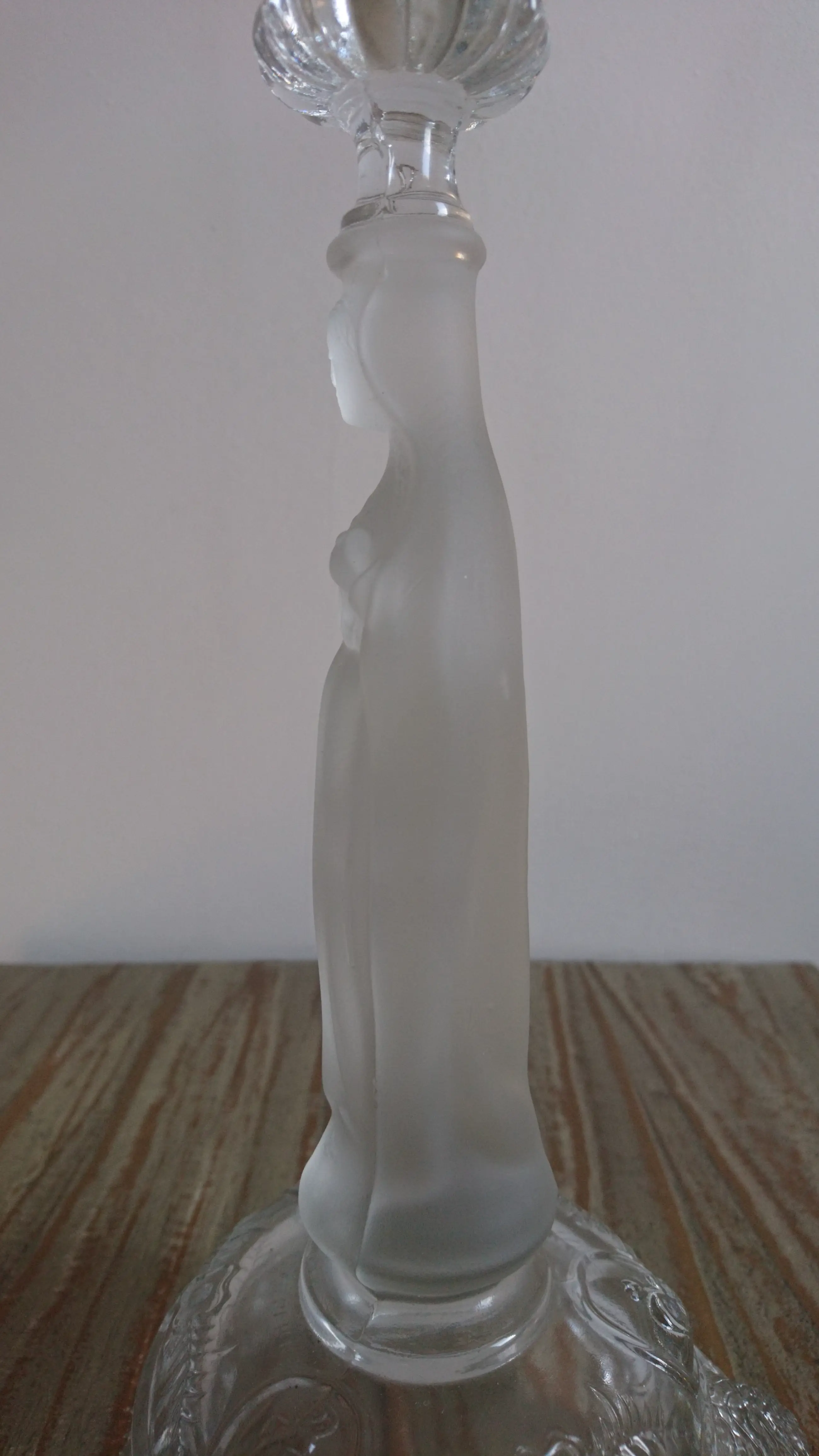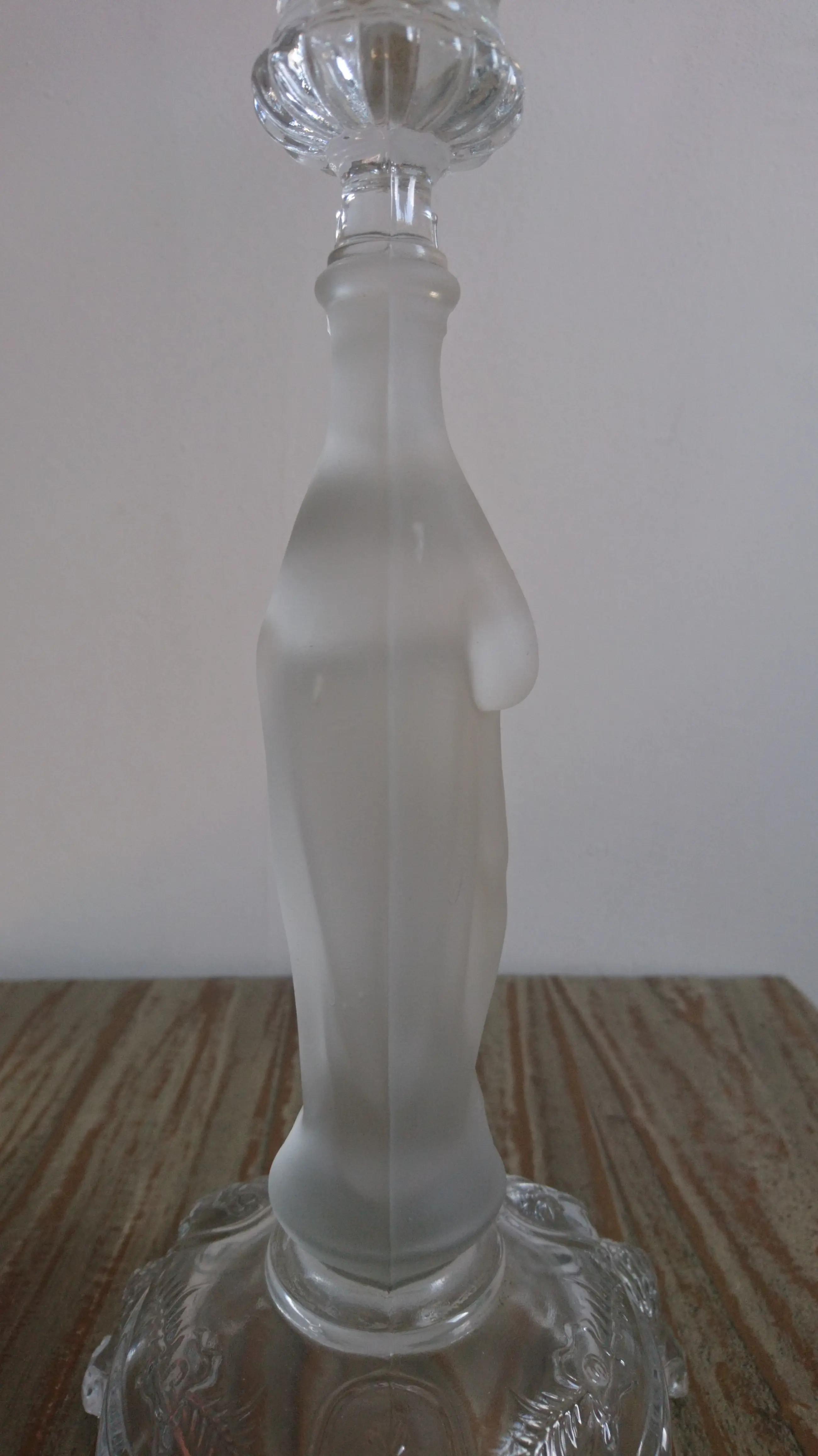 VSL Kandelaar "Griffon" (1935) en "Vierge Marie" (begin 20e eeuw) van gesatineerd persglas.