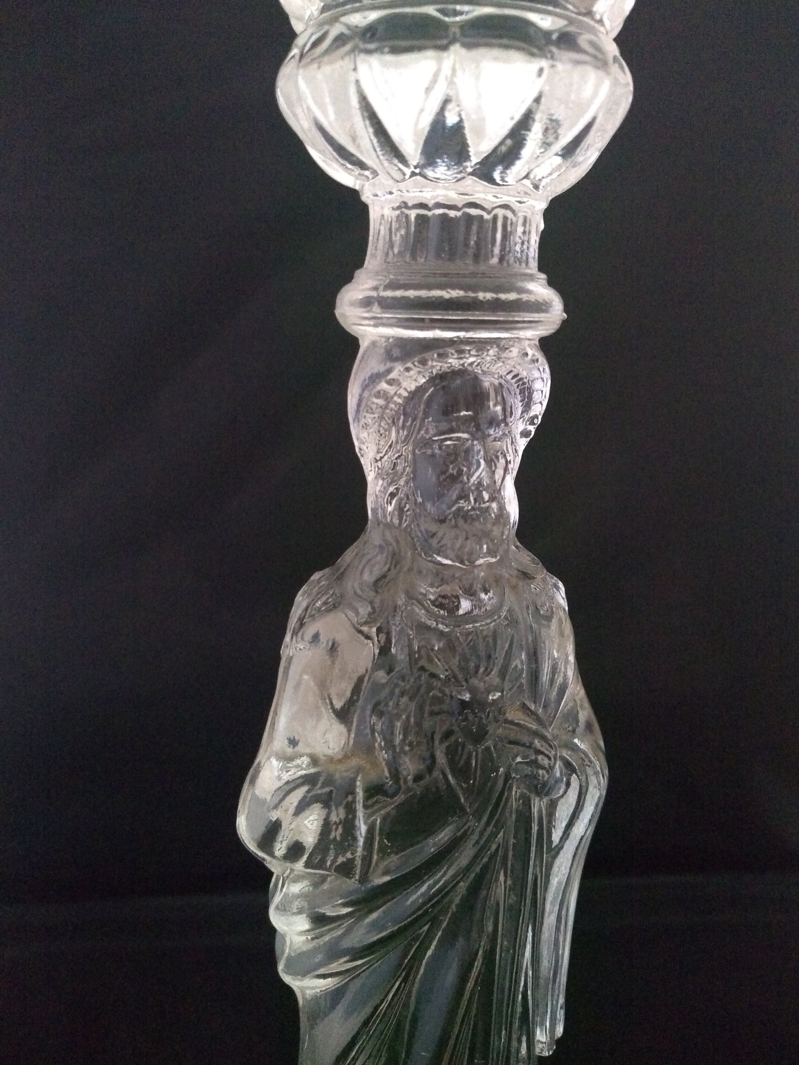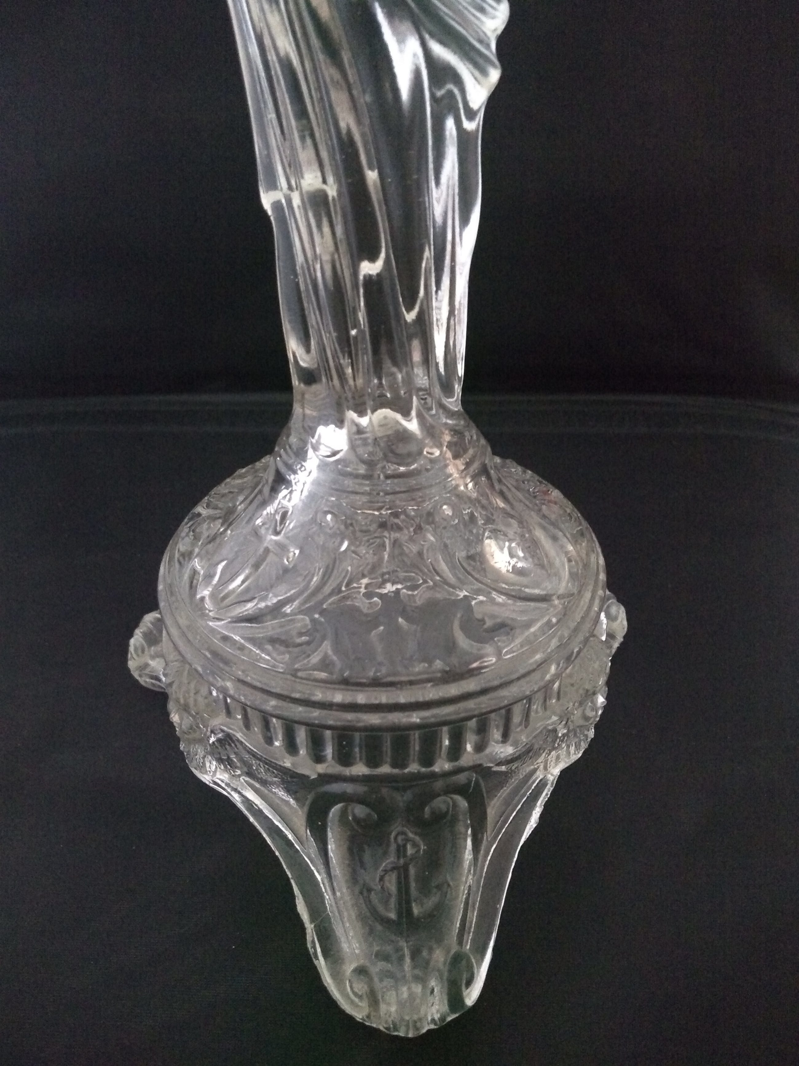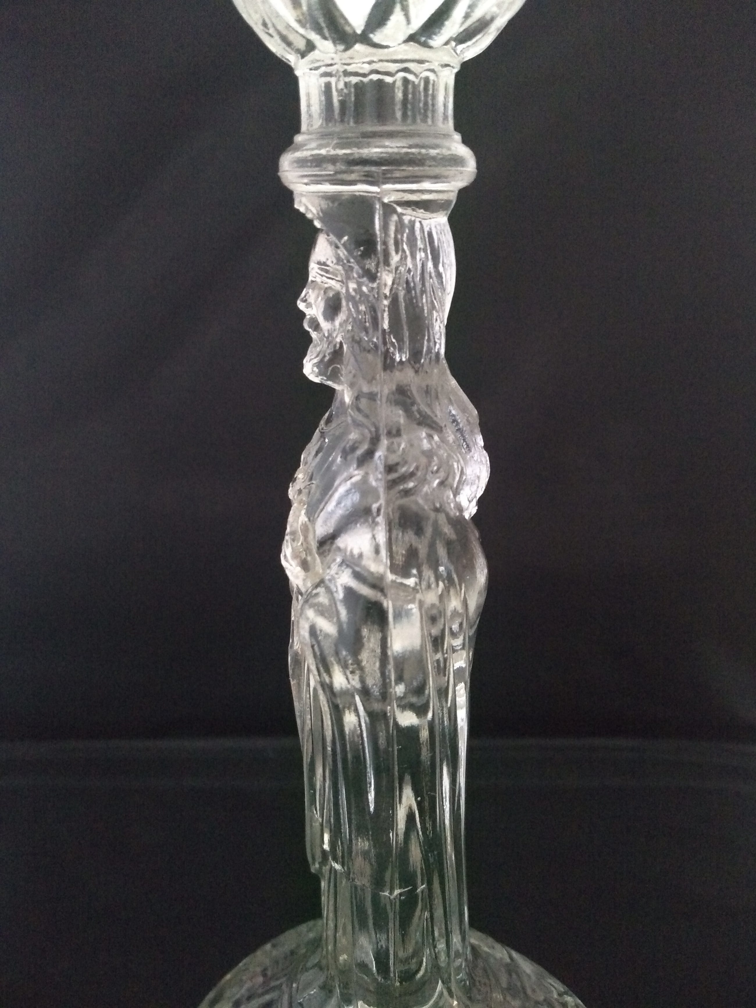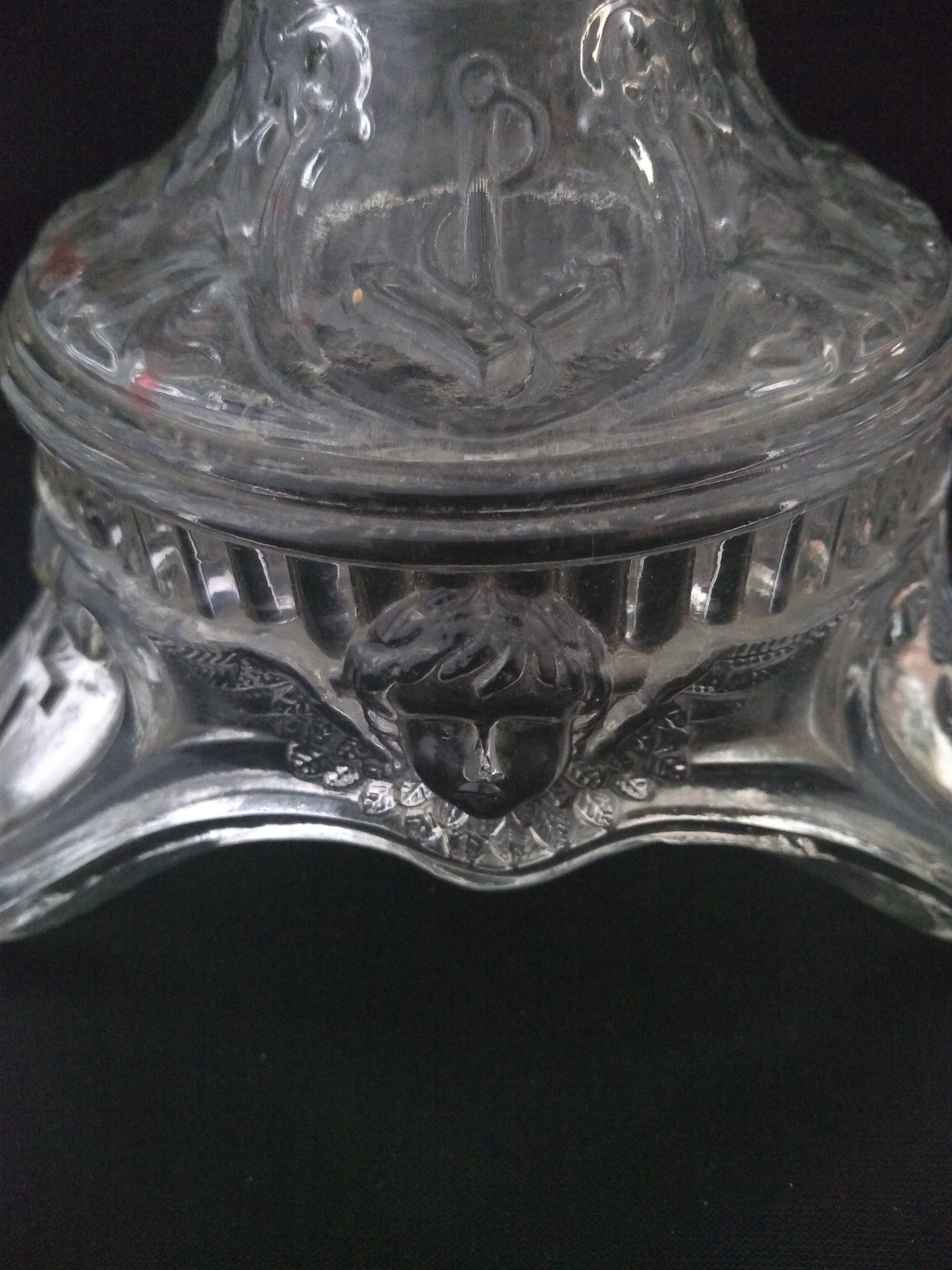 Beste volgens mij VSL ontwerp Rene Delvenne, Charles Graffart. In de voet engelenhoofd met vleugels in reliëf,kruis,anker,hart . Periode rond 1900. Zo goed mogelijk gefotografeerd. Mvg.