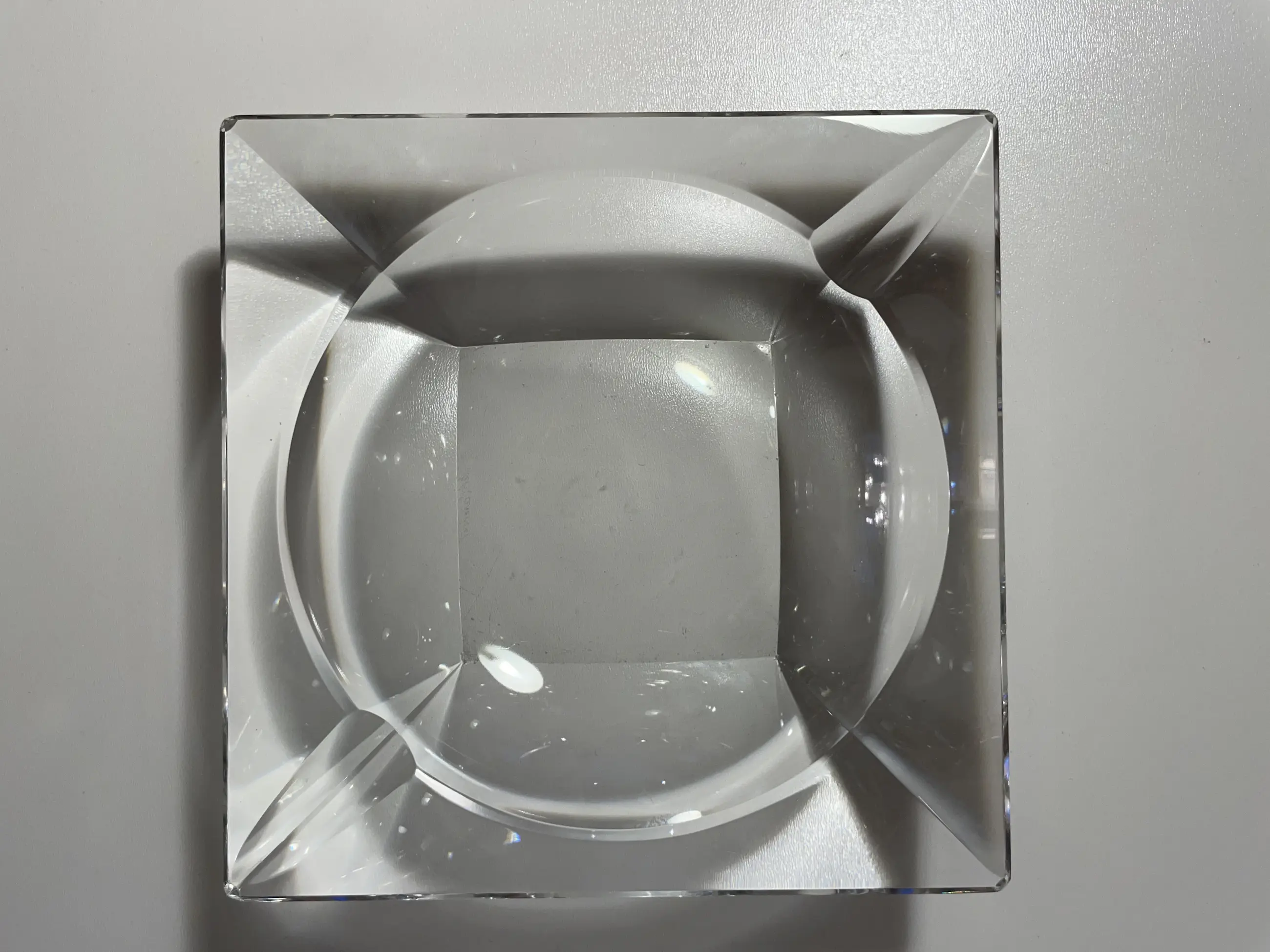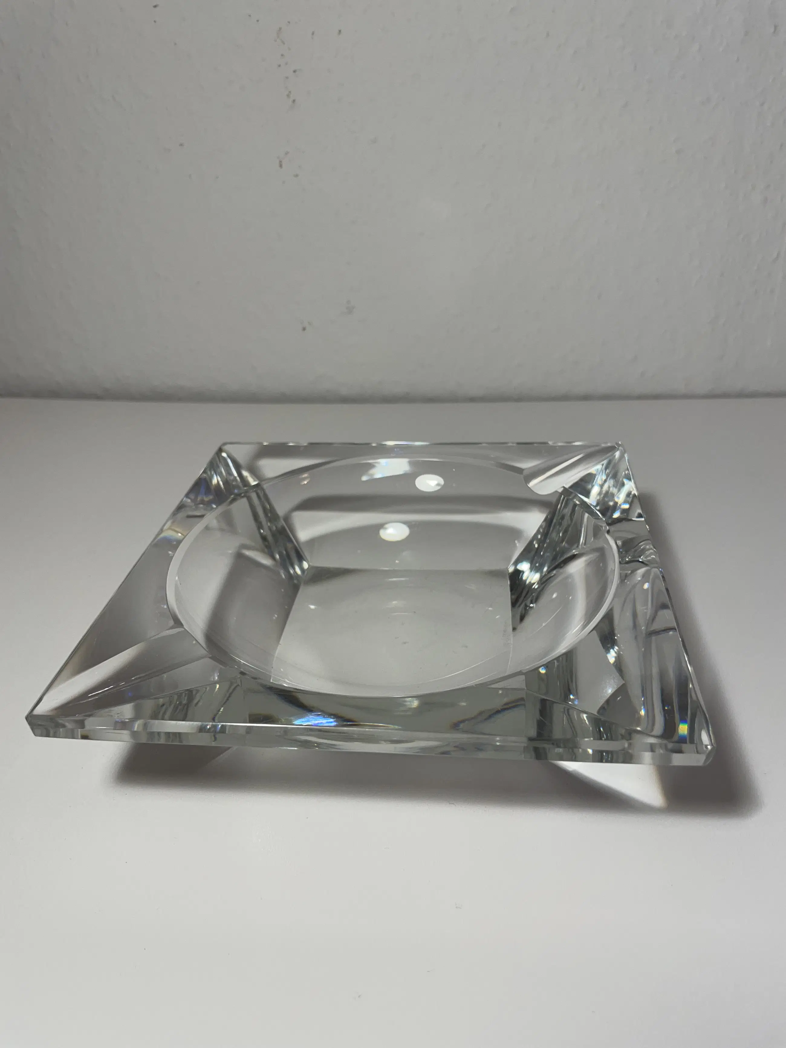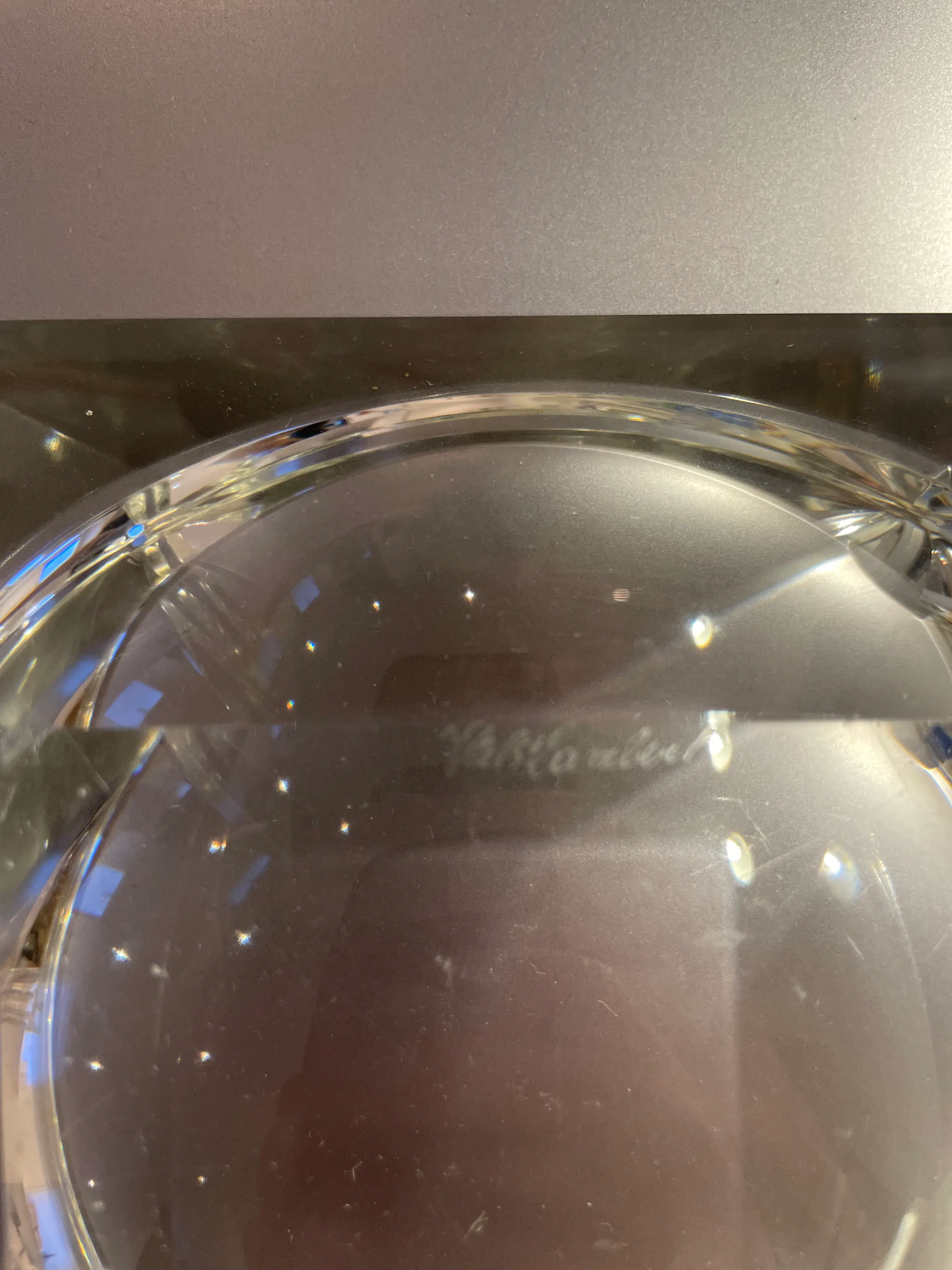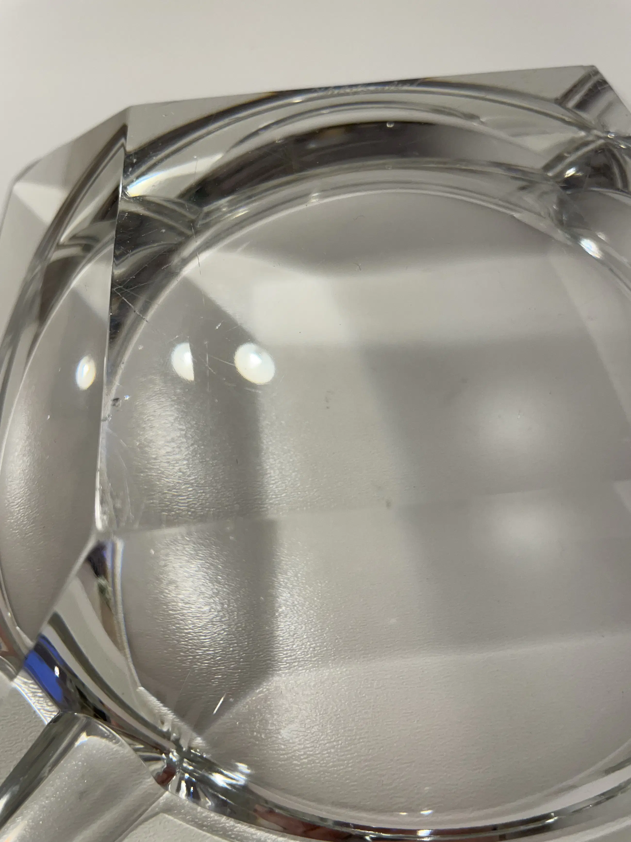 Kristallen asbak van Val Saint Lambert, model Messancy. In goede staat, geen chips, maar lichte krasjes aan de onderkant.