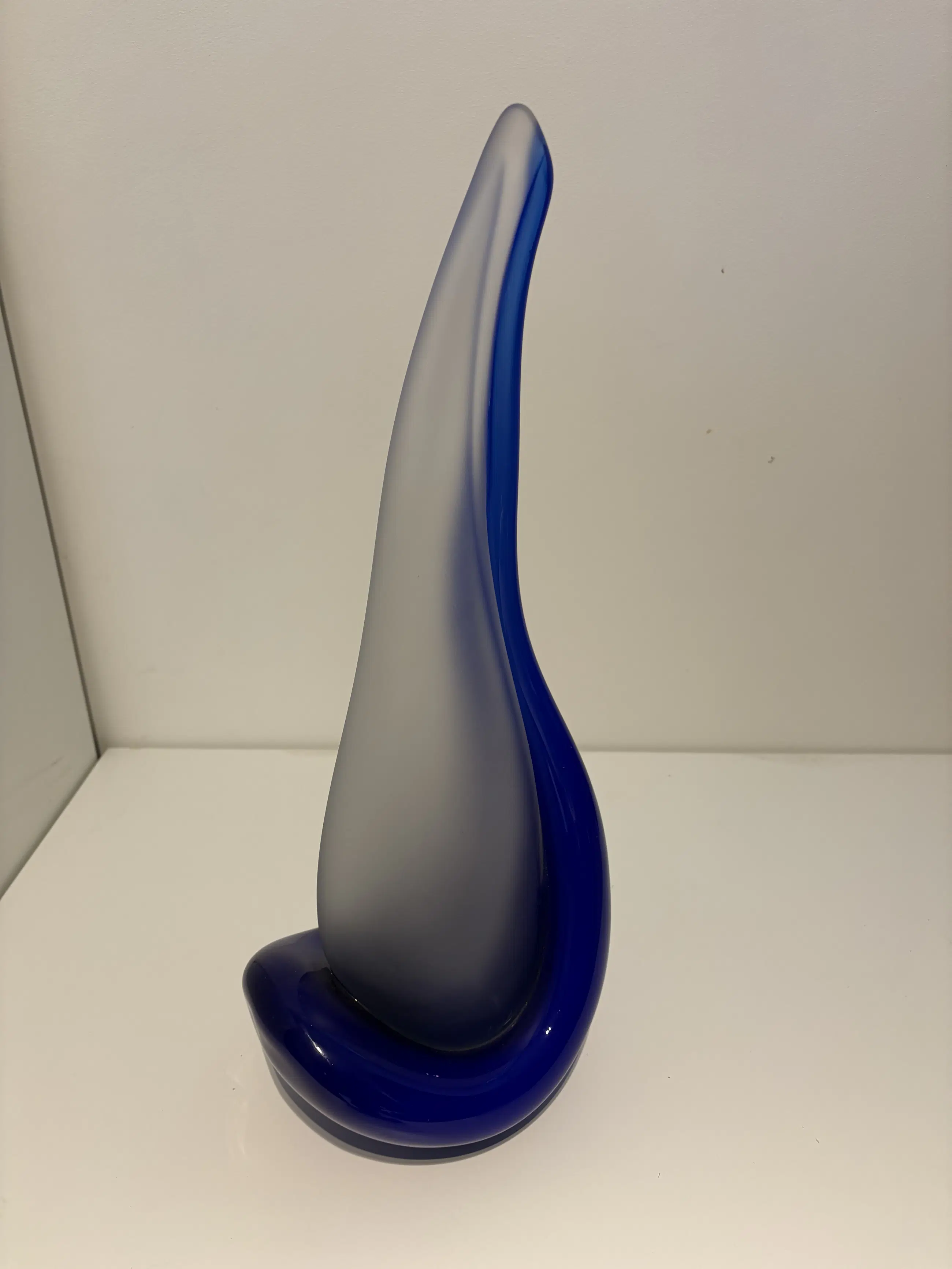 Kristallen kunstobject van meesterglasblazer Alfons Collard voor Art Studio Cristal van Val Saint Lambert. In de jaren 90 ontwierp Collard hij veelvuldig voor de "Studio Cristal"-lijn van Val Saint Lambert. Deze vazen en objecten staan bekend om hun organische vormen, reliëfdecoraties en het gebruik van gekleurde kristal-insluitsels.