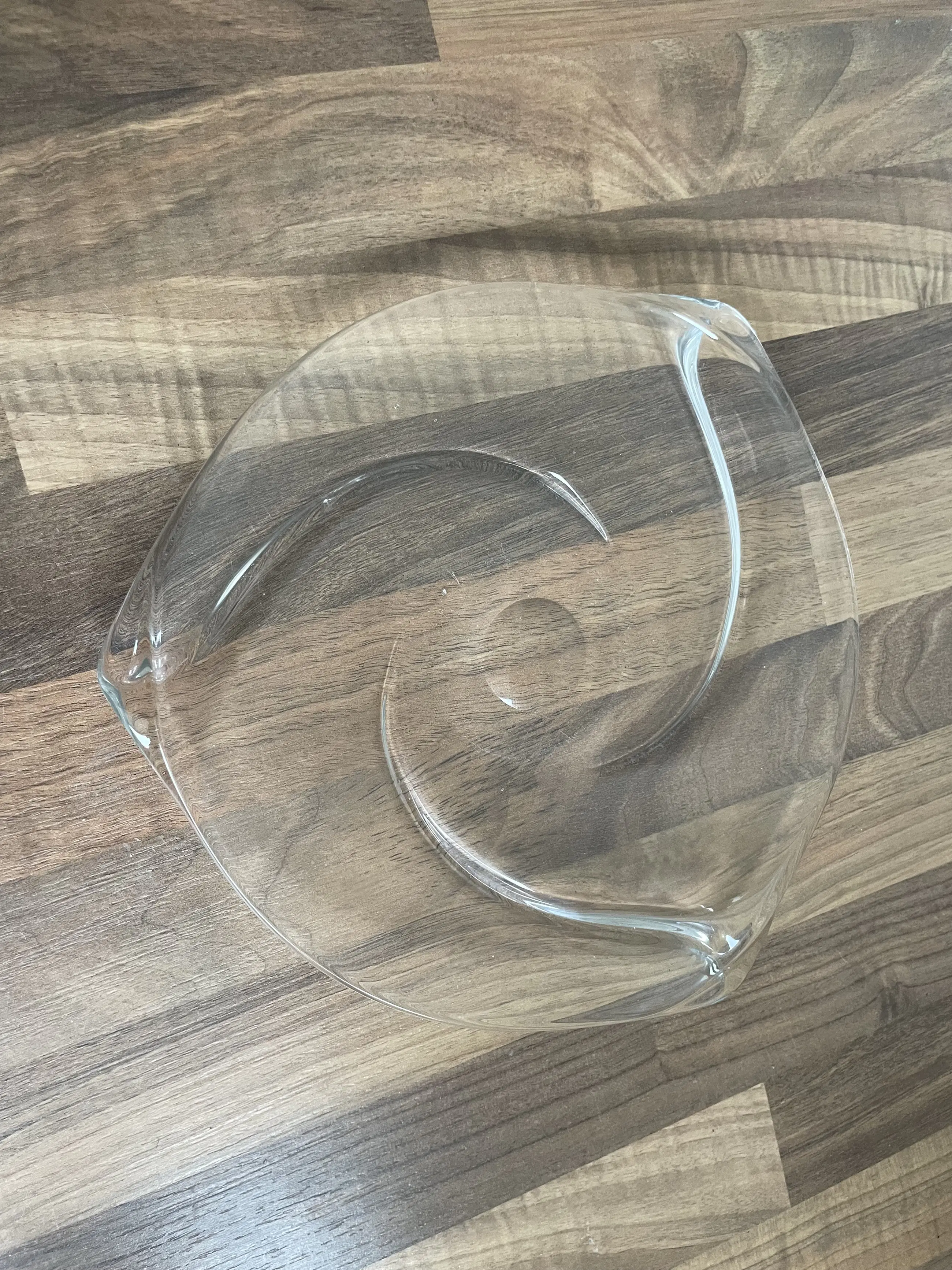 Vintage helder kristallen schaal of bord uit de Patelle serie ontworpen in 1962 door Rene Delvenne voor Val Saint Lambert. Staat afgebeeld in de catalogus uit 1962. In perfectie conditie. Niet gemerkt.