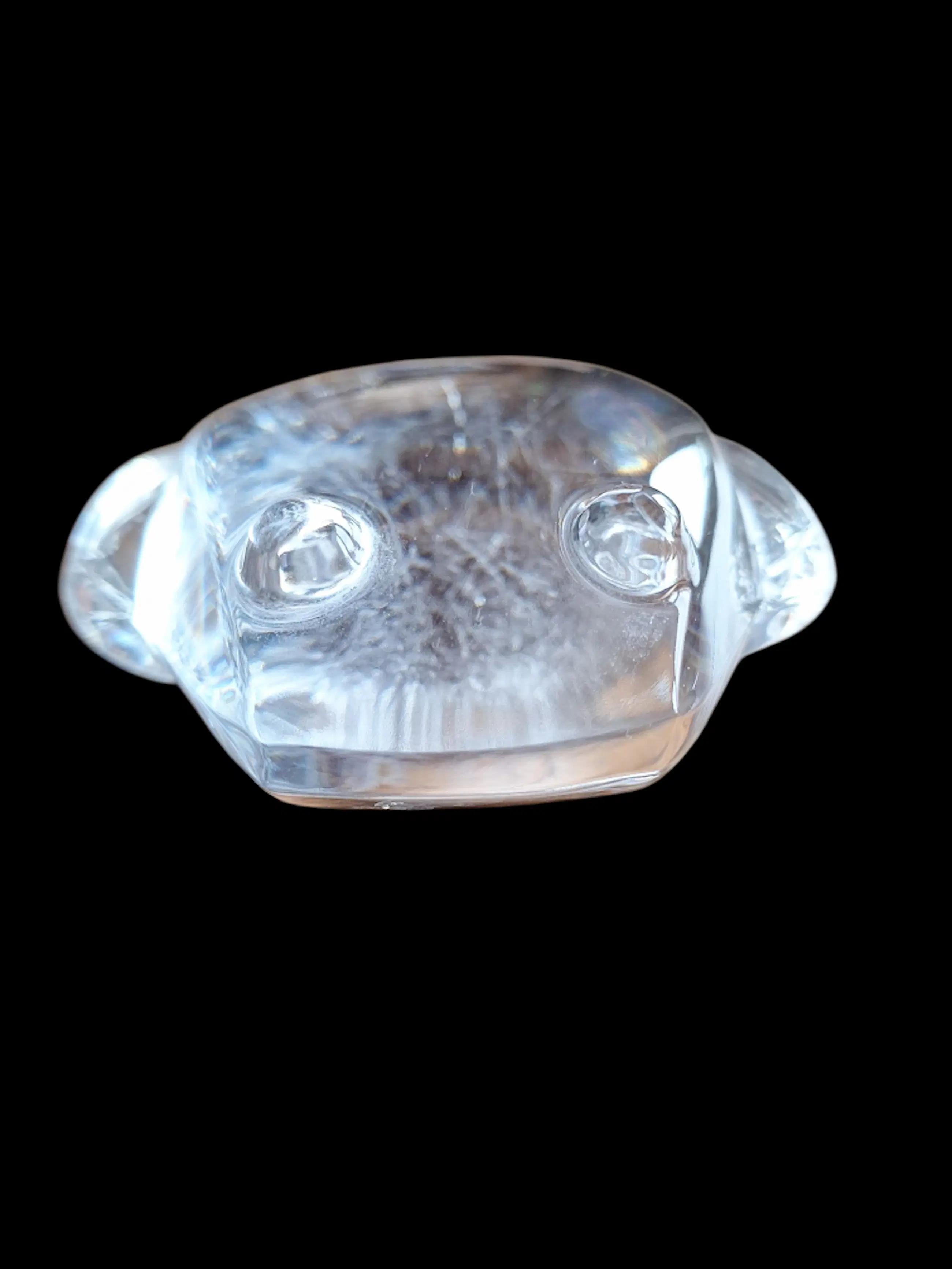 Mooi beeld van een grote kikker of pad. gesigneerd door Val Saint Lambert en de ontwerpster De Sorrs. Heeft een paar kleine krasjes aan de onder zijde eigen aan het gebruik.