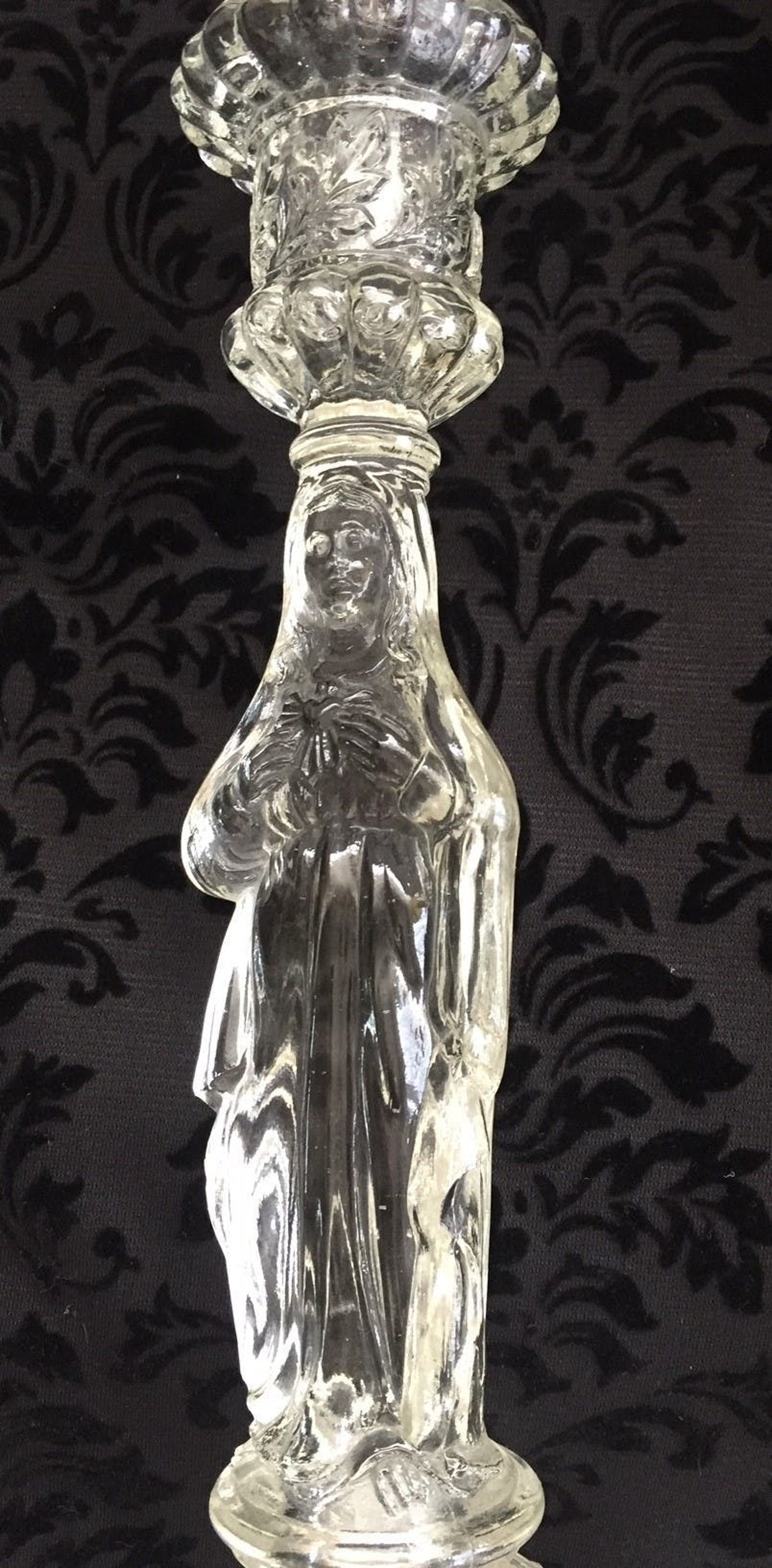 Twee ART NOUVEAU 1810 -1910 kandelaars Van Val ST Lambert voorstellend Maria & Jezus Zeldzaam beiden kandelaars ++++ in goede staat te koop!