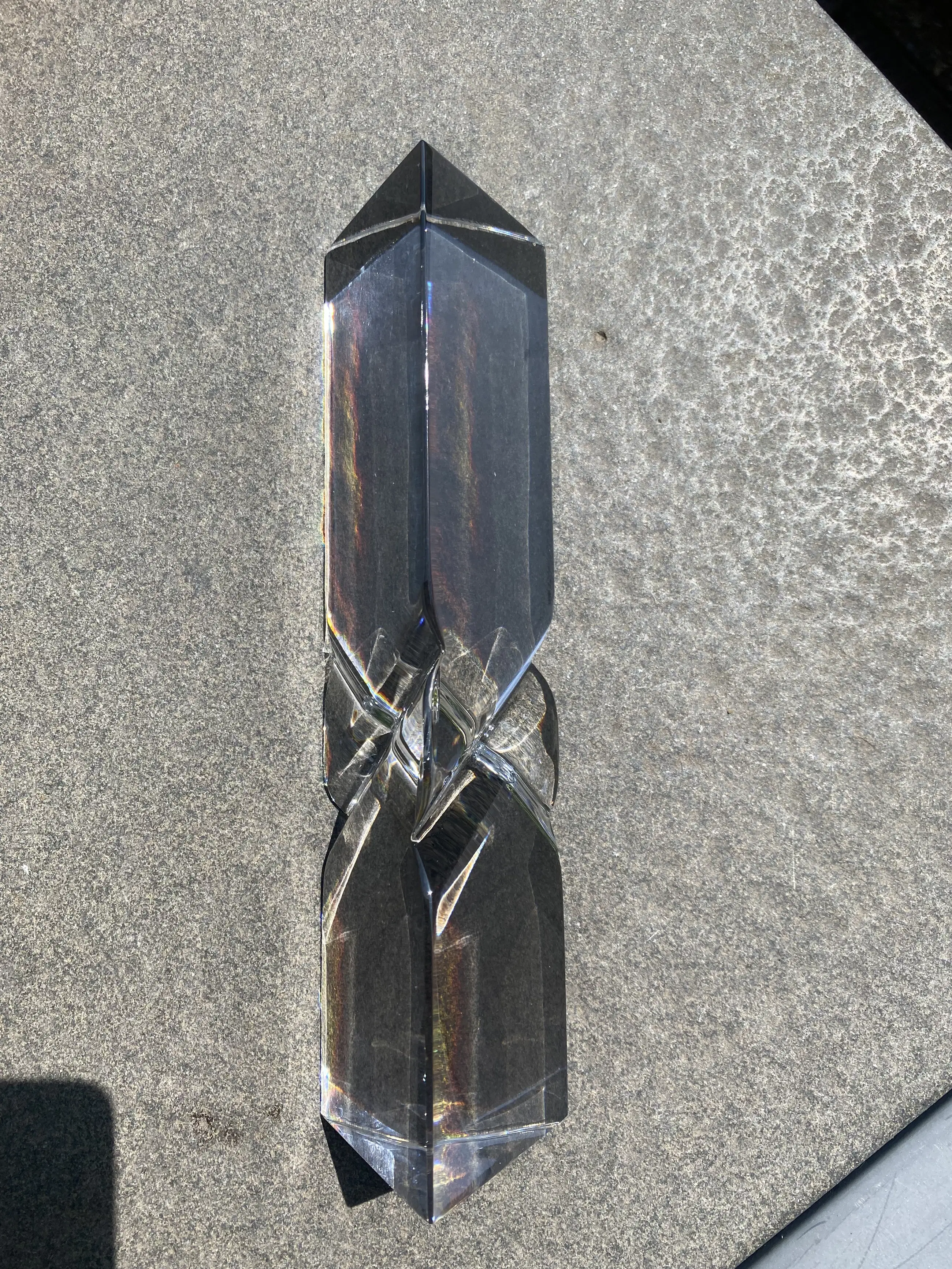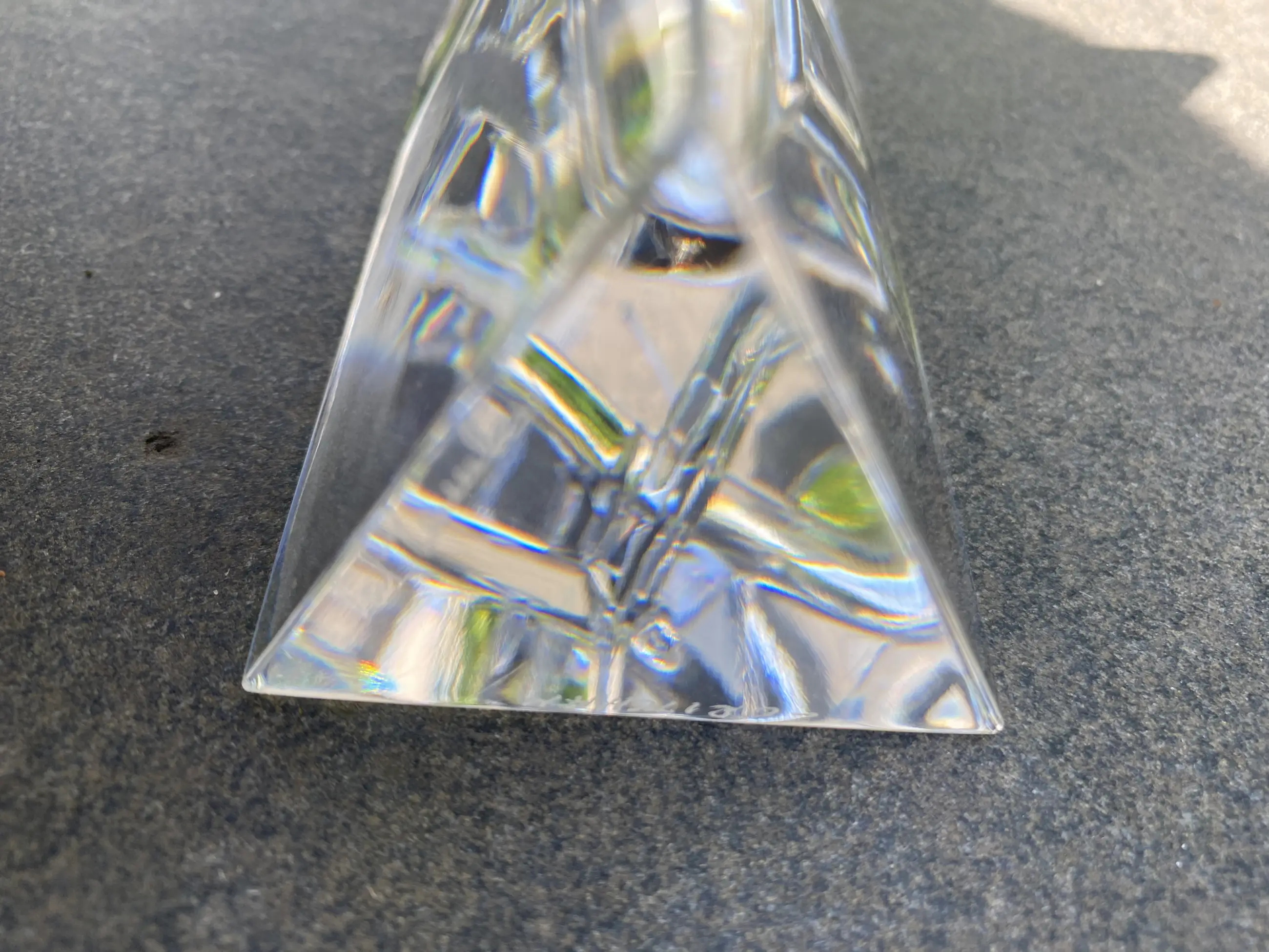 Prachtig ontwerp in kristal van de Tsjech Yan Zoritchac voor Val Saint Lambert. Kan liggen bijvoorbeeld als presse papier en staand als obelisk. Glashelder en in perfecte staat. Laat zich moeilijk fotograferen vanwege enorme reflectie door heldere kristal. Signatuur van zowel fabrikant als ontwerper.