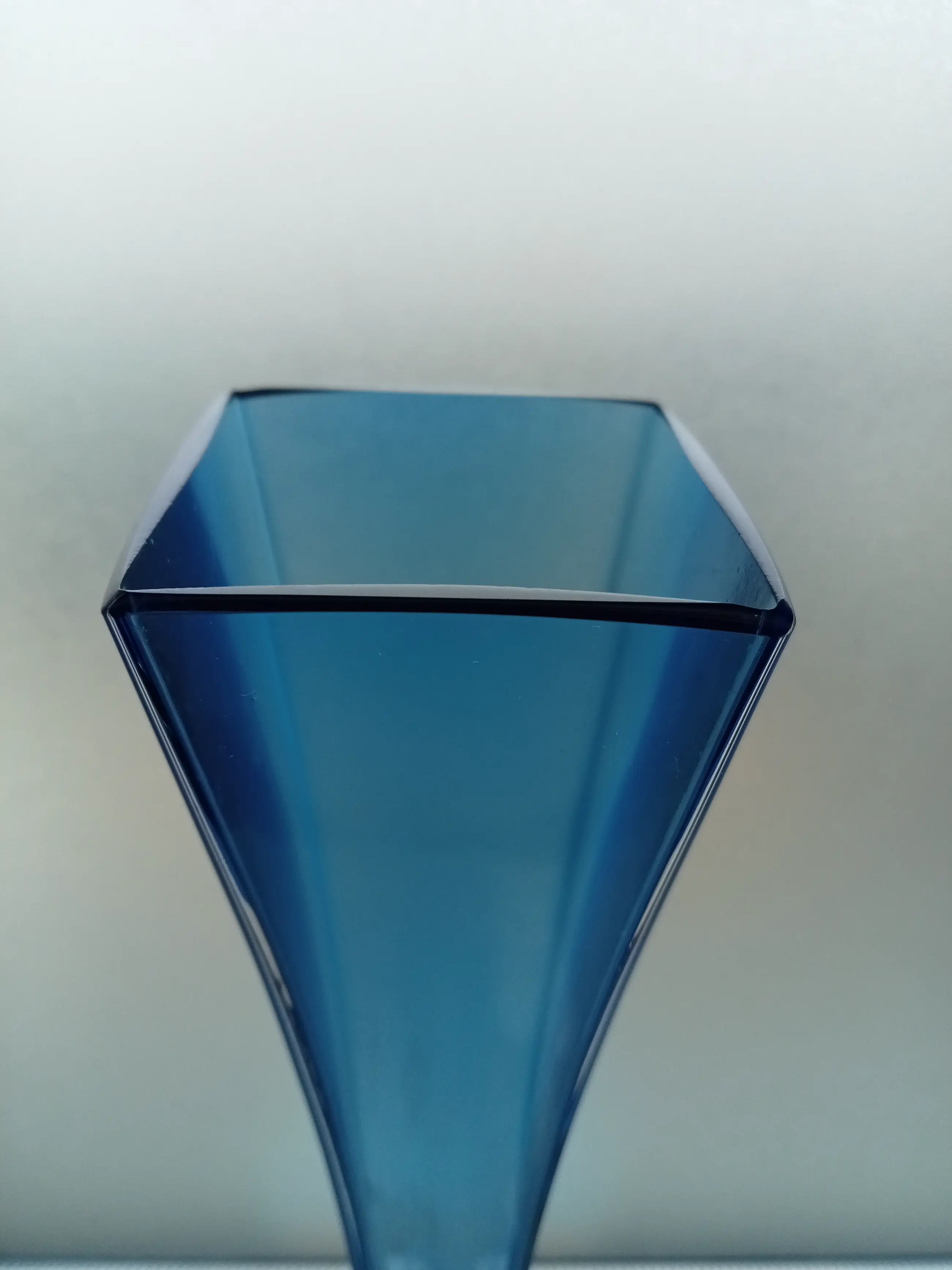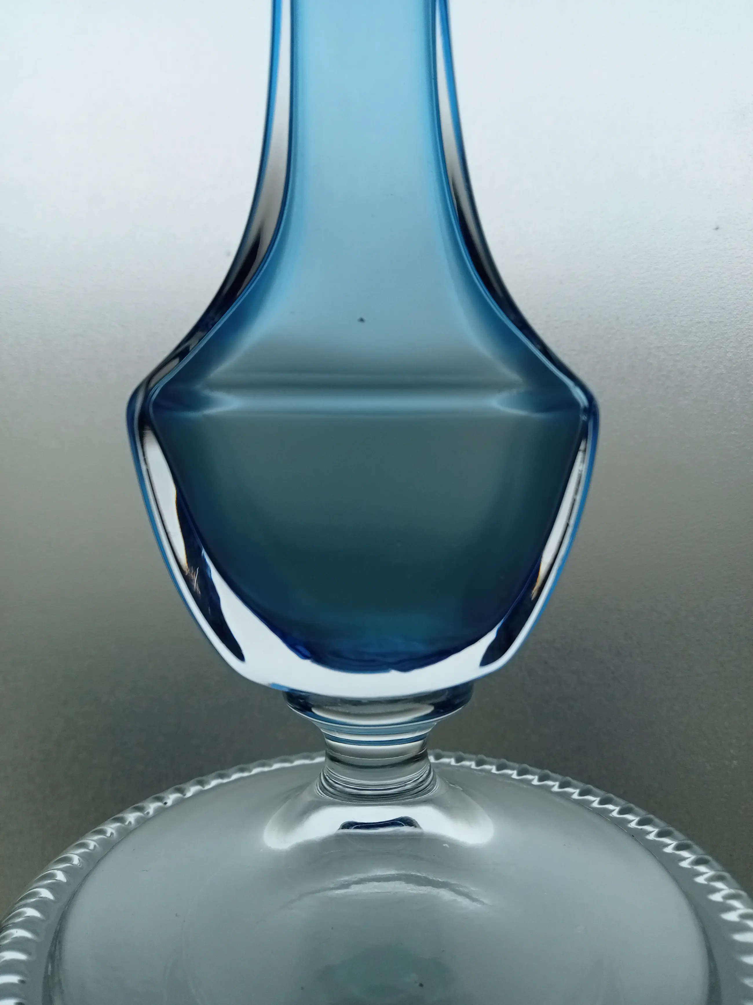 Prachtig ontworpen vaasje Val Saint Lambert jaren 80/90 helder en blauw kristal