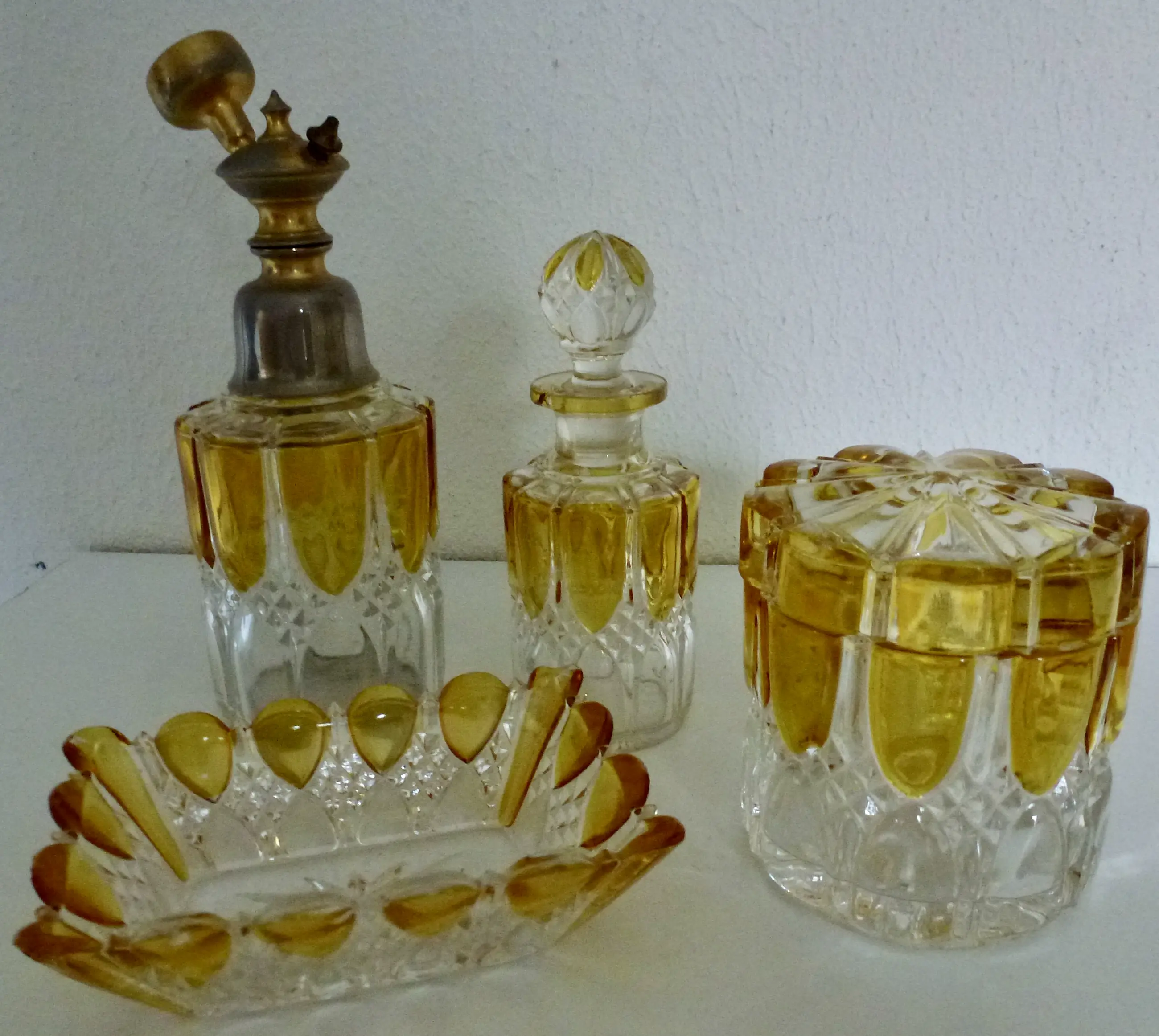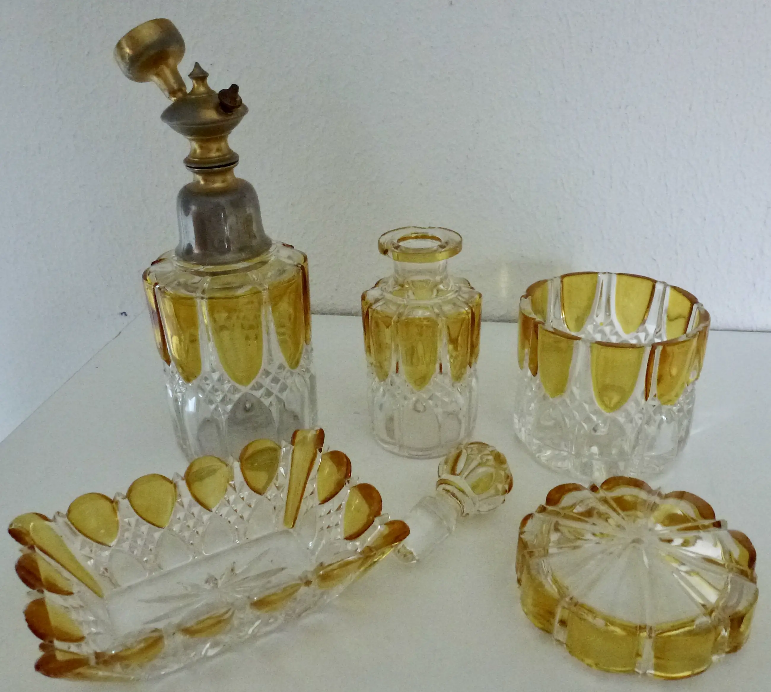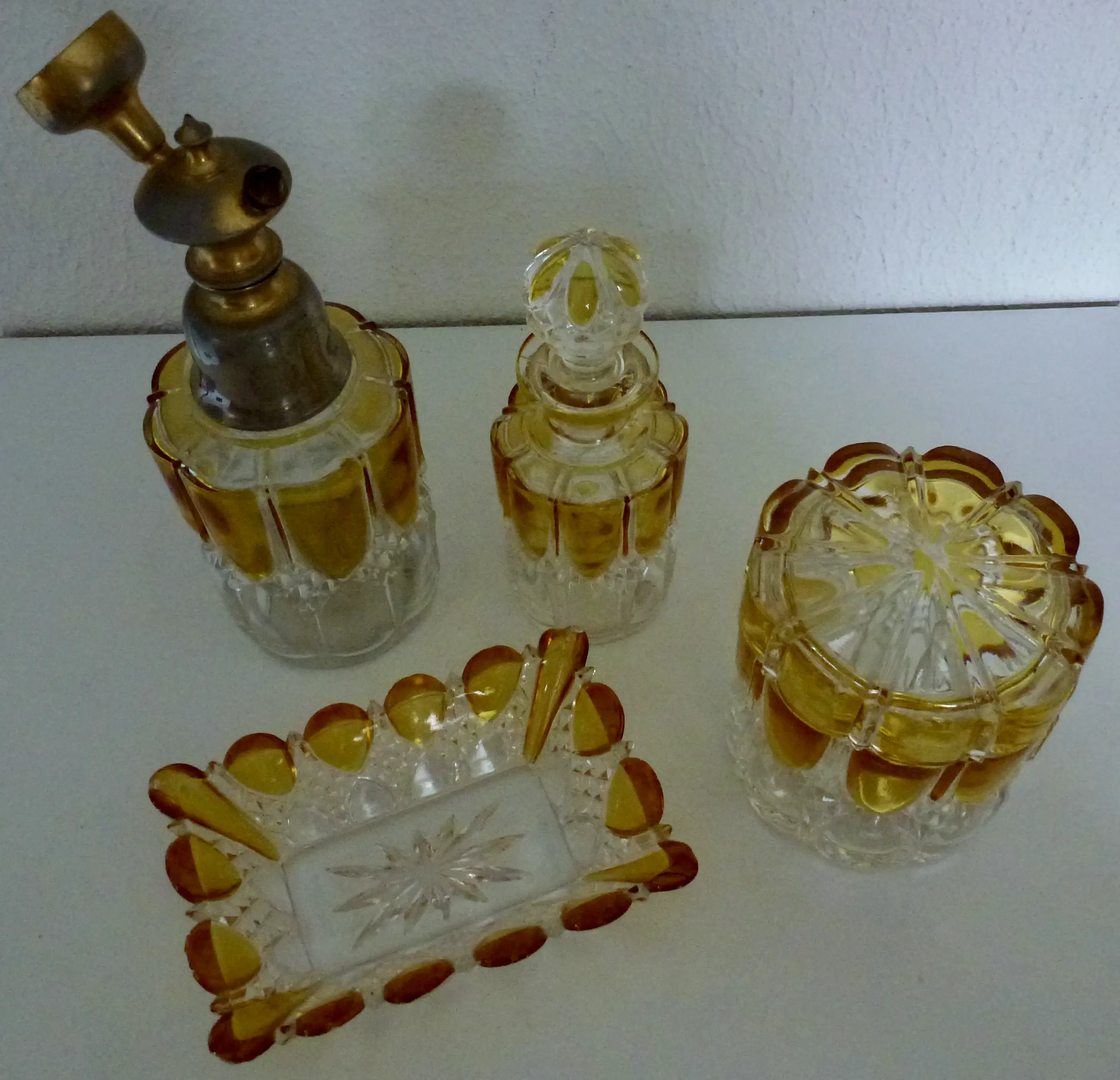 Een fraaie 4-delige Art Deco toiletset van Val Saint-Lambert