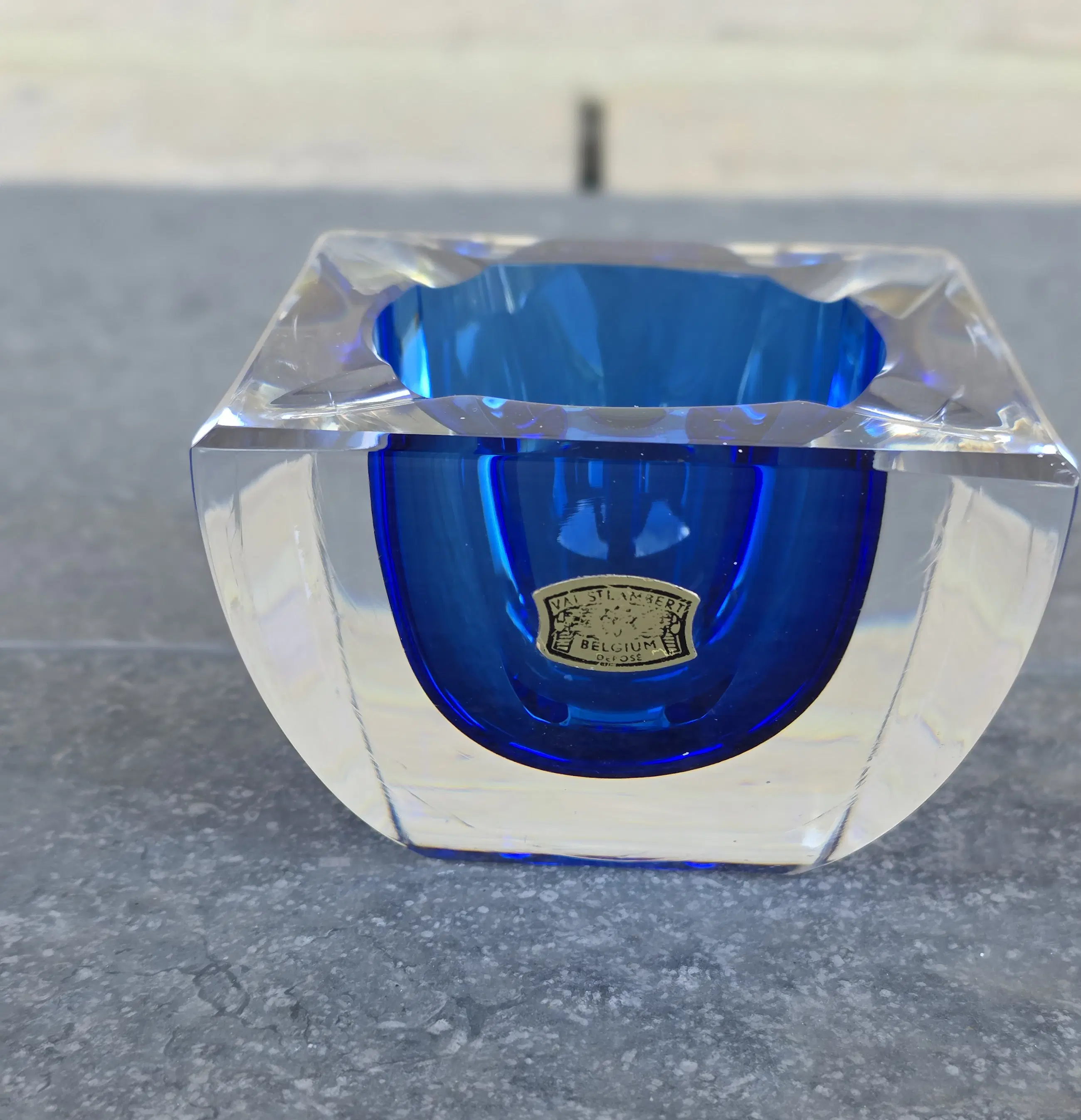 Deze prachtige vintage asbak van Val Saint lambert is vervaardigd uit helder en levendig kobaltblauw kristal. De asbak heeft een strakke, vierkante vorm met diepblauwe inzet.
