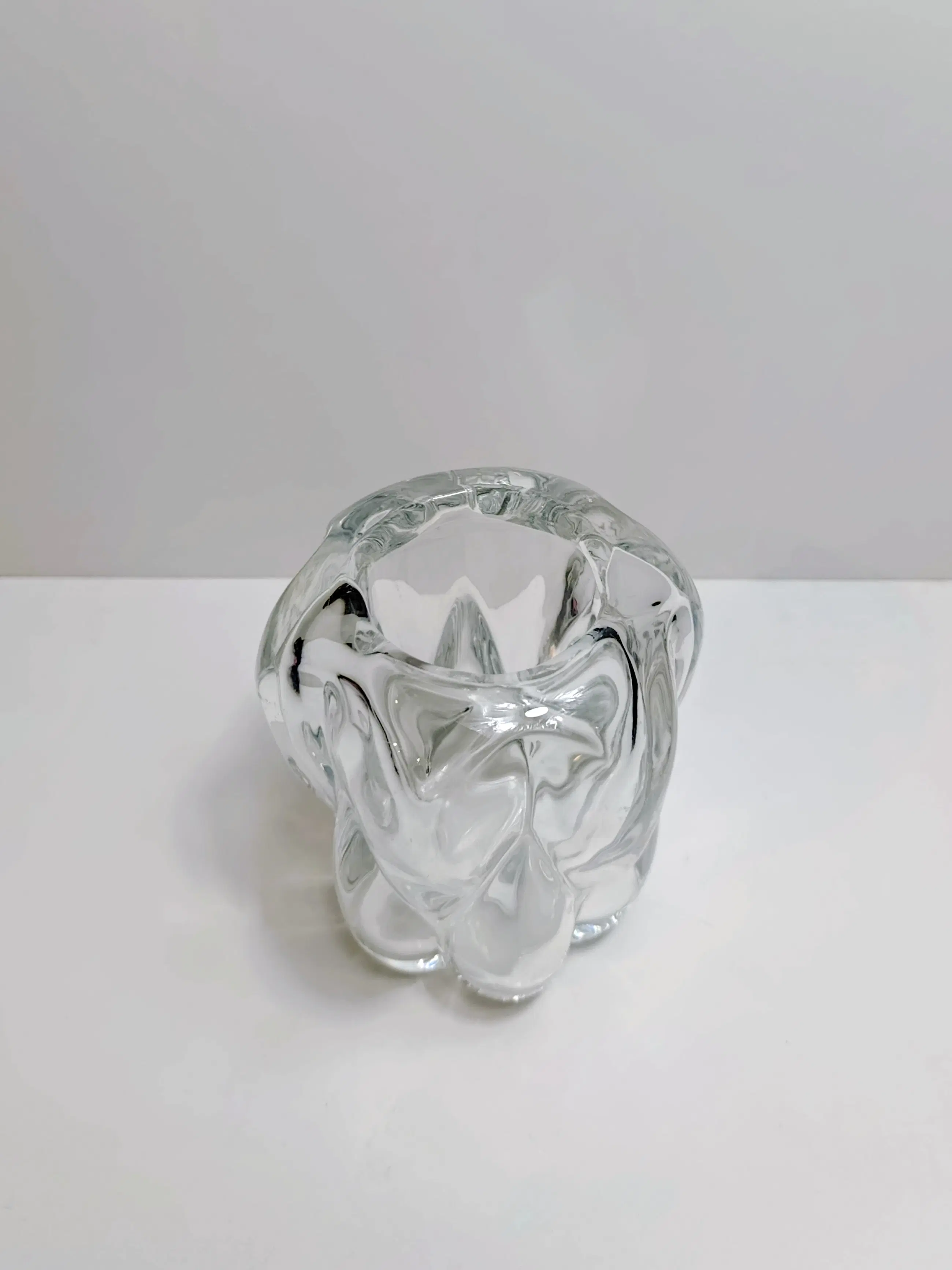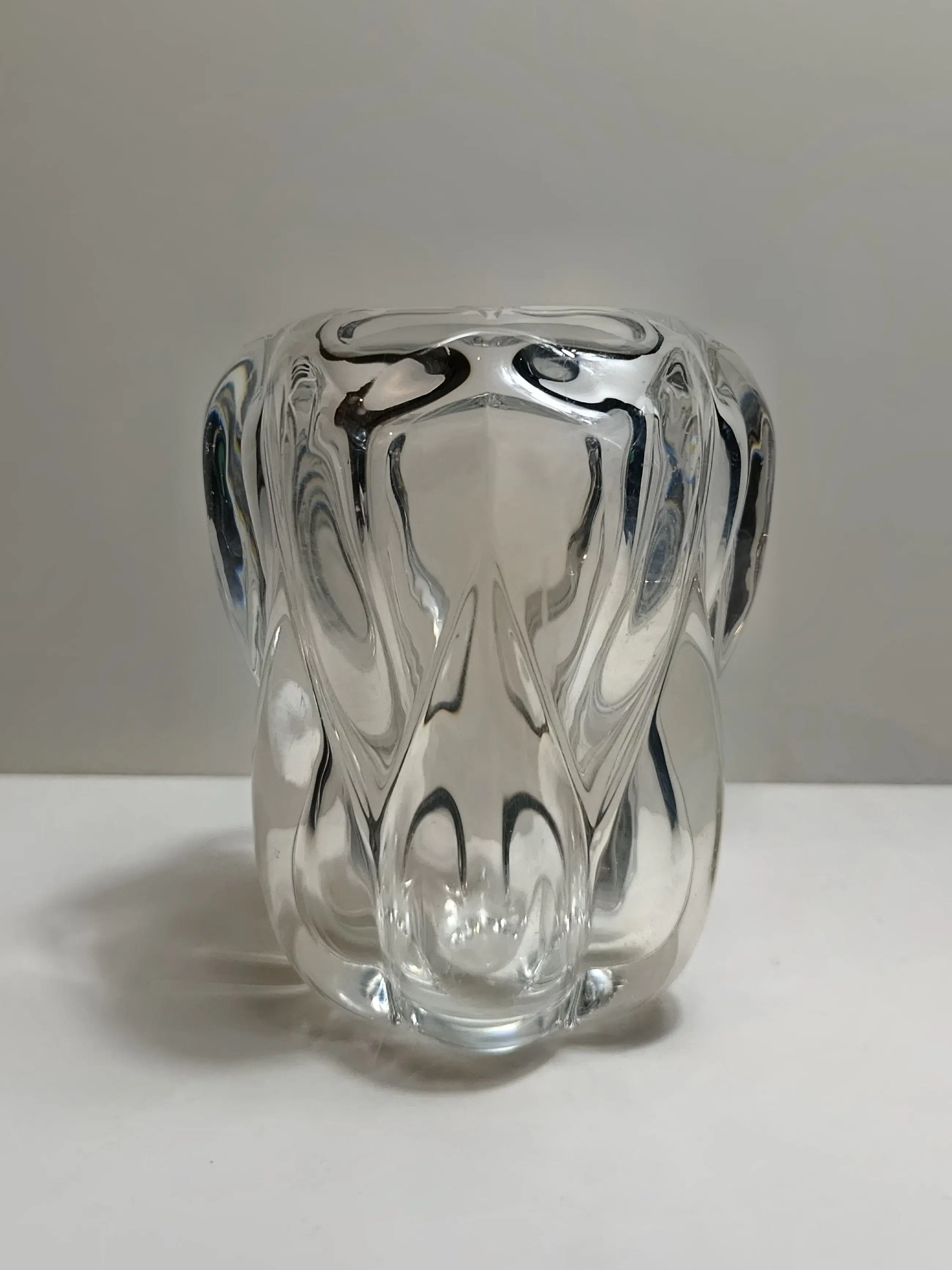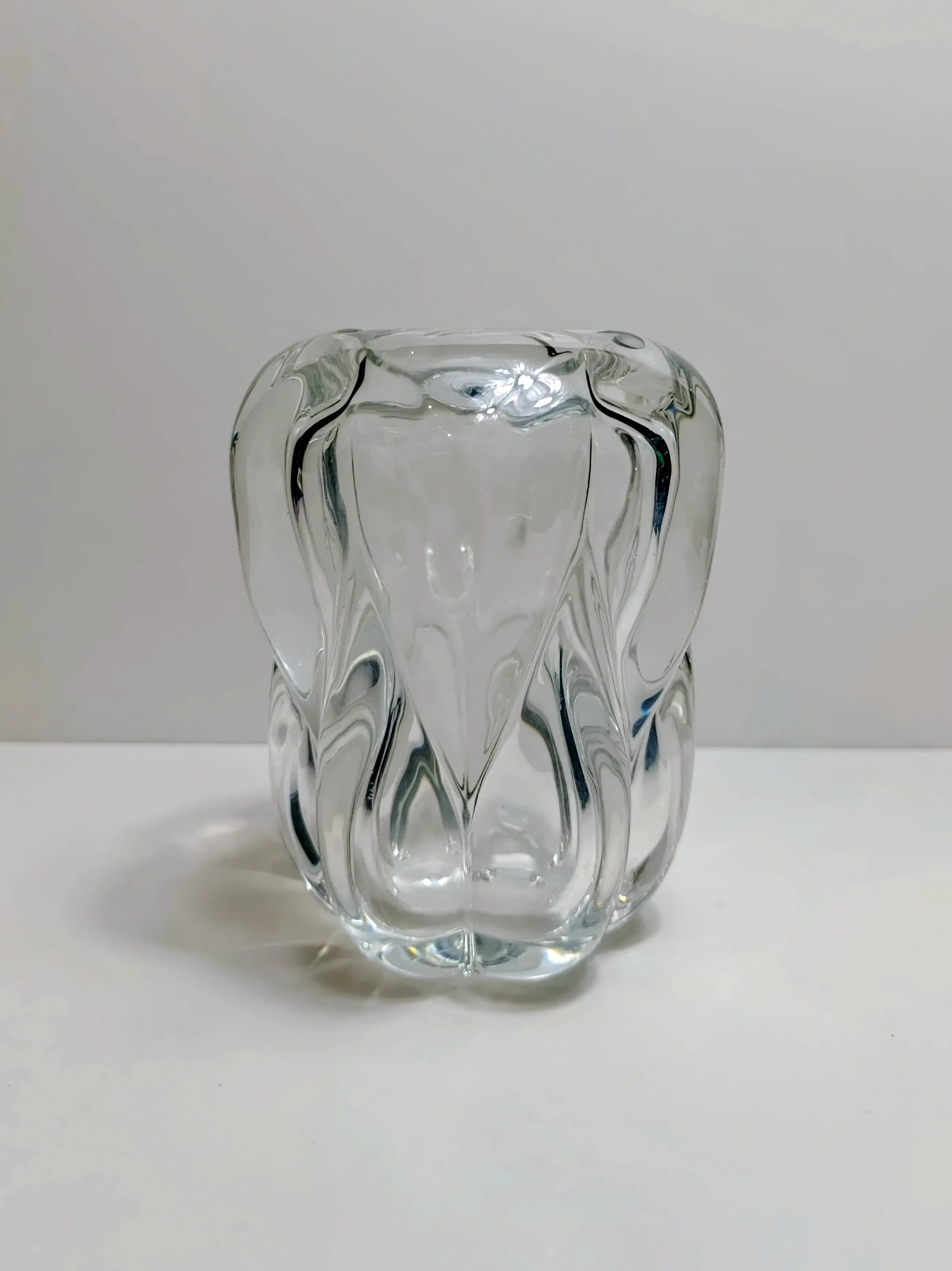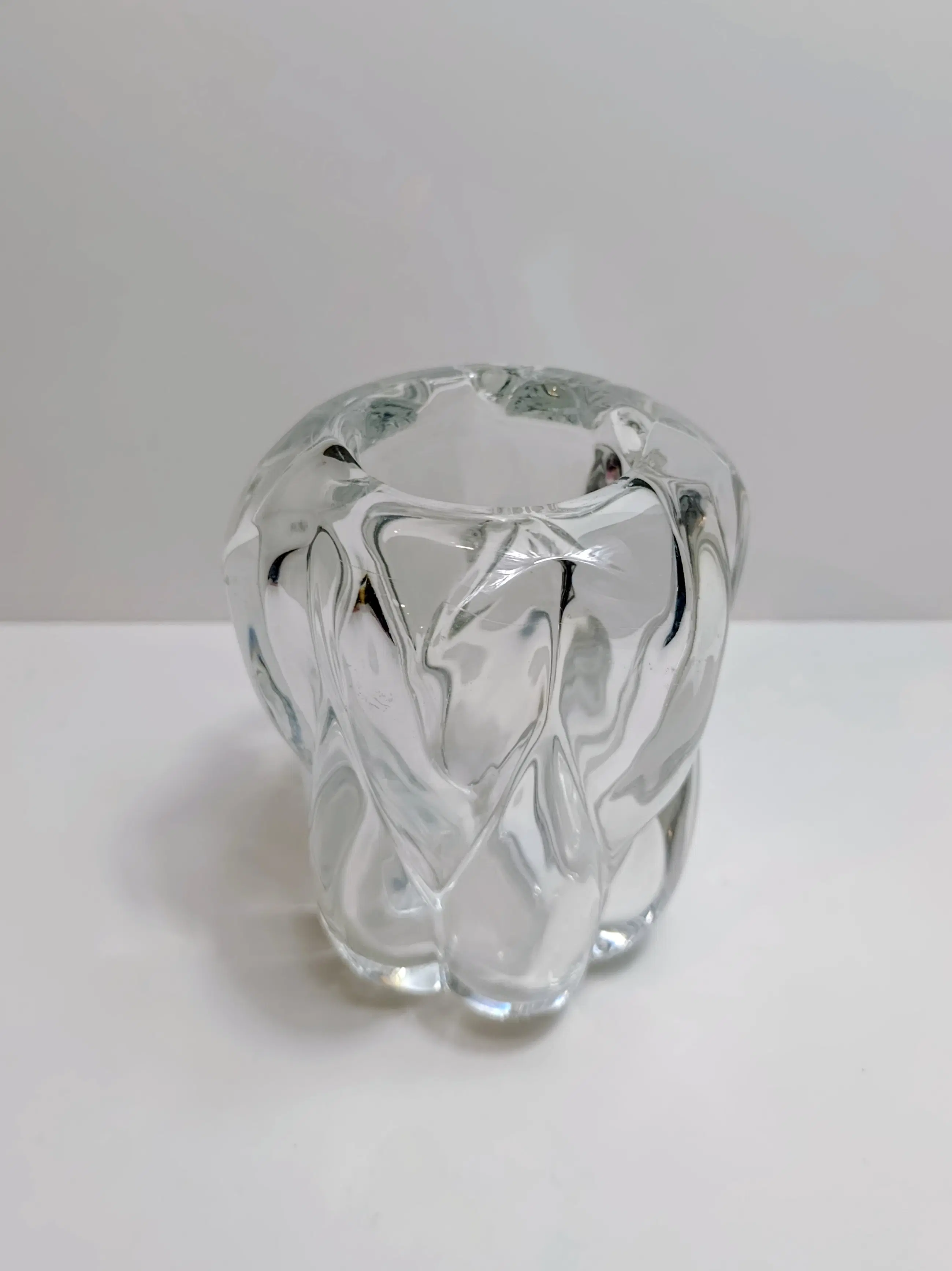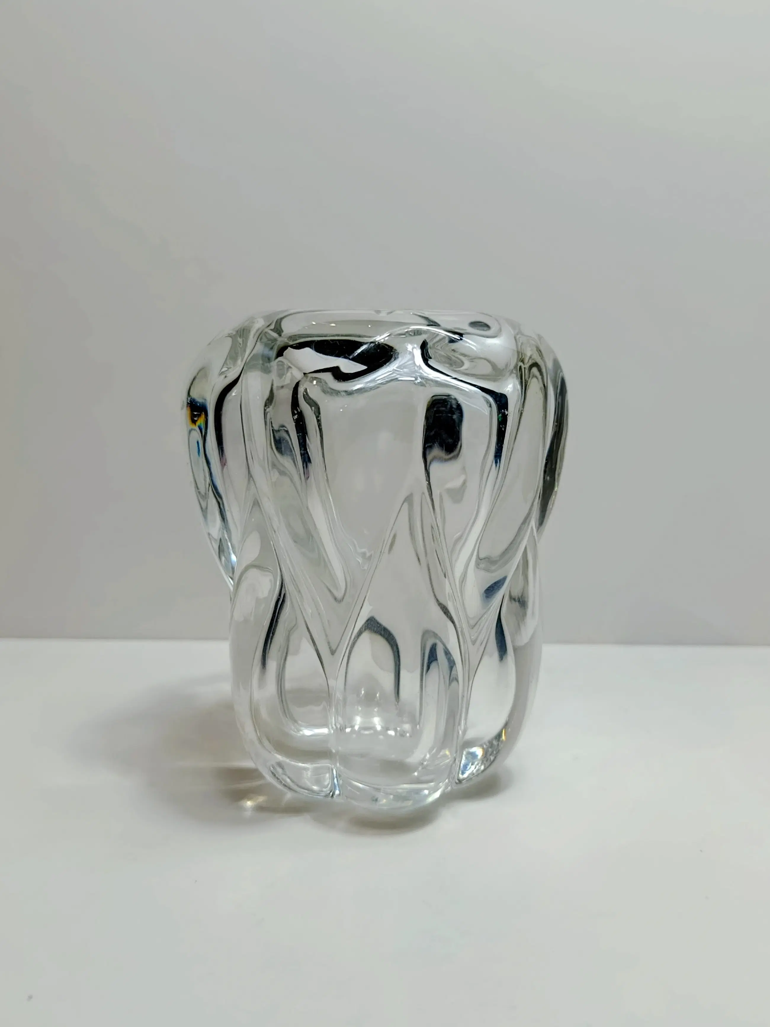 Deze iconische vaas is versierd met een dubbele, in elkaar verstrengelde, bolvormige traan. De vaas is circa 14 cm hoog en heeft een diameter van 12 cm bij de hals.