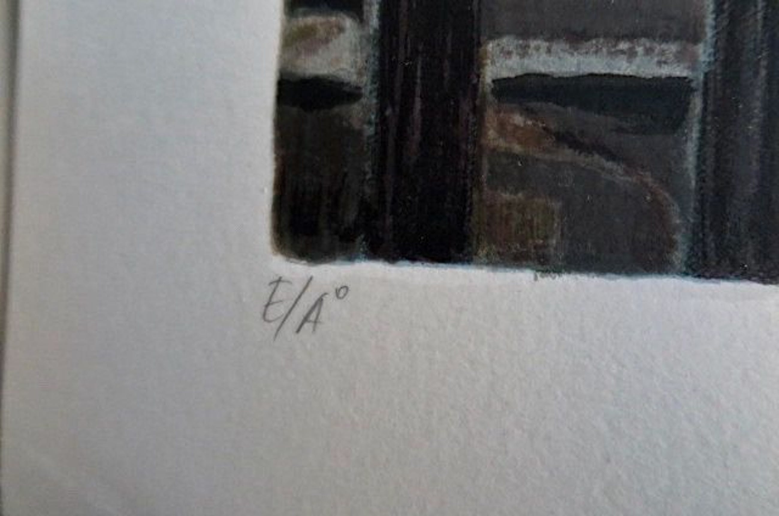 Afmetingen: ca. 60 x 73 cm (beeld) en 80 x 90 cm (blad)