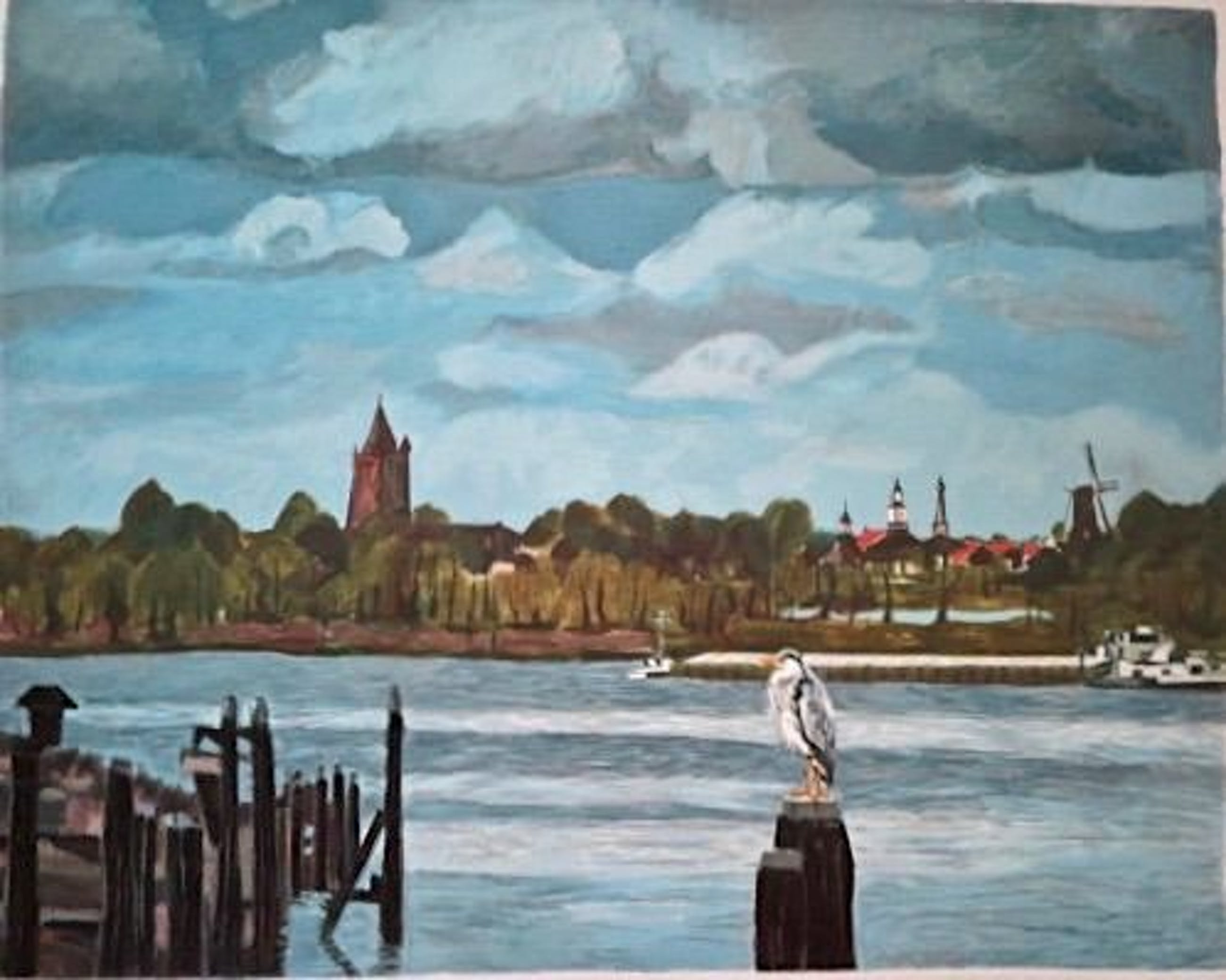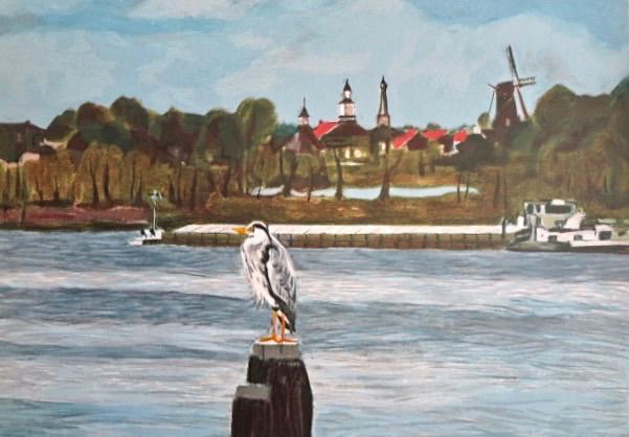 Bijzonder Rivierlandschap met grote Vogel en fraaie wolkenlucht