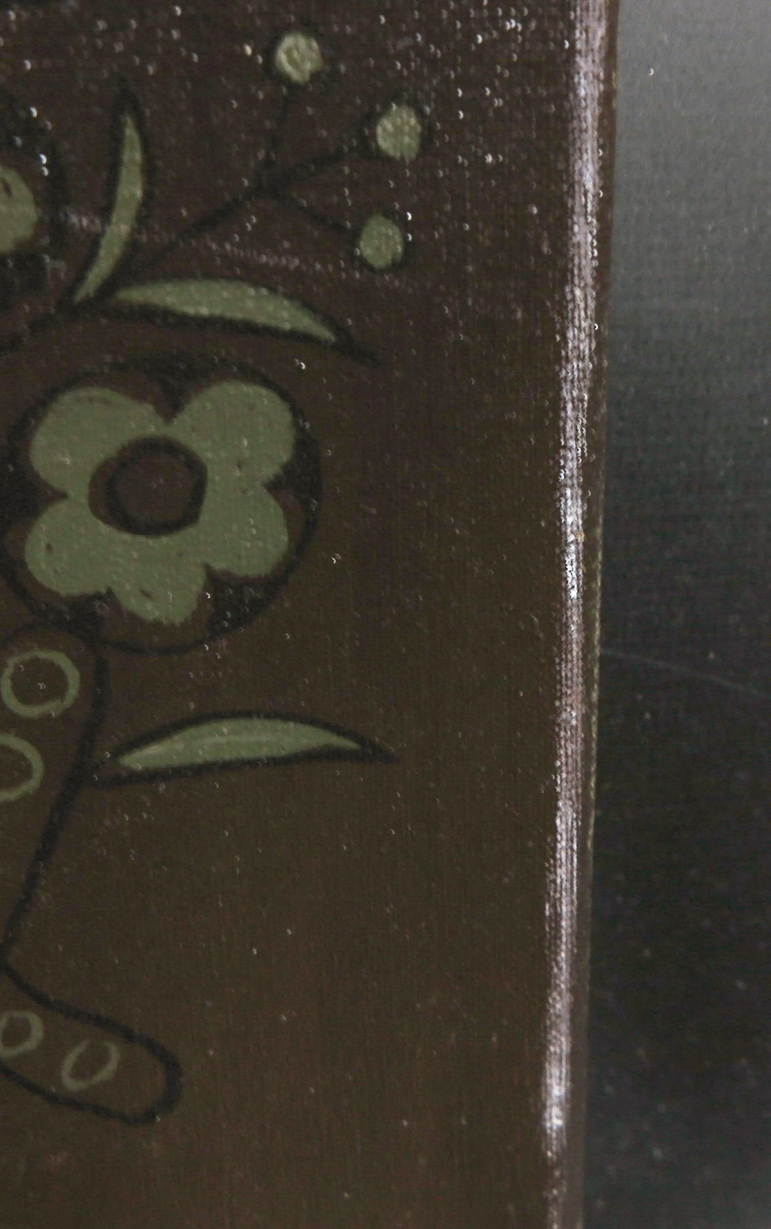 | Het werk heeft een aantal lichte oppervlaktekrasjes en wat slijtagesporen aan de randen van het spieraam, met name aan de rechterzijde van het doek. Zie de detailfoto's voor een indruk van de huidige staat van het werk. | |