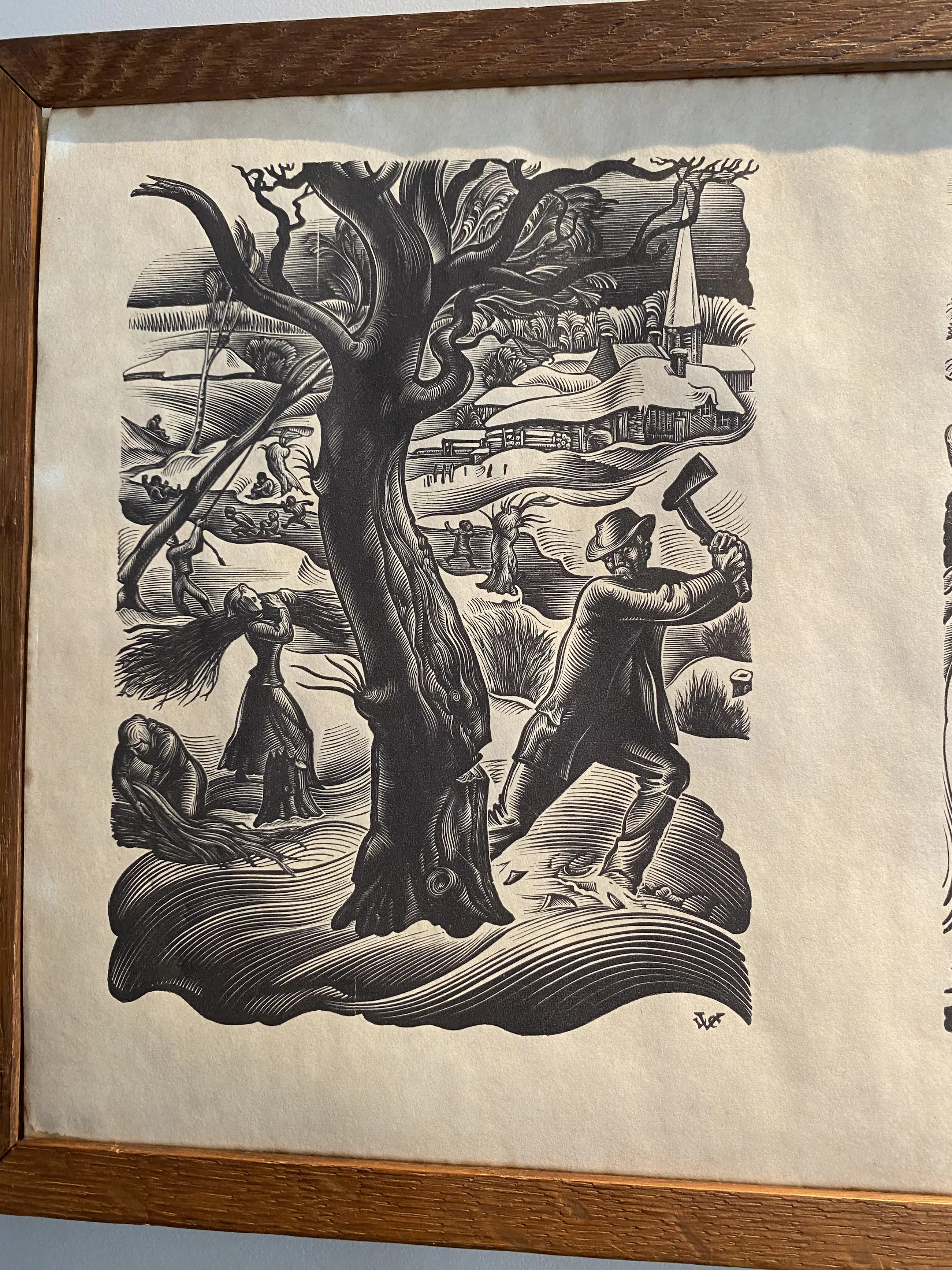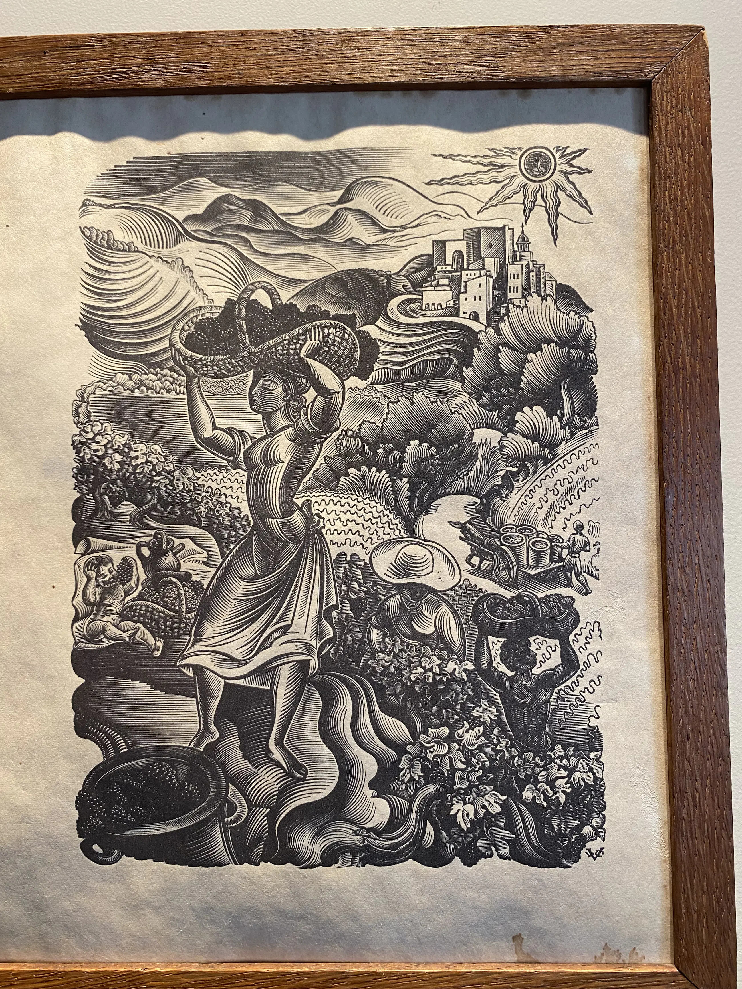 Het werk is typisch voor Le Campion: sterk contrast, vloeiende lijnen en oog voor detail. De vier prenten zijn samen ingelijst in een houten lijst. Een mooi voorbeeld van Le Campions vakmanschap in de houtsnede-techniek. Het werk is druk gesigneerd.