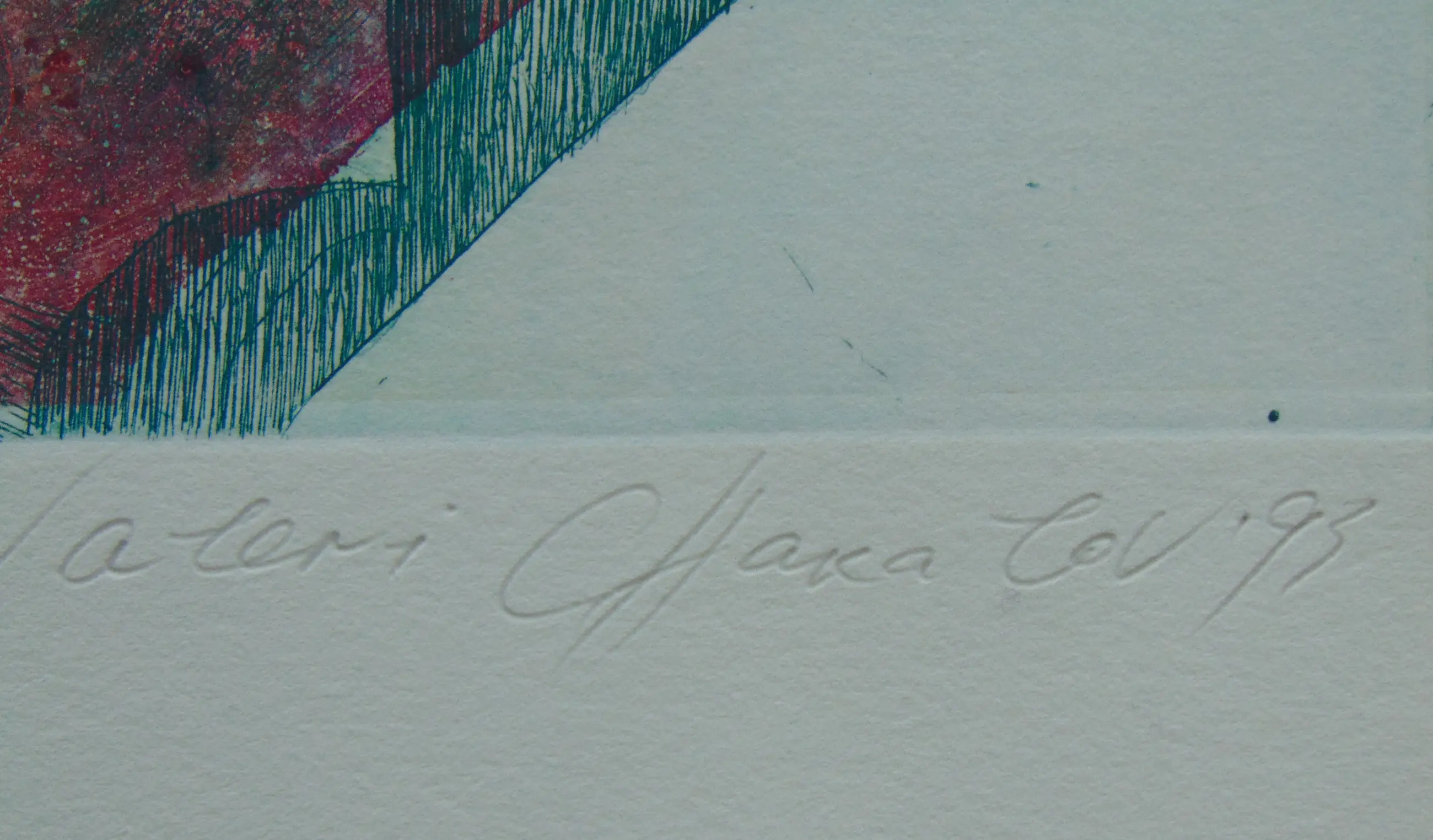 Deze ets/aquatint is rechtsonder gesigneerd. Het werk is ingelijst en zit achter glas.
