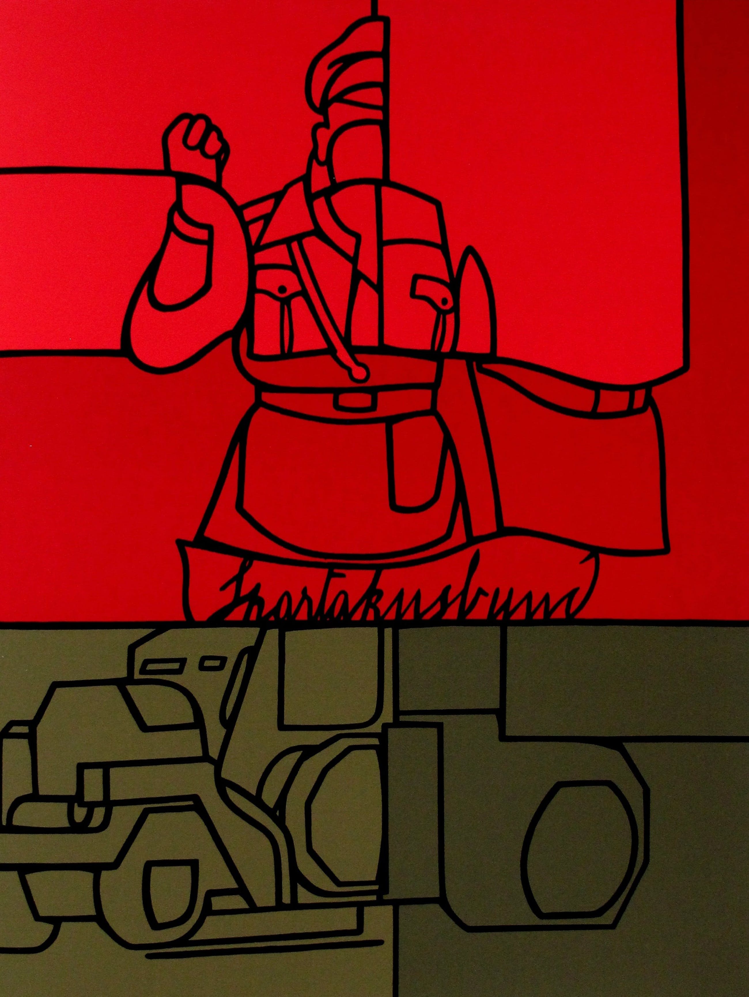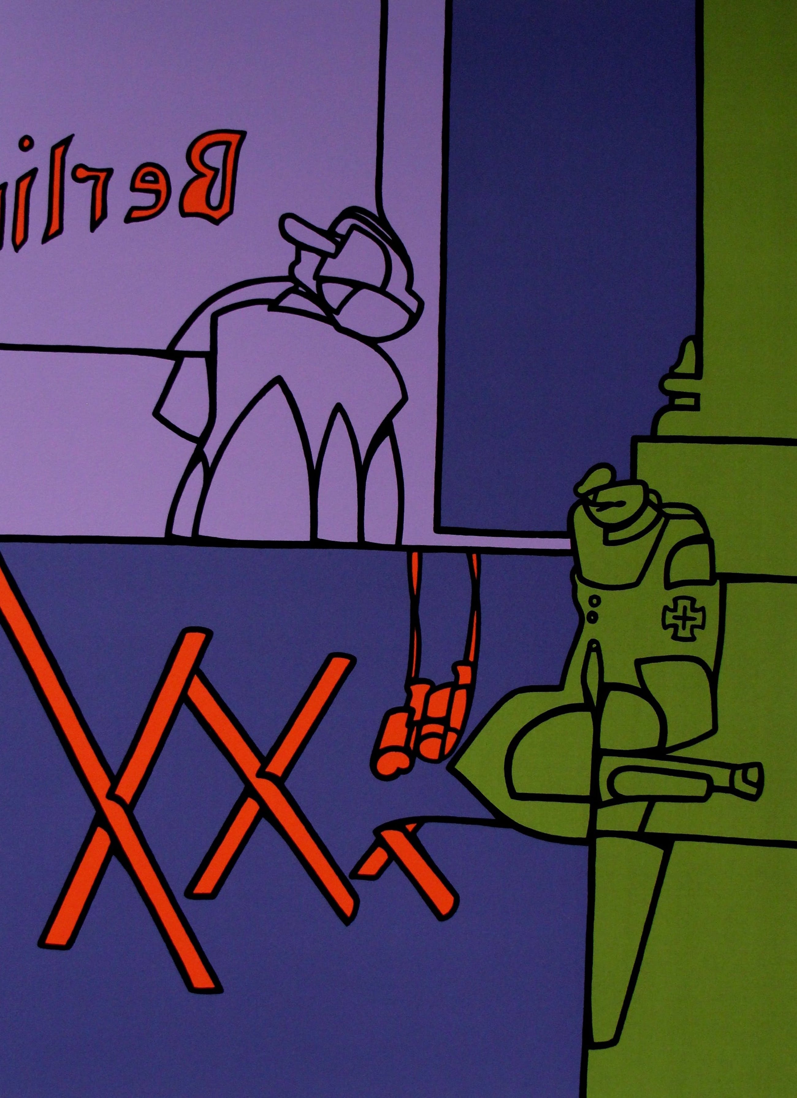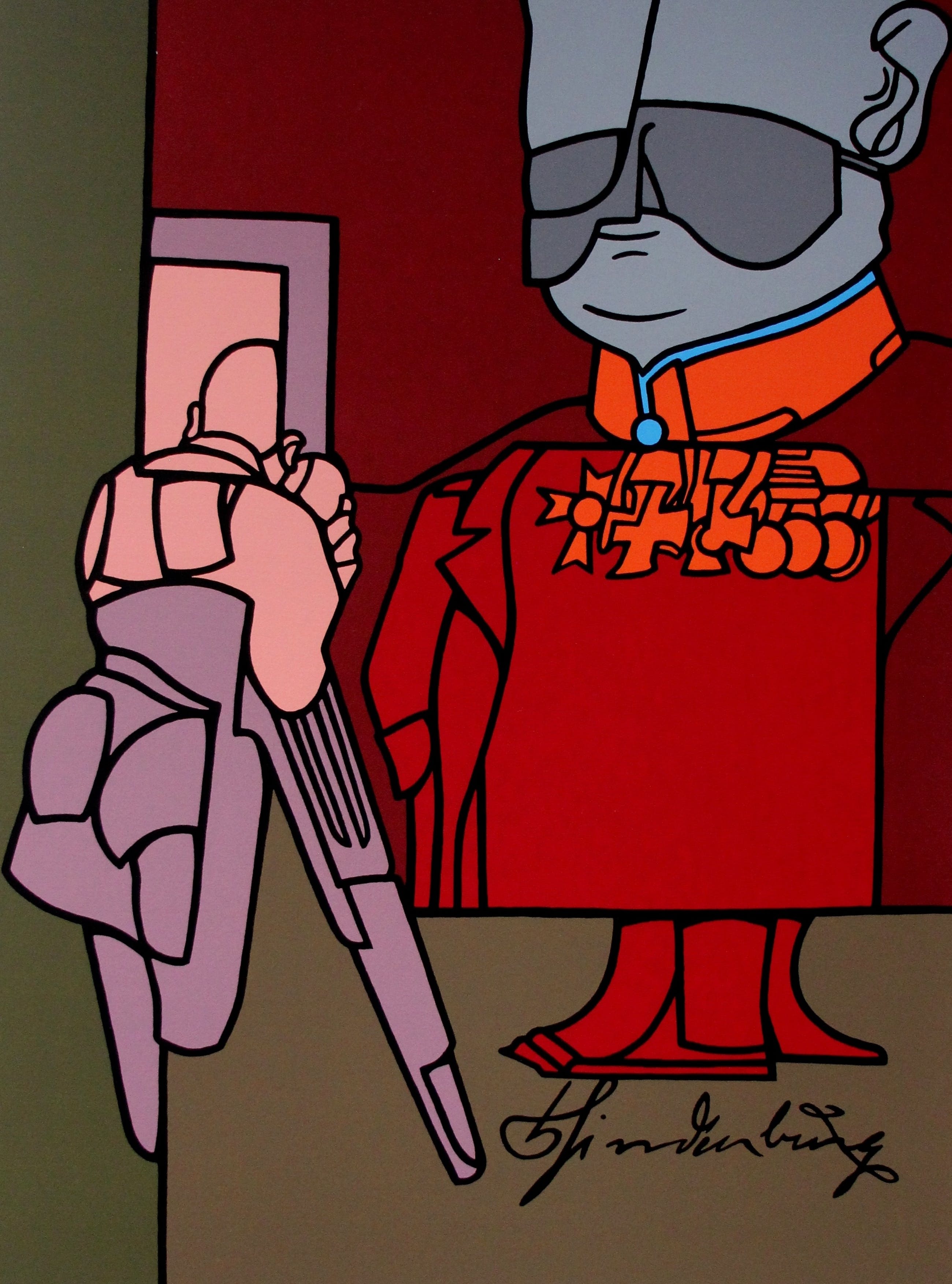 Zijn meest karakteristieke werk is in de stijl van stripverhalen, met duidelijke omlijning en kleurvlakken.
