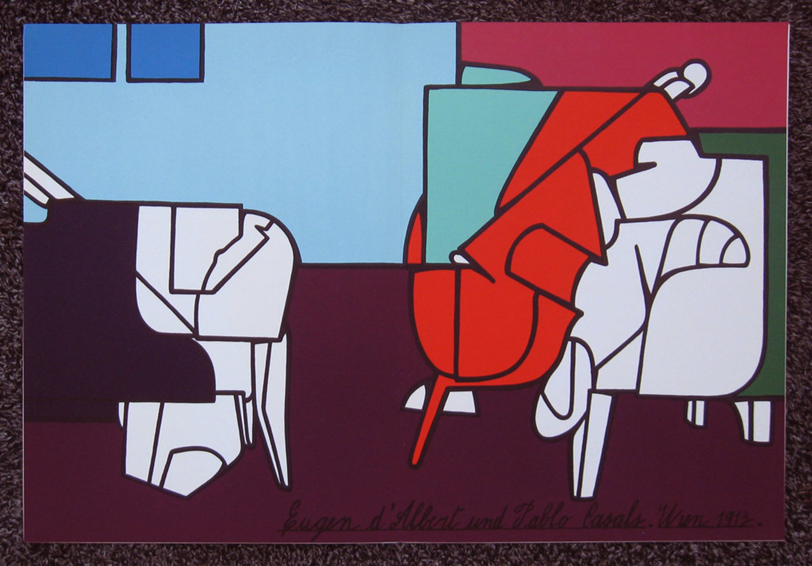 Lithografie uit DLM 188. Verschenen naar aanleiding van de eerste expositie van Valerio Adami bij galerie Maeght in 1970. Afm.: 56 x 38 cm (dubbele pagina). Verzending NL 10,- euro; Belgie 15,- euro