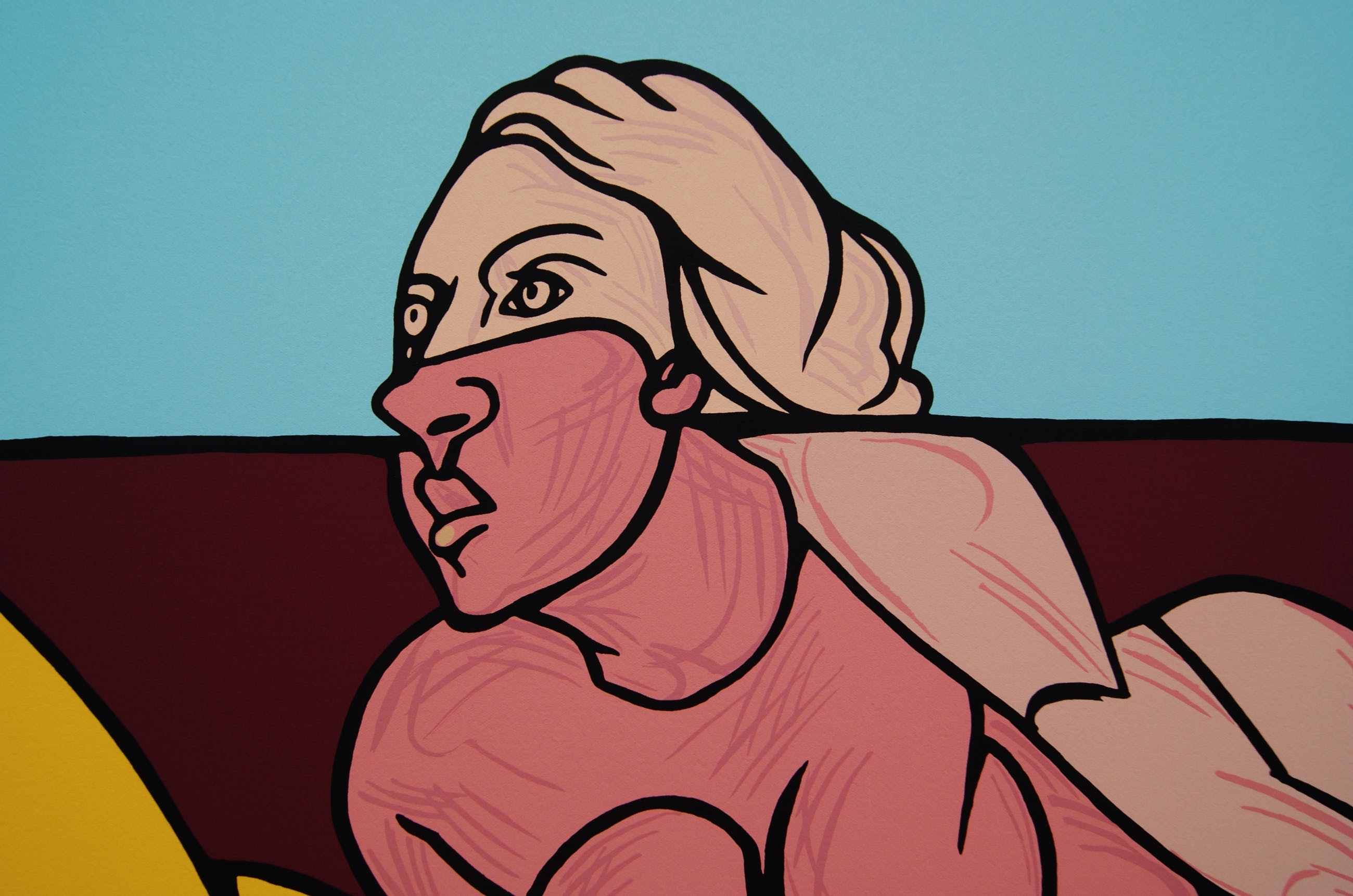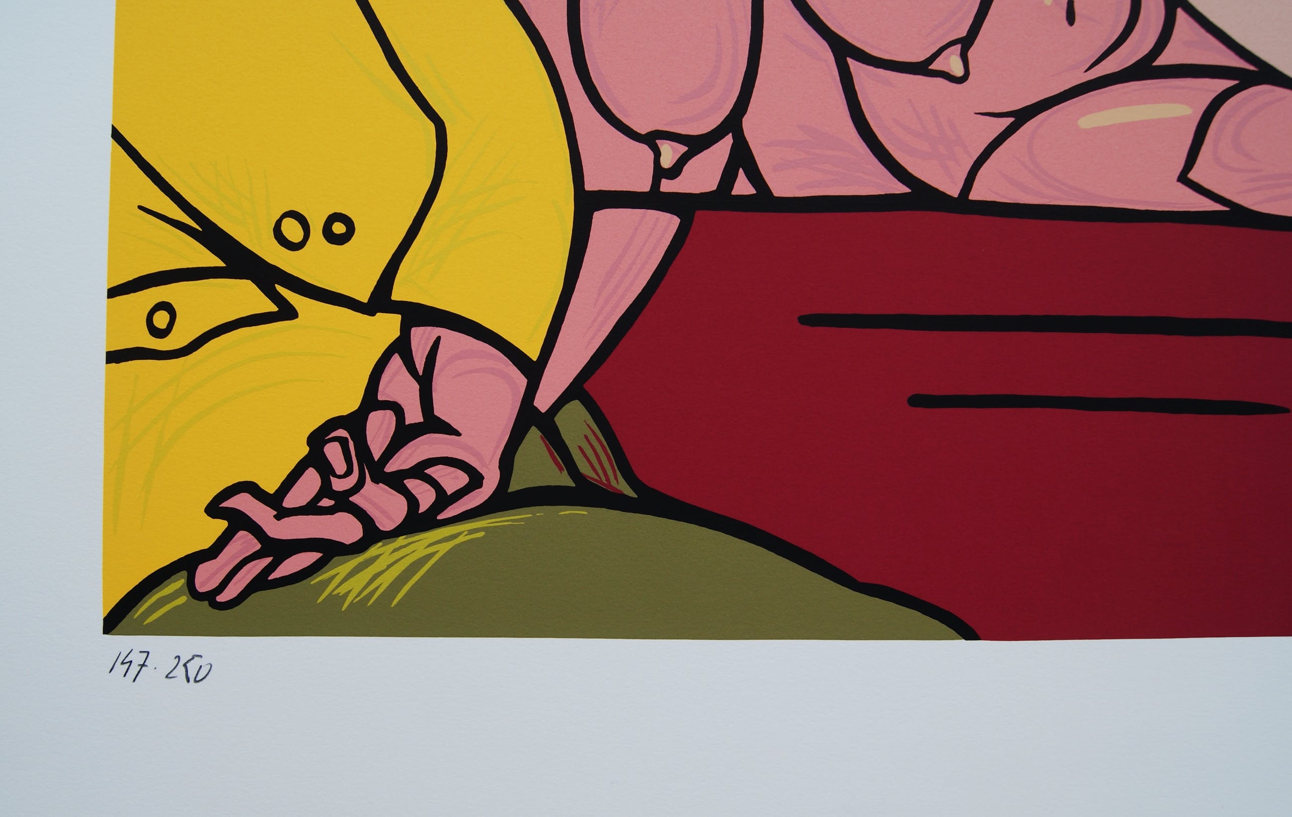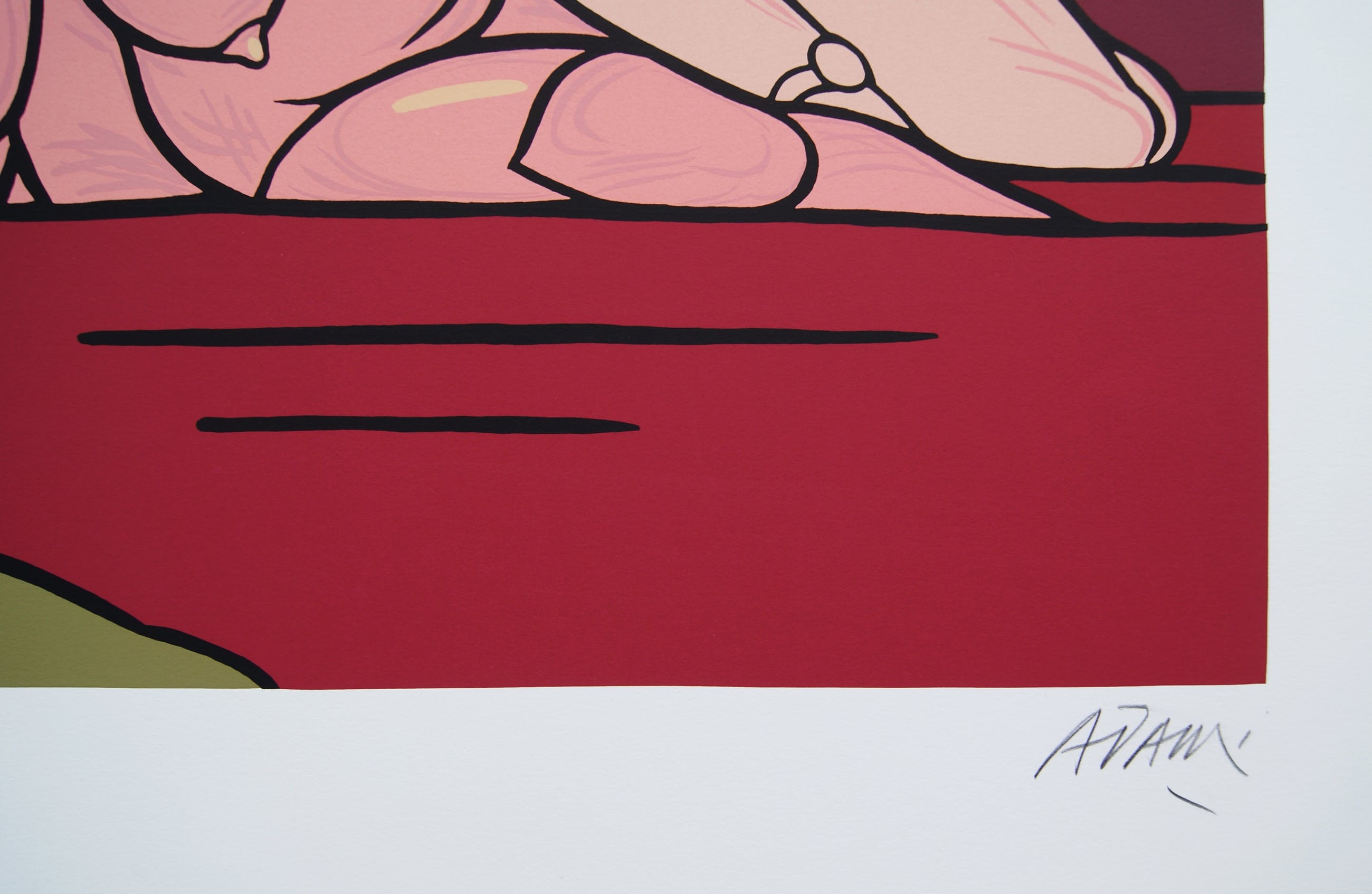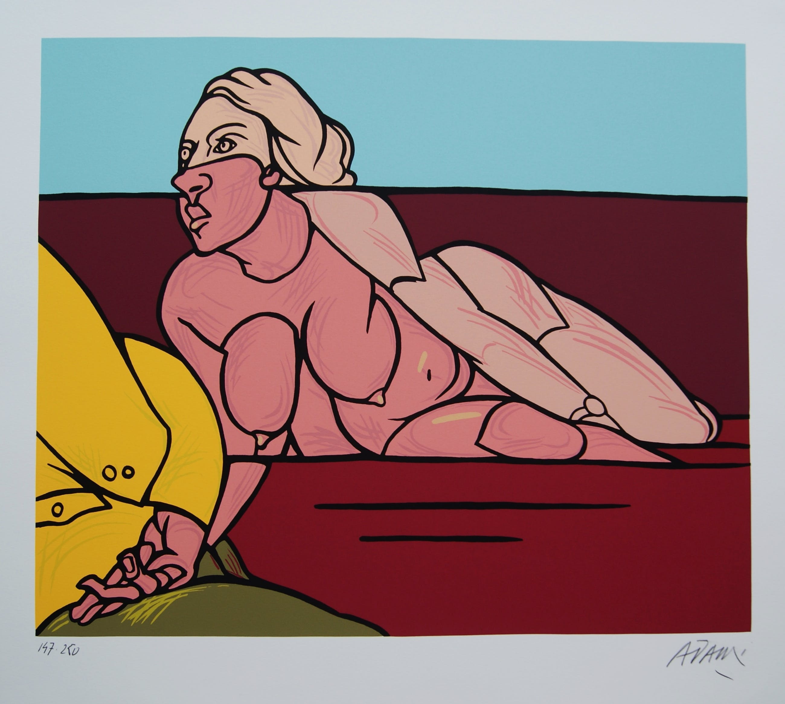 Een zeer fraaie zeefdruk van Adami uit 1994. Het werk is gesigneerd en genummerd en in zeer goede conditie. Afmetingen 63 x 57 cm.