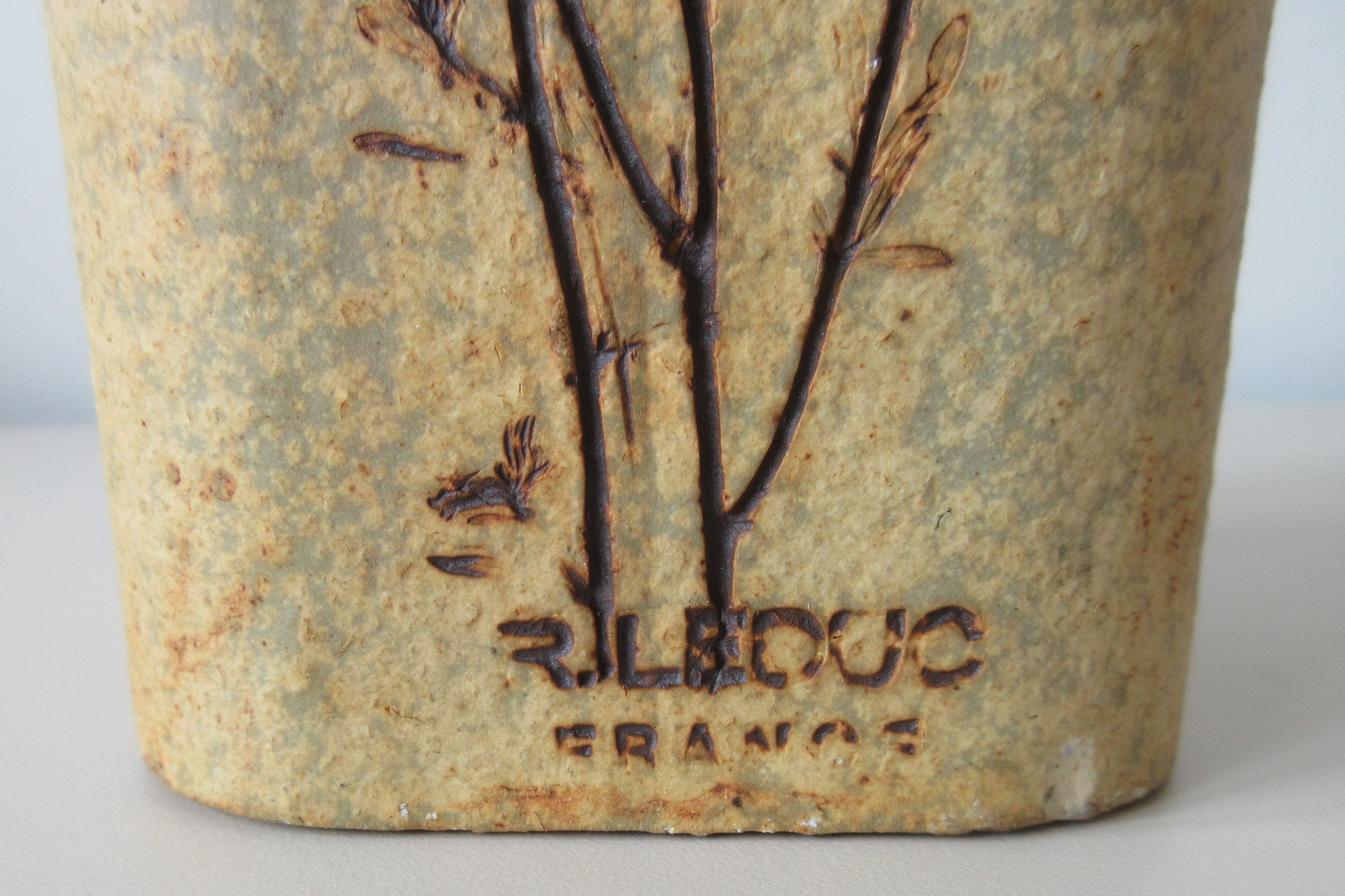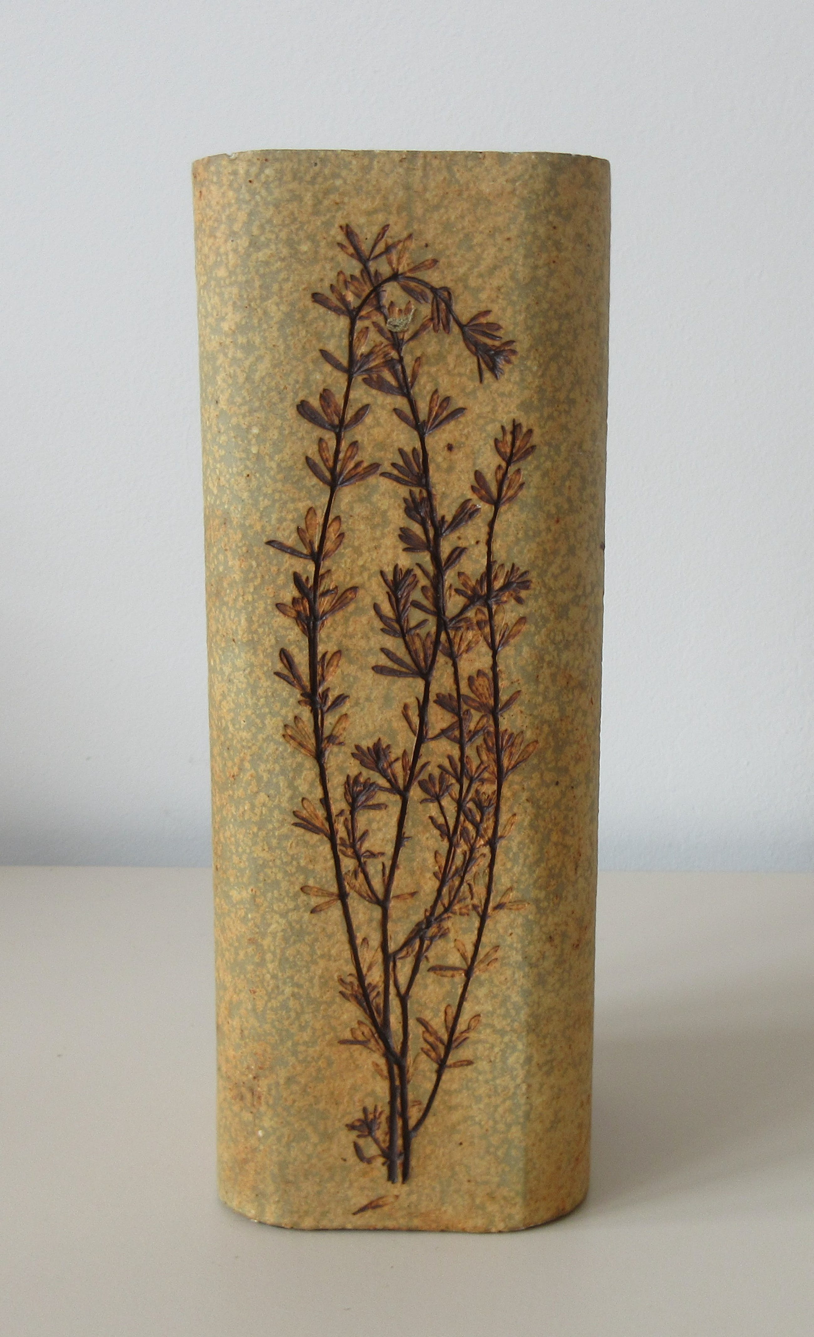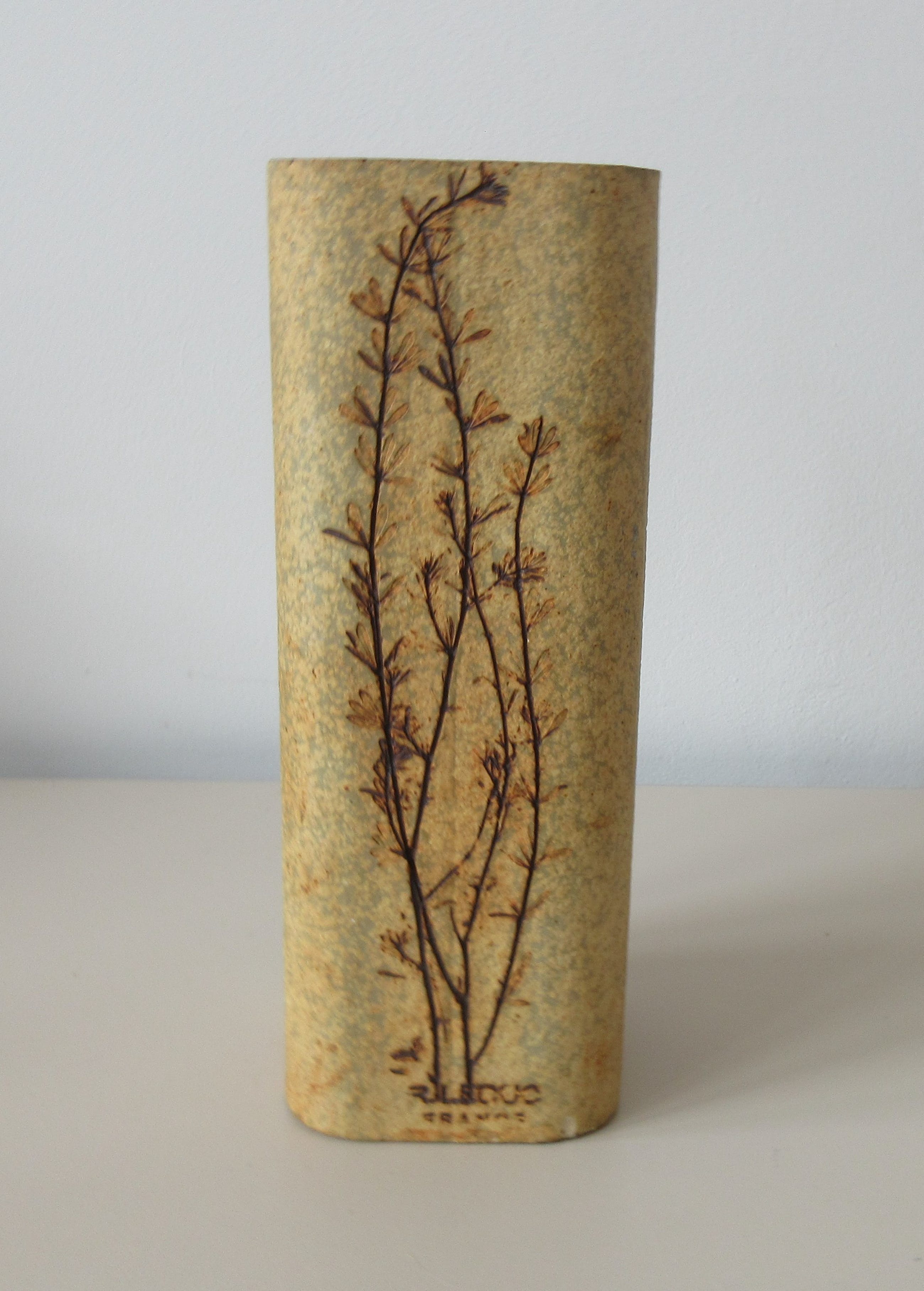 Vierkante gres aardewerken Herbier vaas - Raymonde Leduc. Handgemaakt in eigen atelier in Vallauris Zuid-Frankrijk.