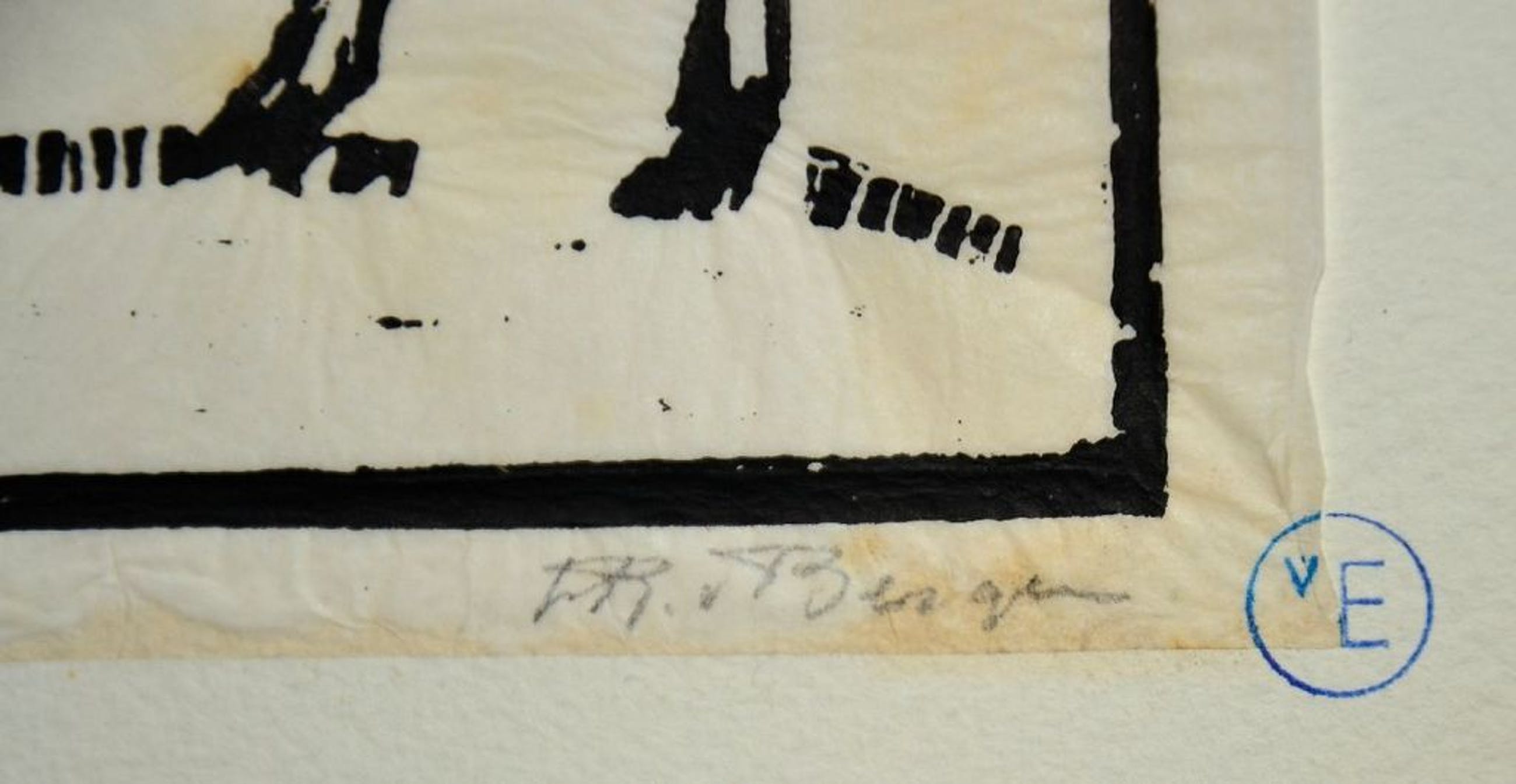 Lino / Houtsnede op Japans papier gesigneerd met Van Bergen? Deze kunstenaar is onbekend bij mij.