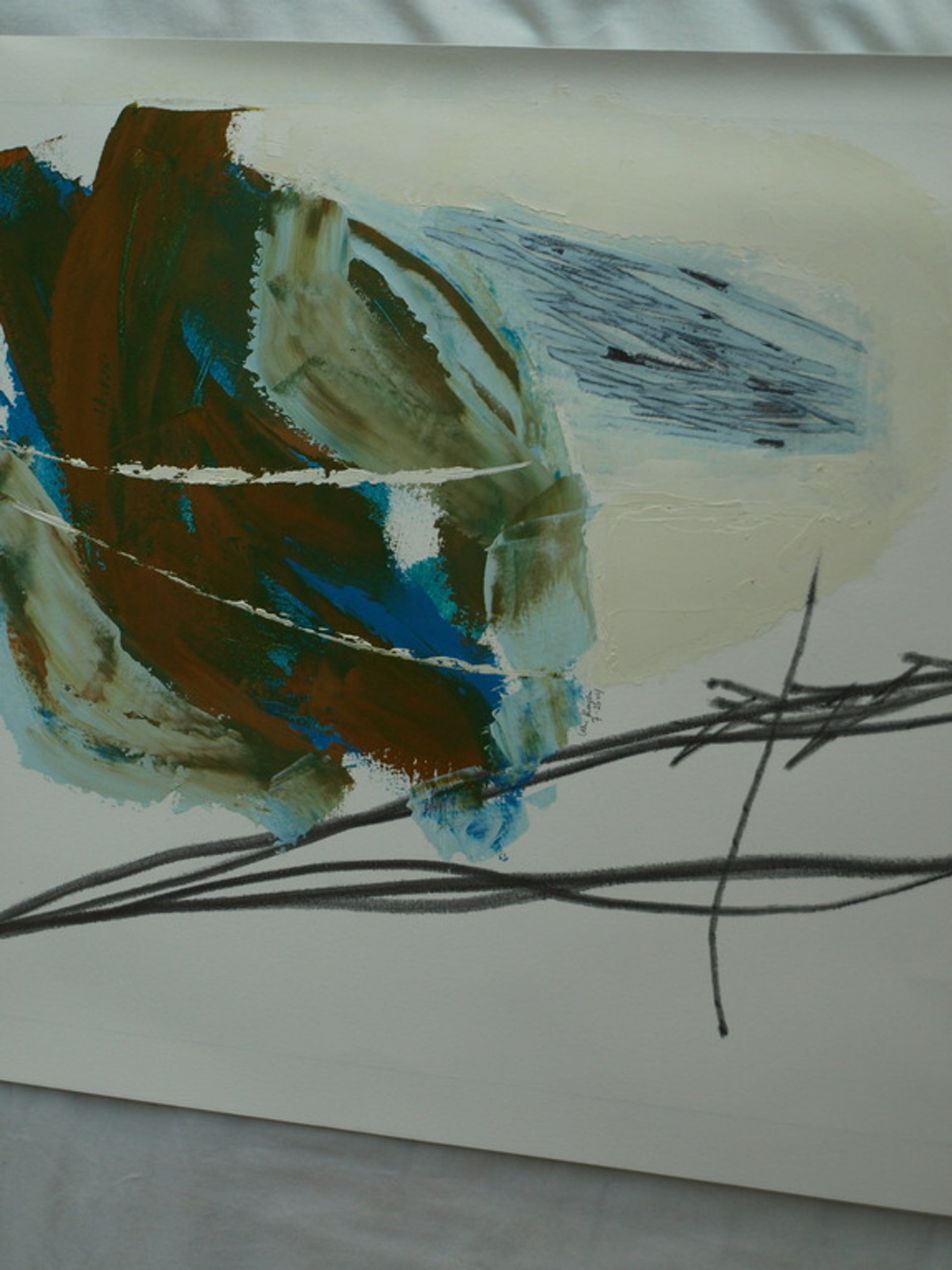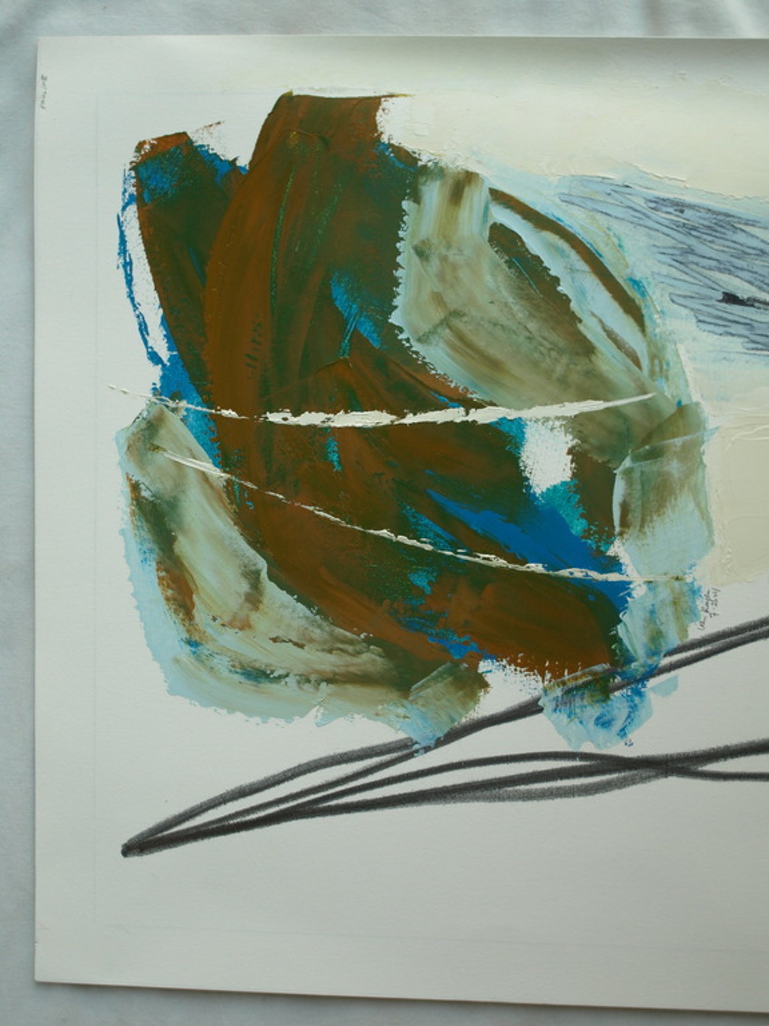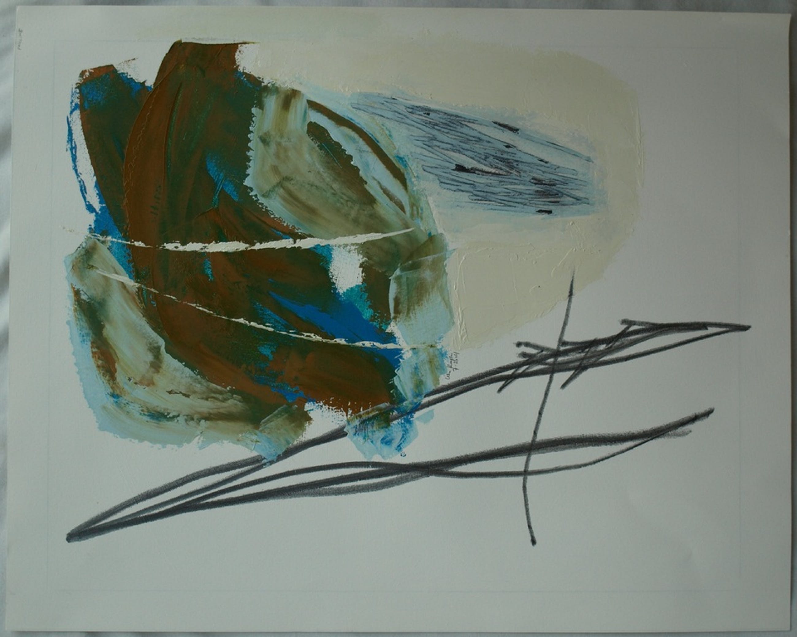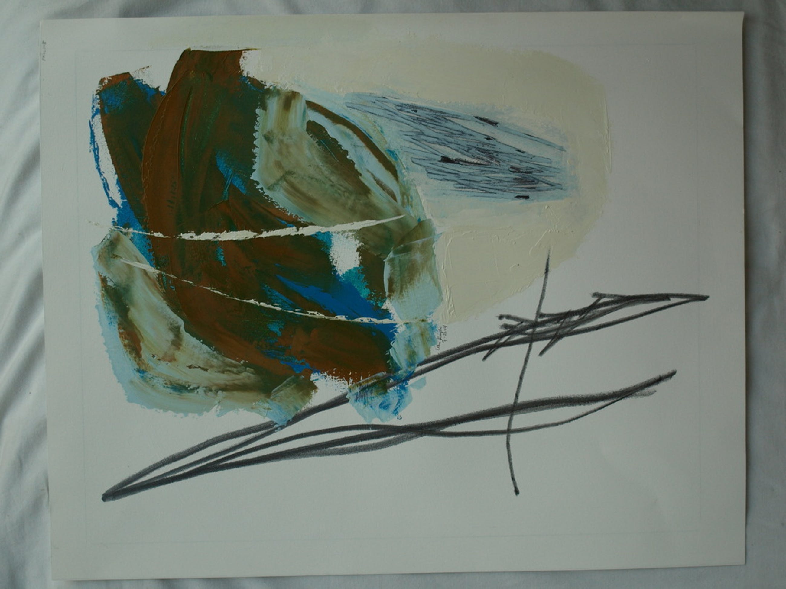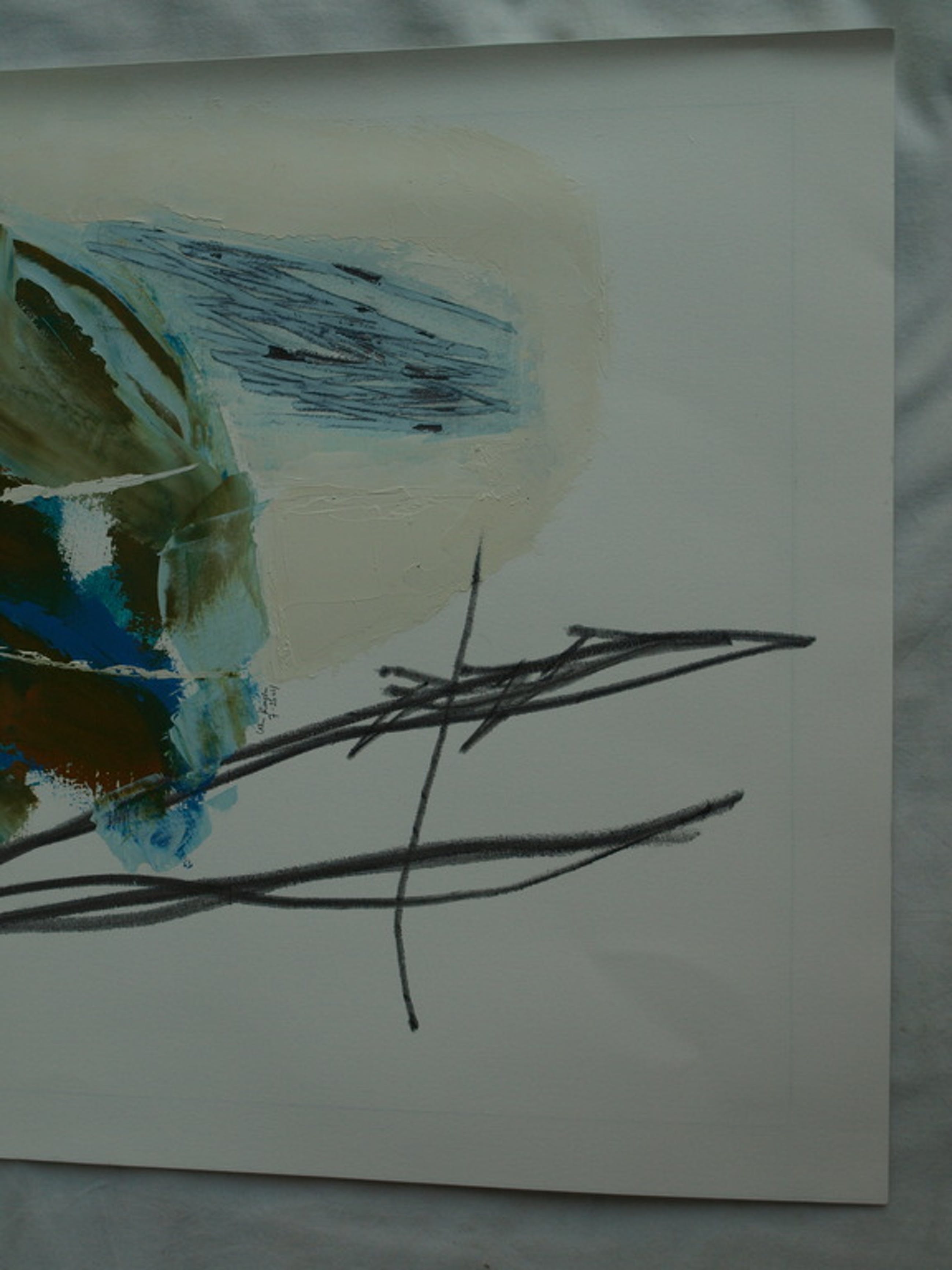 -Gemengde techniek op papier. Een combinatie van olieverf en pastel.
