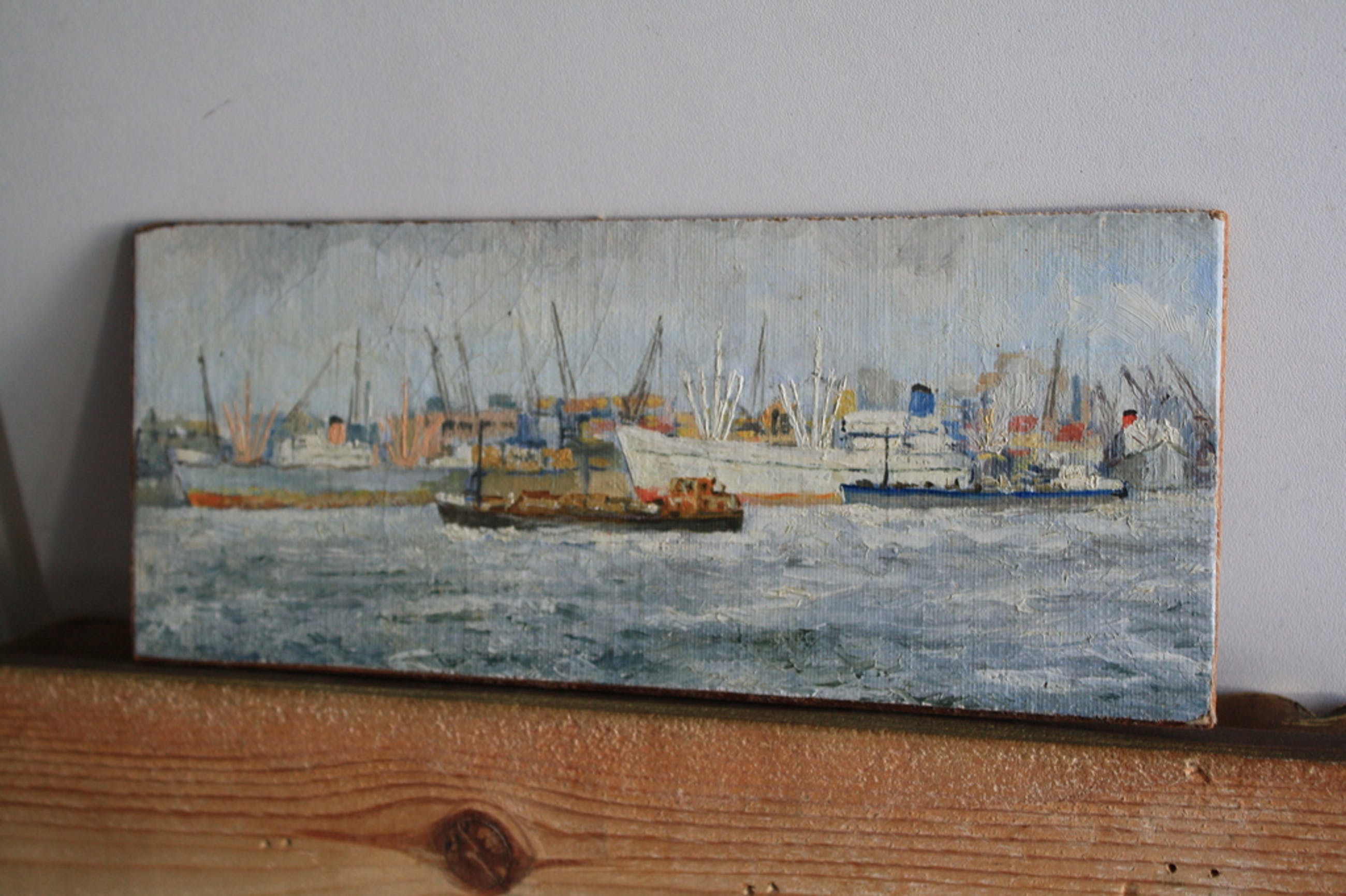 olieverf op linnen geplakt op board in de maat 9.5 x 23.5