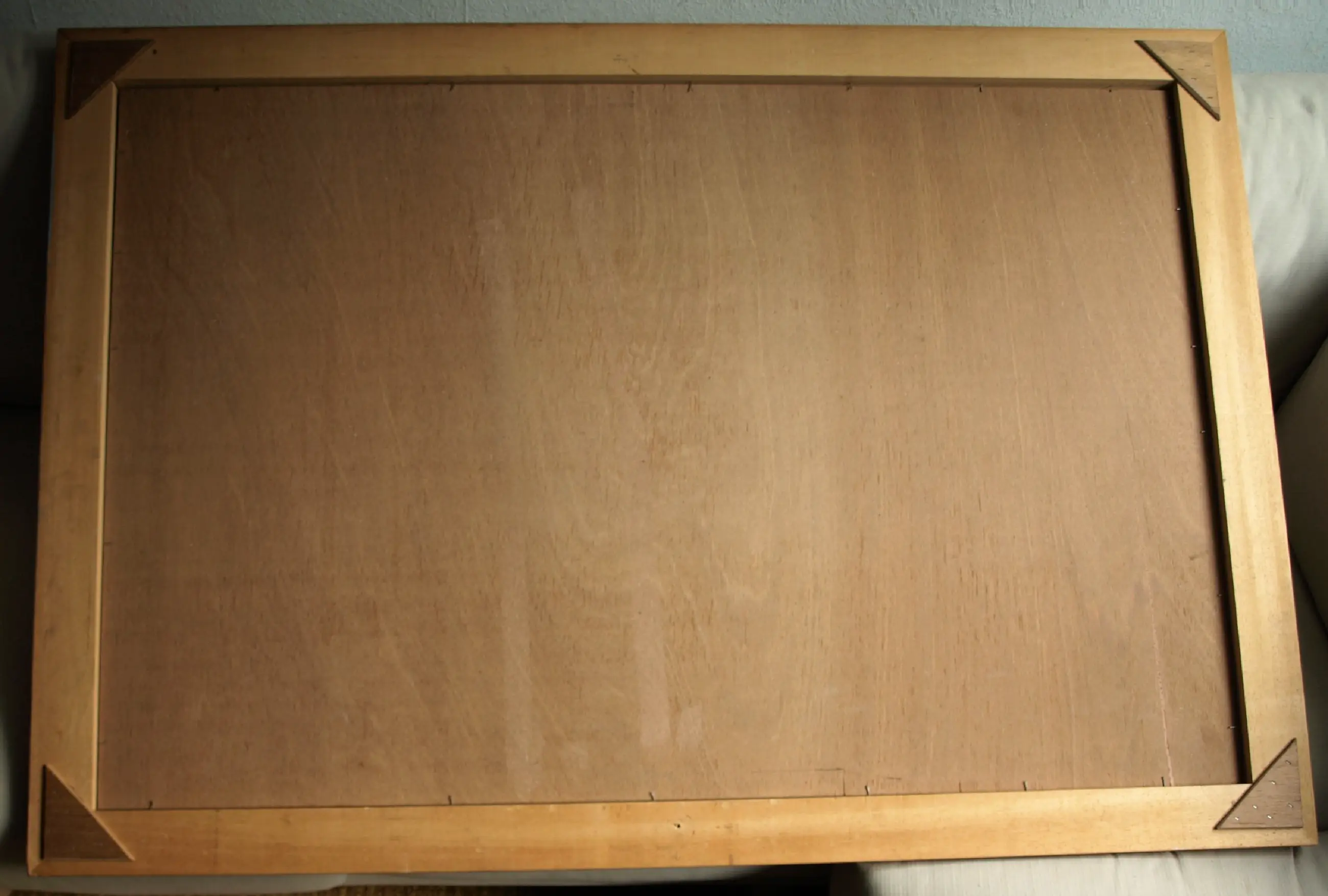 In goede staat. De houten lijst heeft slijtplekjes en vlekjes. Zie ook de foto’s voor een eigen indruk.