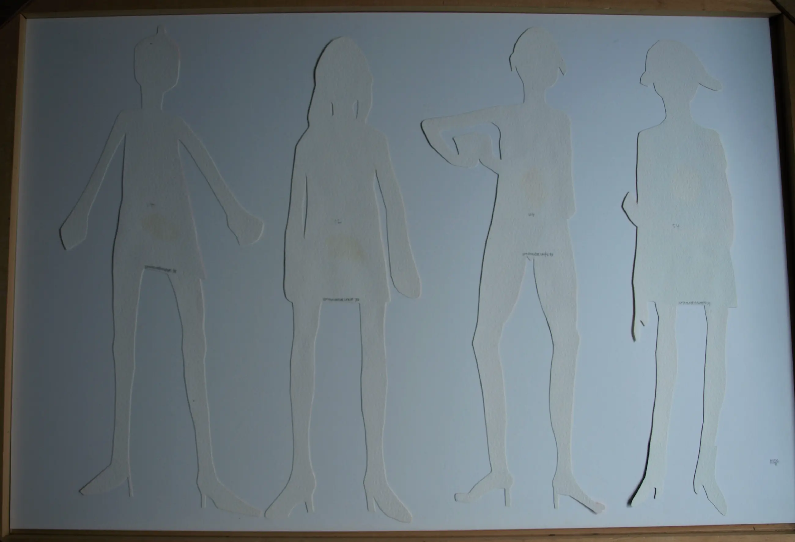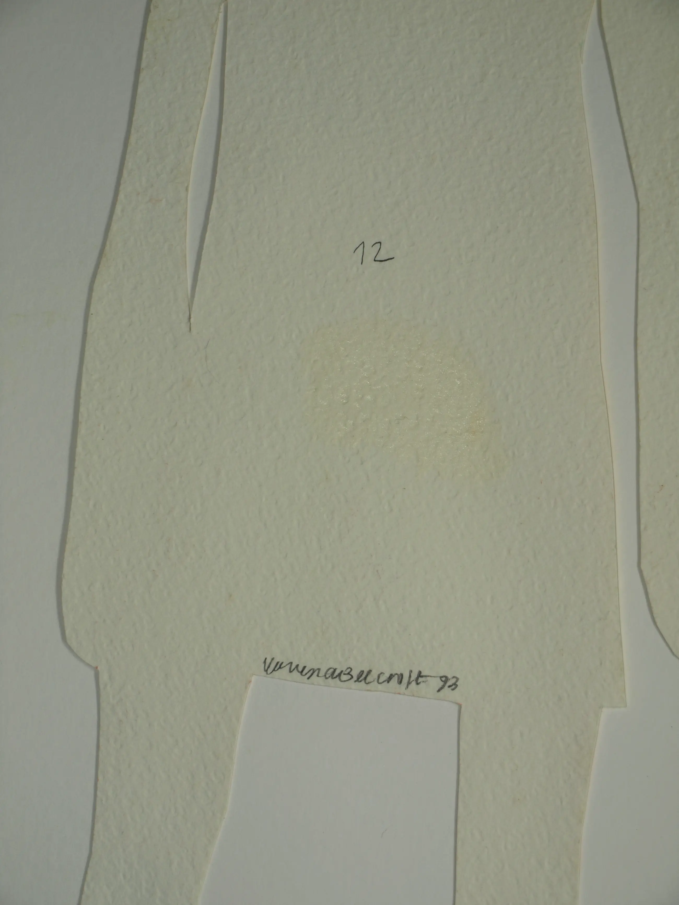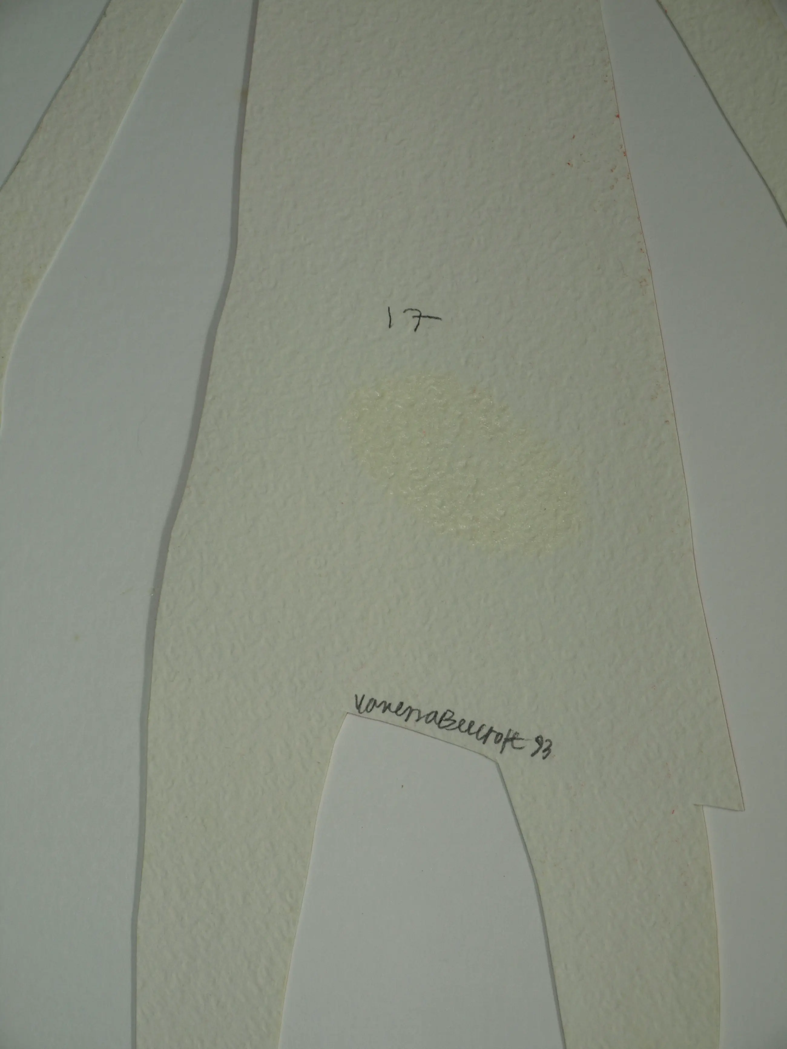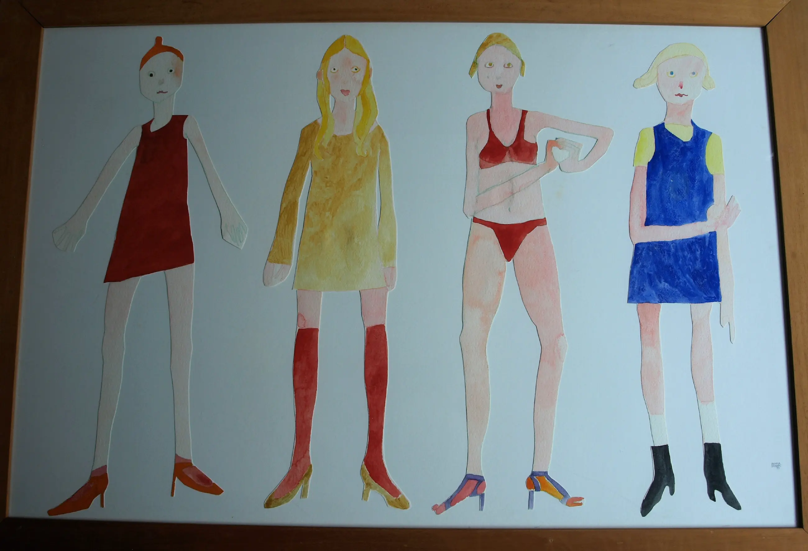 Een vroeg en groot werk van de Italiaans / Amerikaanse kunstenares Vanessa Beecroft (1969). Het werk is uit 1993 en is autobiografisch van aard. -De collage bestaat uit 4 uitgeknipte en beschilderde stukken papier, opgeplakt op een vel karton. -Het werk is gesigneerd en gedateerd rechtsonder. Ook is elk stuk papier gesigneerd en gedateerd op de achterkant (zie de foto’s). -Ingelijst in een robuuste houten lijst met glasplaat. -Afmetingen: Lijst, 94 x 134 x 3 cm. Beeld, 79 x 119 cm. -Herkomst: uit de privé-collectie van de in Italië wonende kunstverzamelaar Jan Willem Tuytel (1947-2001). Hij kocht het werk in 1993 waarschijnlijk rechtstreeks van de kunstenares. Zij woonde en werkte toen in Milaan, Italië. -Conditie: In goede staat. De houten lijst heeft slijtplekjes en vlekjes. Zie ook de foto’s voor een eigen indruk.