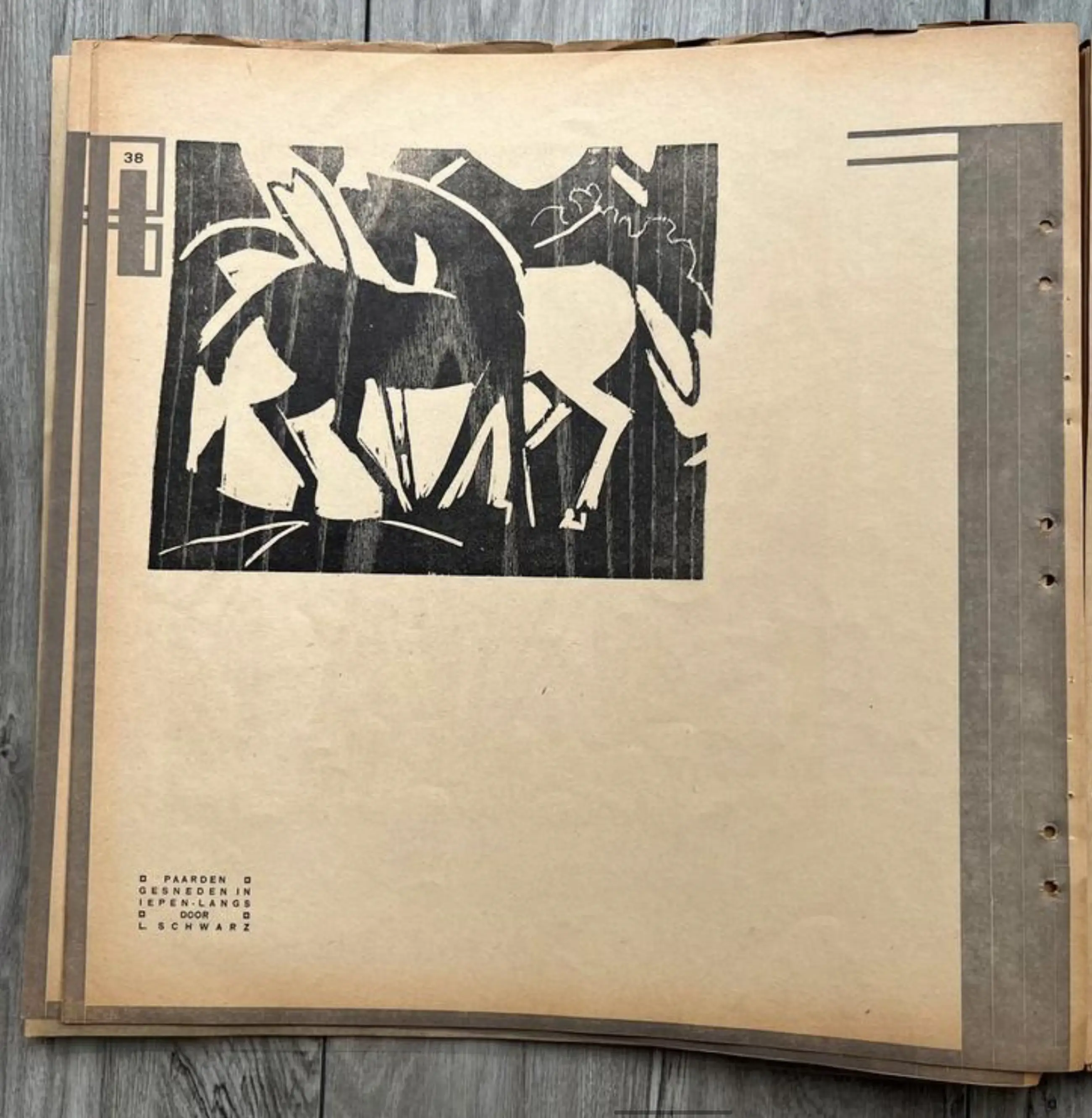 4 Originele houtsnedes uit het houtsnede nummer Wendingen 1919