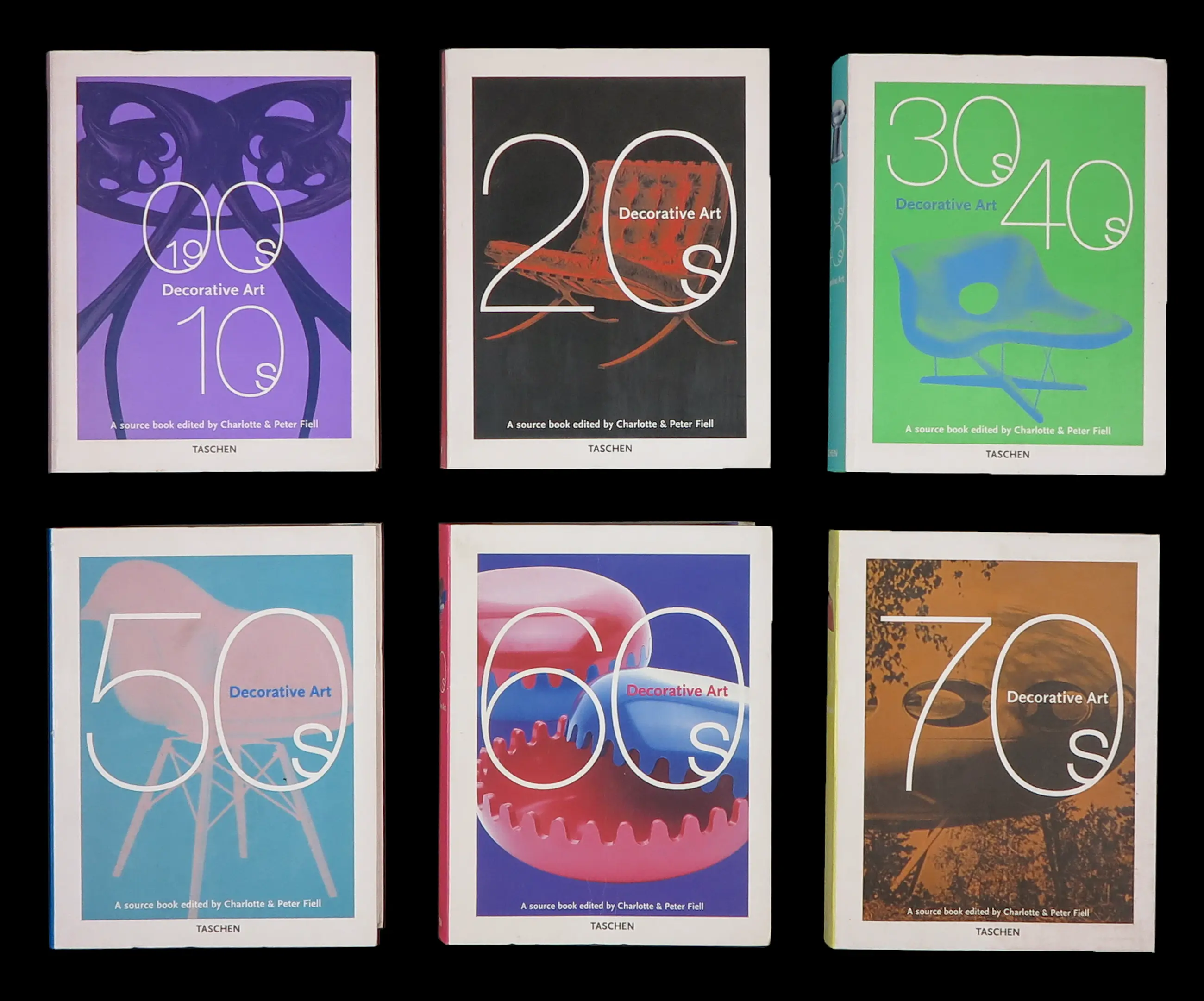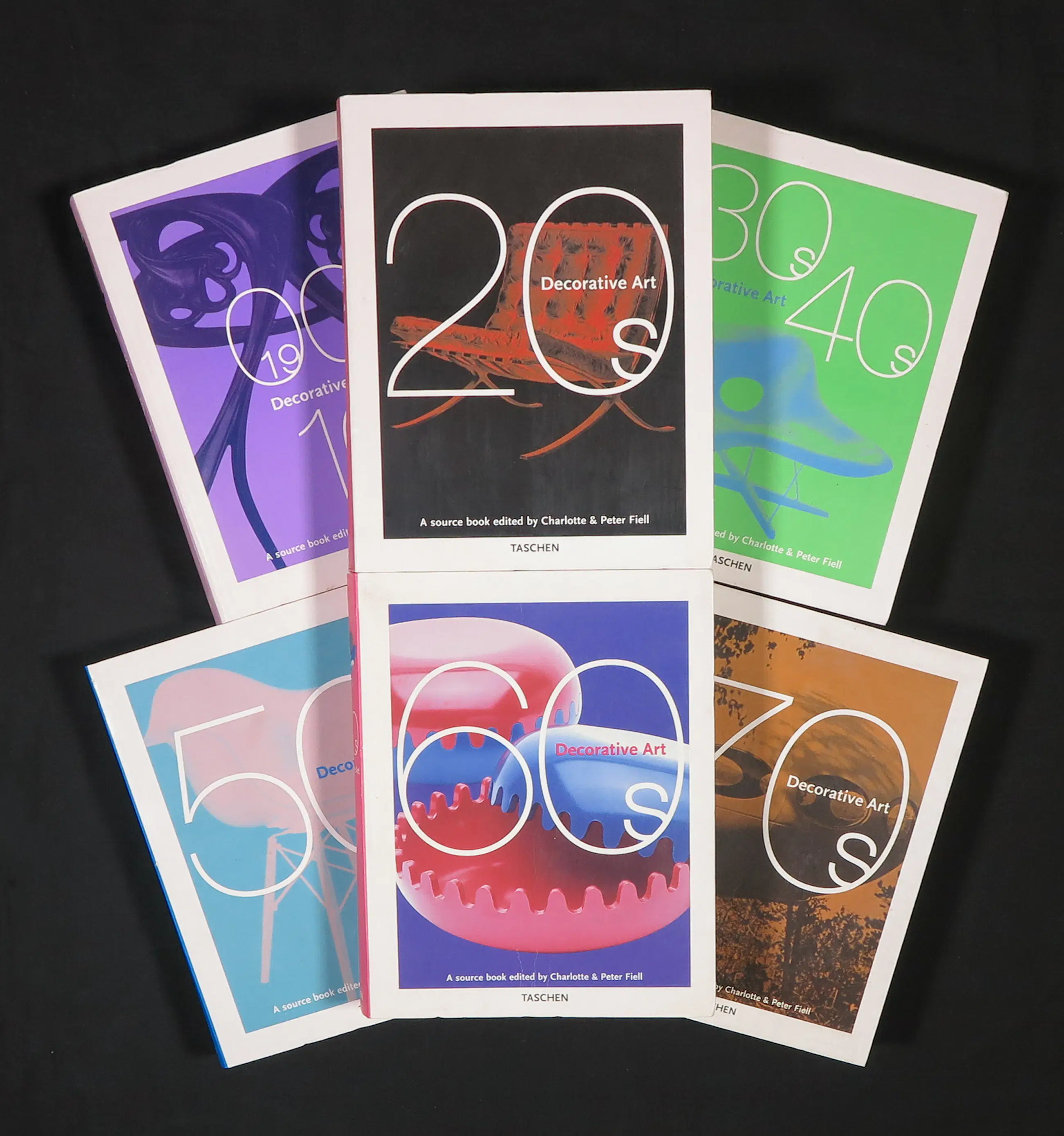 6 boeken uit de serie "Decorative Art: A source book" van de auters Charlotte Fiell & Peter Fiell. De boeken zijn Engels/Duits/Frans en uitgegeven door Taschen.